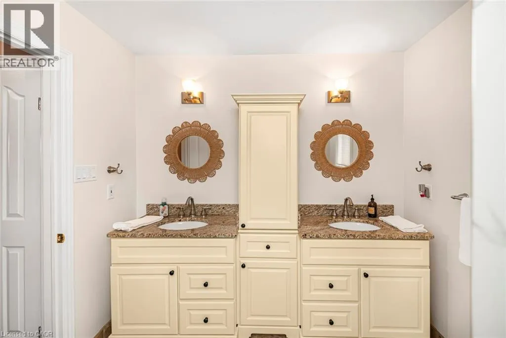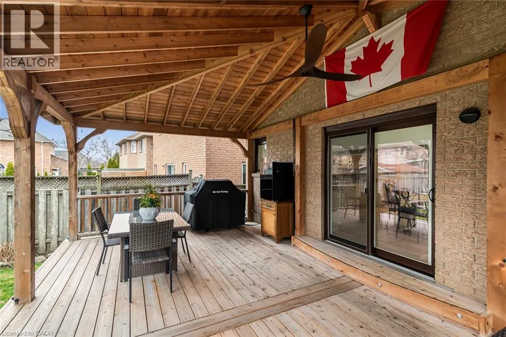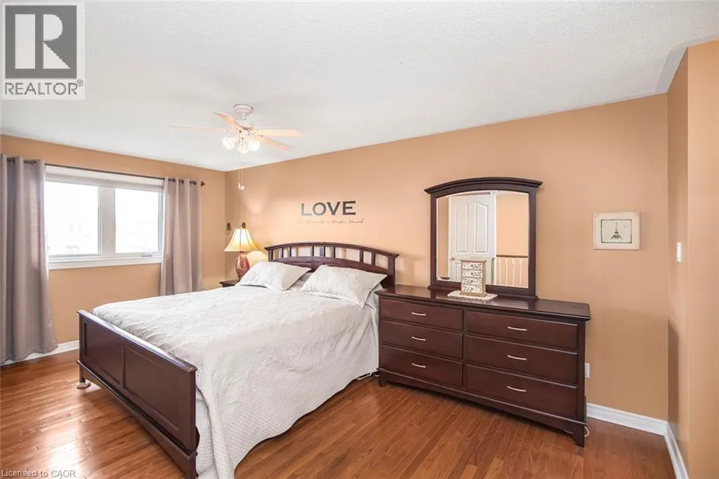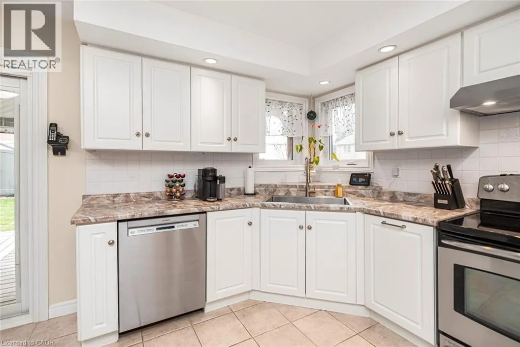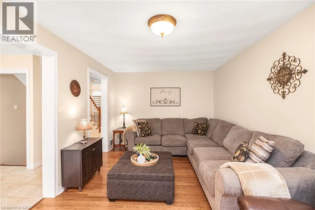 UPPER OTTAWA, LEFT ON ANSON, RIGHT ON CARSON, LEFT ON PARIS, RIGHT ON ARTISTIC Welcome to this beautifully updated two-storey home in a highly sought-after, family friendly neighbourhood. Ideally located just steps from schools, parks and scenic trails, this home offers both convenience and lifestyle. The bright, modern eat-in kitchen (updated in 2024) features ample cabinetry and expansive counter space, seamlessly flowing into the combined living and dining areas with hardwood floors and elegant wall sconces. The warm and inviting family room also showcases hardwood flooring. The main floor is completed with a convenient laundry area and a 2 piece bathroom. Upon entry, you're greeted by a stunning open-to-above foyer vaulted ceiling, with a Juliet balcony and a large windows that flood the space with natural light. Upstairs, you'll find three generously sized bedrooms, including a spacious primary retreat with a private 4-piece ensuite, dual sinks, an oversized walk-in shower, and his and hers closets. Lower level complete with rec room and bedroom. Step outside to enjoy the backyard oasis featuring a covered cedar deck with a permanent roof structure-perfect for relaxing or entertaining. The property is surrounded by mature landscaping, established trees and perennial gardens. Close to three schools (Catholic, Public and French Immersion High School) and nearby parks including Bernie Arbour Stadium, Mohawk Sports Park and Albion Falls for hiking. Step inside and picture your next chapter here. See Supplements for complete upgrades. (id:27476)