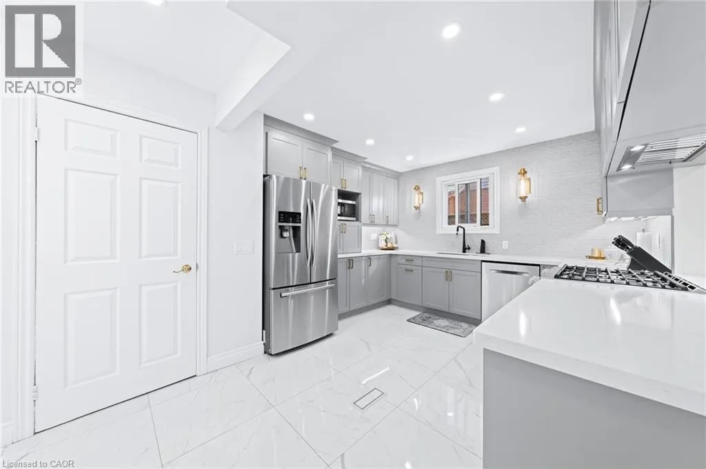 from QEW towards Hamilton - Take Upper Paradise Rd / Mohawk Rd East Exit - Continue to Upper Paradise heading North turn onto Novoco Drive Location, price, and move-in ready appeal come together in this bright, detached home on a quiet street in the desirable Gurnett neighbourhood on Hamilton Mountain. 3 bedrooms, 2.5 bathrooms, finished basement with 2 additional bedrooms, 1 bathroom, plus a separate entrance. This carpet-free home delivers exceptional flexibility for extended family living or rental potential in one of Hamilton's family-friendly areas. The main level features an open-concept layout filled with natural light, enhanced by large windows and pot lights throughout, while the modern kitchen, updated in 2022, stainless steel appliances, ample cabinet space, and generous counters designed for everyday living. The kitchen and family room with fireplace allows for seamless entertaining of guests or spending cozy evenings with family. Upstairs, the spacious primary suite includes a walk-in closet and ensuite, plus two additional bedrooms, a full bathroom, and convenient second-floor laundry for added functionality. The finished basement expands the living space with a comfortable recreation area / living room, two bedrooms, and a full bathroom, making it an excellent option for multi-generational families or added income potential. Ideally located close to schools, parks, shopping, public transit, Mohawk College, Costco, and quick access to Highway 403, the LINC, and other major routes, this pet-free, smoke-free home offers the comfort, convenience, and quality today's buyers are looking for in the Hamilton Mountain Gurnett area. Easy to show. Sizes are approximate. (id:27476)
