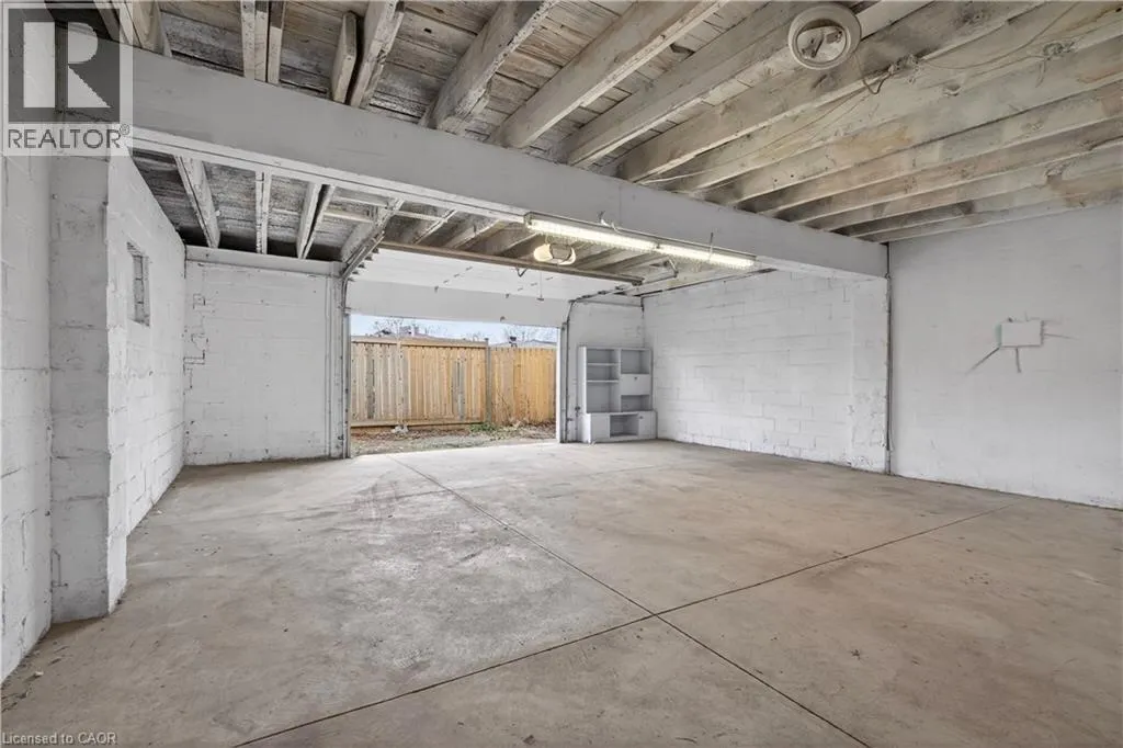 Between King William & Wilson on Steven Street It's a big garage, it's a very big garage! This 4 bed semi detached brick bungalow (with stucco finish) is turn key and ready to move in. Did we mention there is a very big garage off the back off the laneway?! Almost 700 sq. ft. Both the house and garage have new roofs within the last 6 years, and since then the property has a front parking pad, upgraded water line, refreshed kitchen & completely renovated bathroom. There is also high quality laminate flooring throughout, walls, ceilings & trim have been painted within the last few years along with an exterior paint refresh. There is a nice, large yard with concrete patio and room for gardens. The garage can be used as an artist studio, jam sesh space, hobby room, personal gym, or to store 3 cars plus. It really is an amazing bonus space! (id:27476)