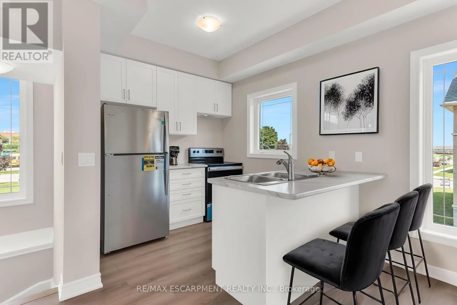 Cross Streets: Highland Rd. ** Directions: Highland Rd to Picardy Dr. Stunning Freehold END-UNIT Townhome with Private Backyard - Prime Stoney Creek Mountain. Welcome to this rare freehold END-UNIT townhome-offering extra privacy, a larger yard, and exceptional natural light in one of Stoney Creek Mountain's most sought-after communities. Perfectly maintained and thoughtfully designed, this 2-bedroom, 2-bathroom home delivers the ideal blend of comfort, style, and convenience. Step inside to a bright, open-concept main floor featuring a sleek modern kitchen that flows seamlessly into the living and dining areas-an inviting space whether you're hosting, relaxing, or working from home. Large windows and the end-unit layout create a light-filled, airy atmosphere you'll love coming home to. Upstairs, the spacious primary suite offers a walk-in closet and a private 3-piece ensuite. A generous second bedroom and a beautifully finished 4-piece bathroom complete the upper level, providing comfort and flexibility for family, guests, or a home office. Enjoy the added bonuses that truly set this property apart:....? Private backyard-perfect for pets, entertaining, or gardening; ? End-unit benefits-more light, more privacy, and only one shared wall; ? Attached garage with inside entry, plus a full driveway. Located directly across from Saltfleet High School and minutes to shopping, restaurants, parks, and transit, this home also offers quick access to the Red Hill Valley Parkway and LINC, making commuting effortless. Whether you're a first-time buyer, downsizer, or investor, this end-unit townhome delivers outstanding value, unbeatable convenience, and a lifestyle you'll be proud to call your own. Don't miss this rare opportunity-end units with yards in this complex don't come up often! (id:27476)