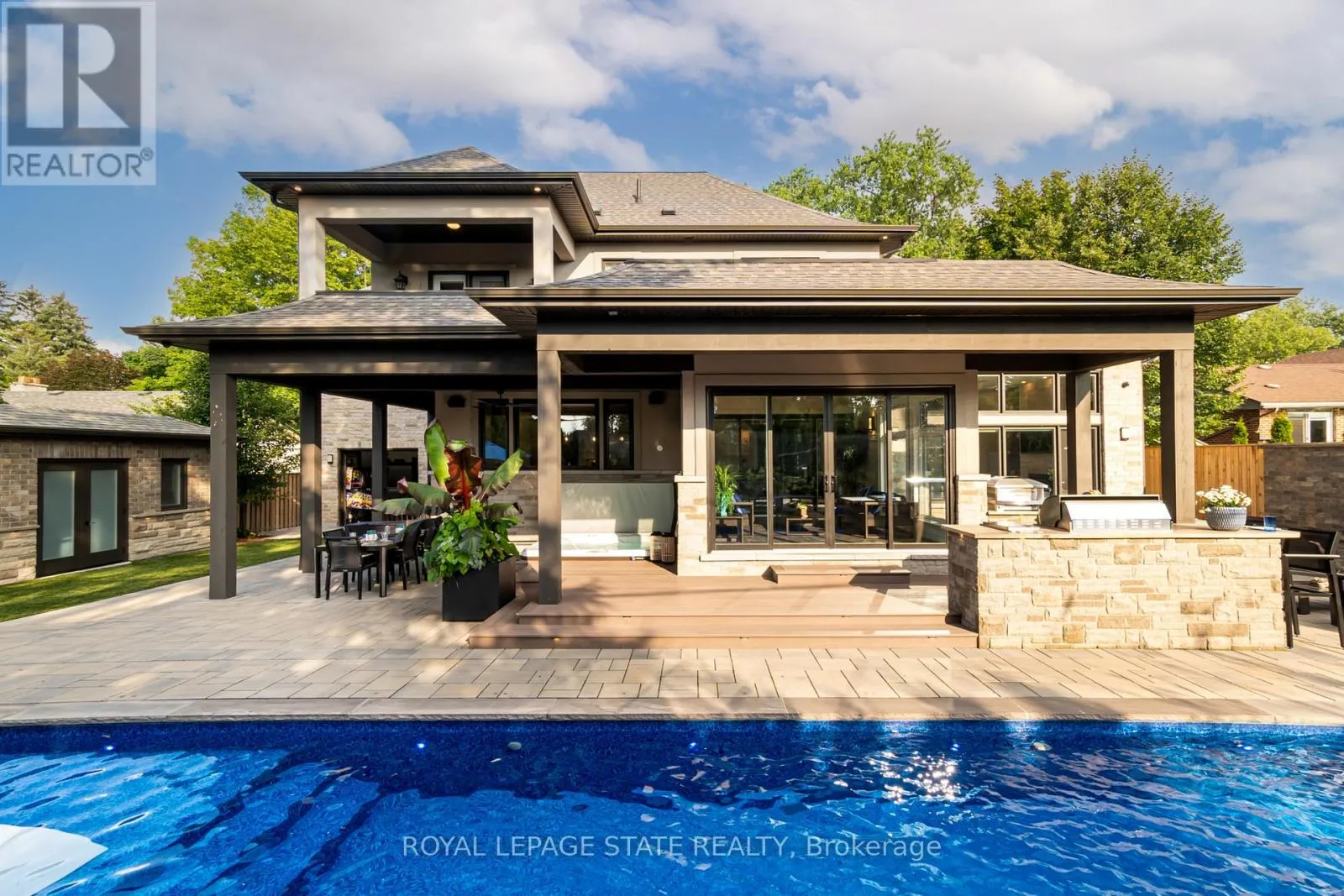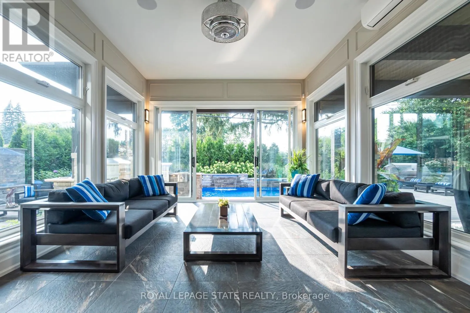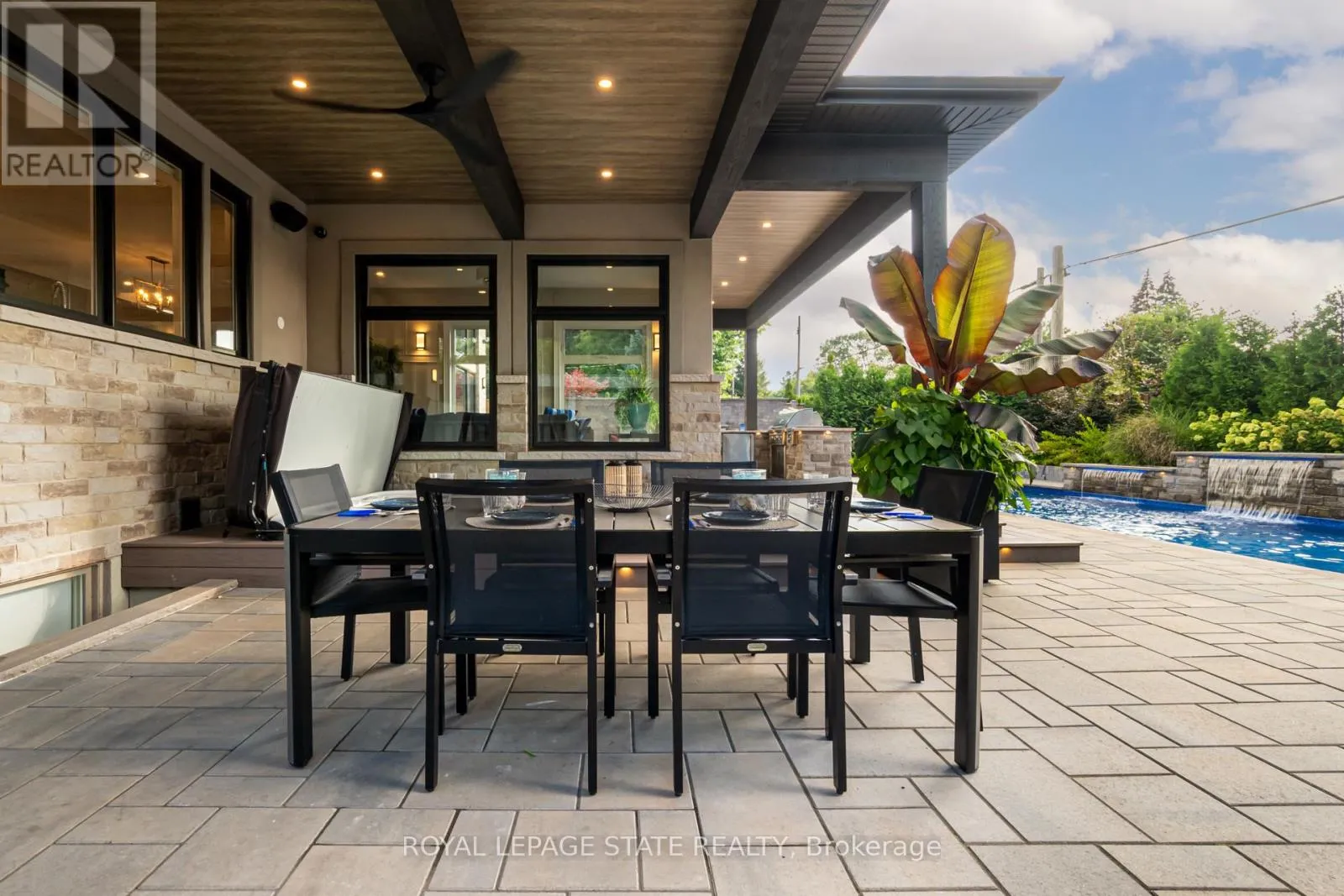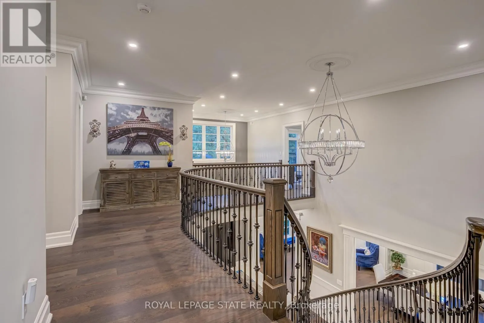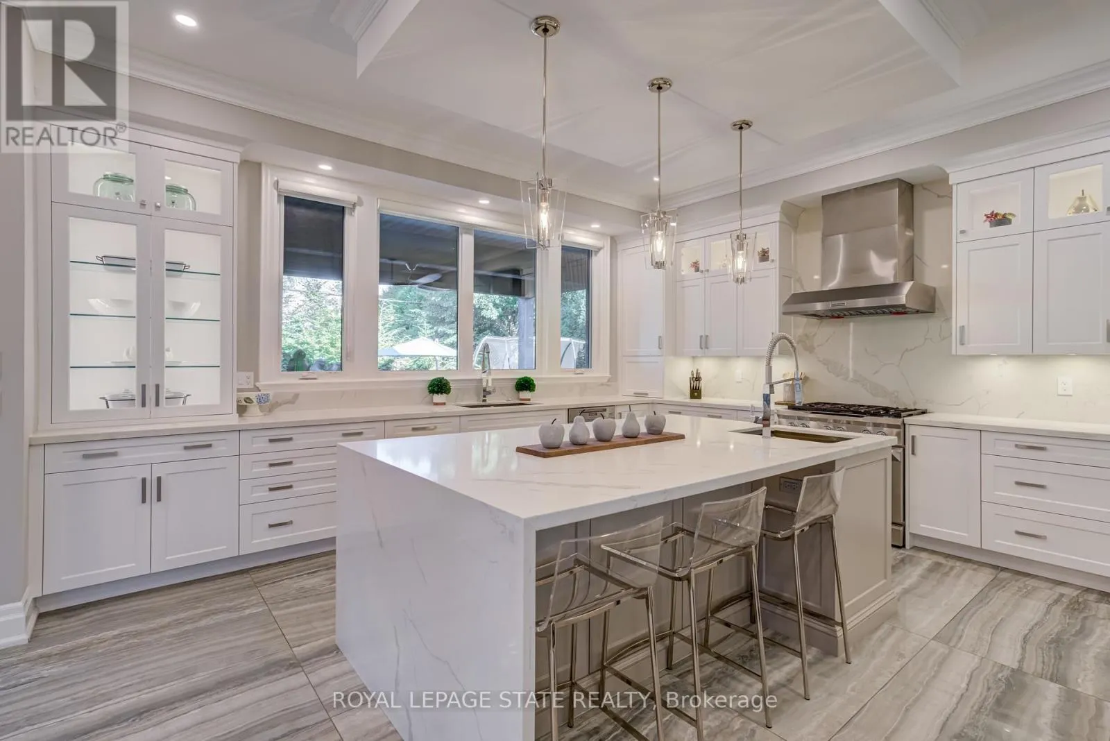 Cross Streets: Algonquin Avenue. ** Directions: Hwy 403 to Mohawk, left on Algonquin, right on Seneca Dr. This architectural masterpiece offers 7,000 sq. ft. of luxurious living space with 4+2 bedrooms, 6 bathrooms, an incredible resort-style backyard oasis, and a fully finished basement with separate entrance. Set on an 85 x 135 ft. lot in a mature Ancaster neighbourhood, just one minute to highway access and all Power Centre amenities, this dream home impresses with striking curb appeal, professional landscaping, and an oversized triple garage with 14 ft. ceilings and two car lifts. The grand foyer with a soaring 21 ft. ceiling and curved staircase opens to a sophisticated interior featuring bold millwork, expansive porcelain, and wide-plank hardwood all illuminated by massive windows allowing plenty of natural light. The main level boasts formal living and dining rooms with 12 ft. ceilings, a private office, powder room, mudroom, and a gourmet eat-in kitchen with top-tier appliances. A 4-season sunroom with radiant in-floor heating and a family room with 11 ft. ceiling and stone fireplace create the perfect entertaining spaces. Upstairs, the sensational primary suite includes custom built-ins, spa-inspired 5-piece bath, private balcony, walk-in closet, and a custom dressing room fit for any wardrobe. Three additional bedrooms, all with ensuite baths (heated floors), and bedroom level laundry complete the upper level. The finished lower level offers a recreation area, home theatre, 2 bedrooms, full bath, second laundry, and kitchenette-ideal for family enjoyment or a multigenerational in-law suite. Step outside to a private resort-style retreat with heated saltwater pool (waterfalls, lights, fire features), sunken hot tub, outdoor kitchen with pizza oven, extensive hardscaping, artificial turf, storage shed, and an elite K-Array sound system. Upgrades include Control4 automation, integrated security with cameras, whole-home sound, and dual furnaces, A/Cs, and HRVs for comfort and efficiency. A rare opportunity to own one of Ancaster's most extraordinary residences! (id:27476)