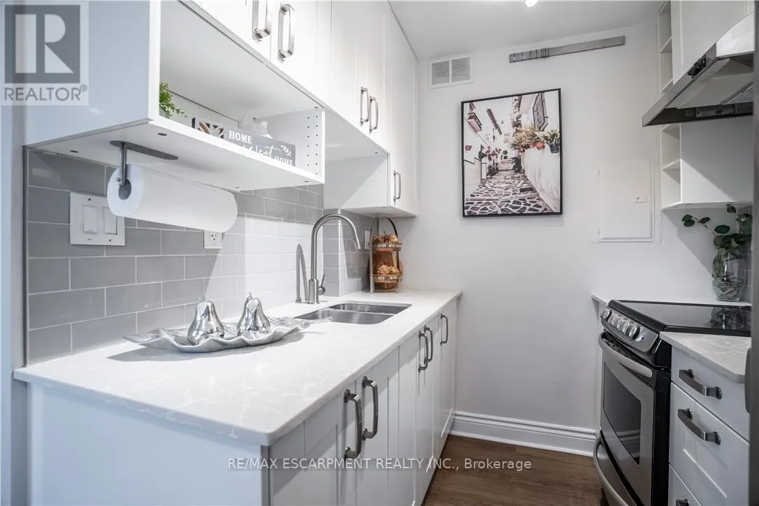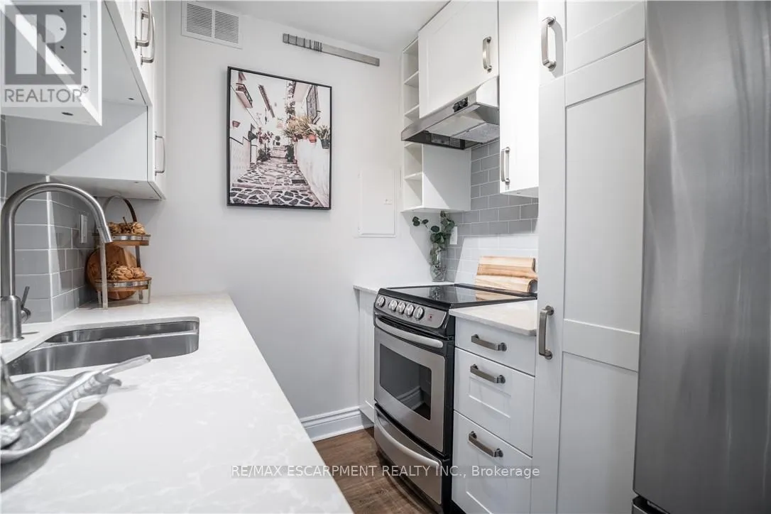 Augusta & John This bright, move-in ready 1-bedroom condo in trendy Corktown offers a spacious bedroom, large combined living and dining area and an updated kitchen finished with quartz countertops. The unit includes a four-piece bathroom and an owned underground parking spot. Residents enjoy building amenities such as an exercise room and a BBQ area, and the location provides excellent walkability to restaurants, cafés, shops, parks, transit and the GO Station, with close proximity to major hospitals and downtown employers-an ideal turnkey choice for first-time buyers, professionals or investors. (id:27476)