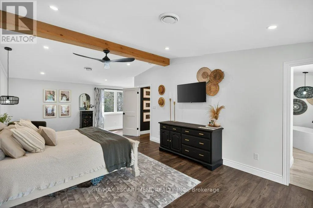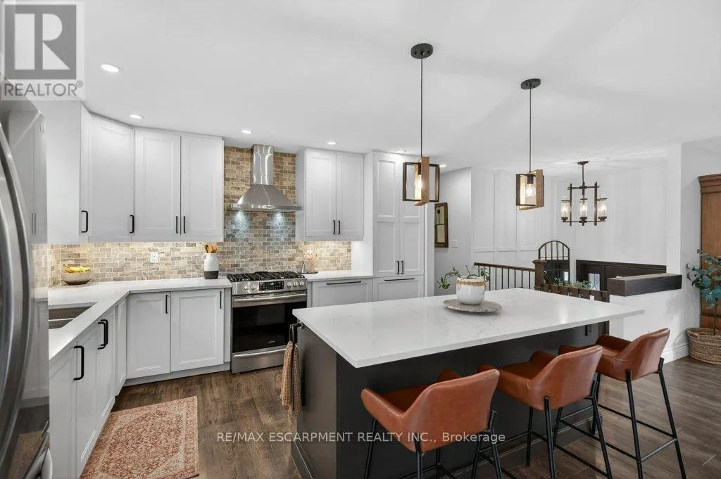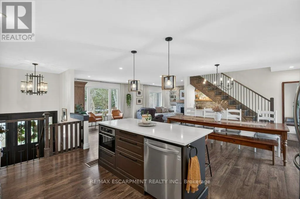 Cross Streets: Victoria St. ** Directions: Dundas St. E. to Mill St. N. to Albert St. to north on Victoria St. to Nelson St. Absolutely stunning 4 bedroom plus den, 3.5 bathroom renovated home on a quiet dead end street in Waterdown's beautiful core! This is the home you have dreamed of! The gorgeous exterior finishes makes this home an absolute stand out! A large addition was completed in 2023 almost doubling the square footage of this home. The family and entertaining friendly open layout on the main floor features a beautiful kitchen with large island, quartz counters and stainless appliances. A large dining area with sliders to the rear yard and great room with gorgeous gas fireplace flanked by built-ins provide seamless flow for keeping an eye on the kids or staying engaged with guests while preparing a meal. A built-in coffee servery is another part of the incredible detail and thought put into this home! A main floor laundry and powder room area provides access to the rear yard. In the other end of the main floor you will find 3 bedrooms and a 4 piece bathroom. A hardwood staircase takes you to the absolutely incredible primary retreat! This one will take your breath away featuring vaulted and timber beam ceiling, french doors to a juliette balcony, an expansive walk-in closet with built-ins and a gorgeous ensuite with stand alone soaker tub, glass enclosed shower and a double custom vanity! The lower level is completely finished with a large family room, play area, workout space, large storage area, den and mudroom with built-ins with access to the attached garage. The spacious backyard has a large upper deck and a gorgeous stone patio with firepit. BONUS is a custom 10 x 12 outbuilding matching the home in finishes. It is insulated and has heating and cooling - ideal for a home office, he/she shed or workshop! This location can't be beat for those looking for a quiet spot to call home, yet conveniently located in the hub of it all, walking distance to schools, shops, restaurants, trails and Memorial Park. Homes like this rarely come along! (id:27476)