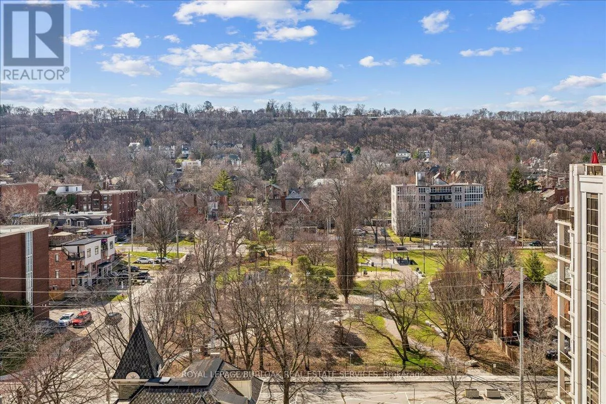 Cross Streets: Bay St. ** Directions: Bay St S to Robinson St. City Square one bedroom+Den or , could be 2nd Bedroom by adding a door, on 10th Floor w/panoramic escarpment views. 9 ft. ceilings. Freshly painted, Open concept, executive living. Geo Thermal heating & cooling. Close to GO Station, St. Joseph Hospital, Downtown Hamilton within walking distance & easy access to Hamilton mountain. Enjoy the shopping, restaurants, coffee houses and bars on Locke street not far away. Upgrade include premium ceramic floors, laminate floors , a carpet free living space. Walkout to Balcony from Primary bedroom & Living room/Dining room. Floor to ceilings windows. Exclusive use Locker included for extra storage. 6 appliances. Rent includes: Heating & Cooling and Water. Tenant pays hydro, Internet and Cable. Amenities: Party Room, Gym, Bicycle room, 2nd Floor Terrace between the two buildings above the lobby area. Underground parking & storage locker. Easy to view. (id:27476)