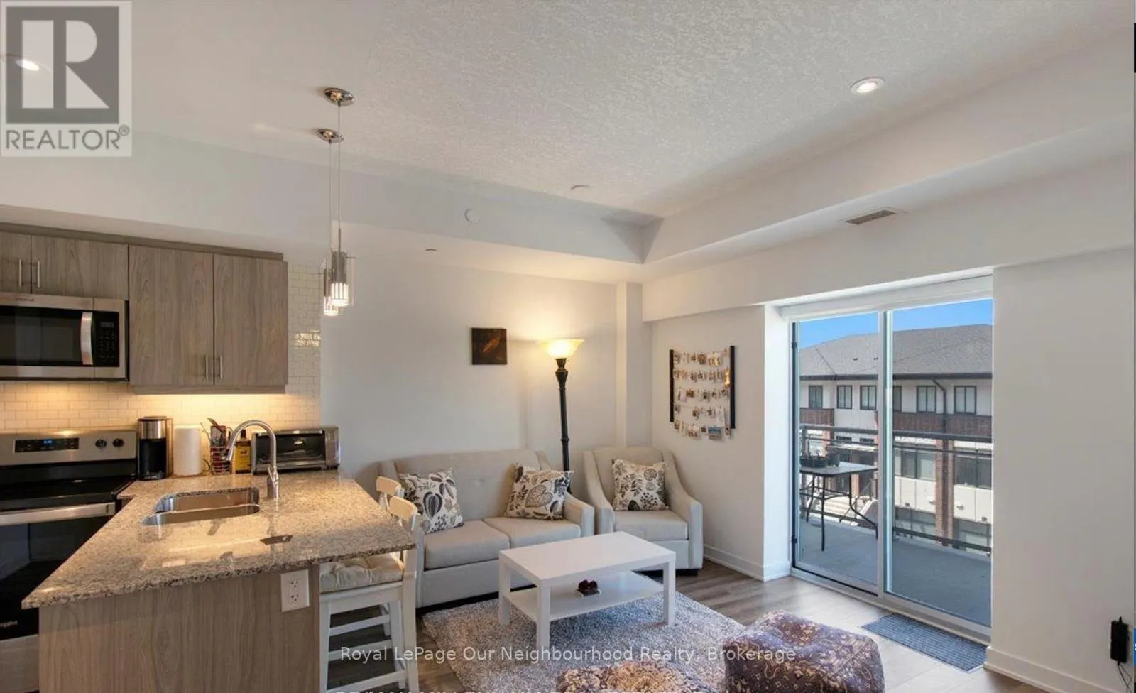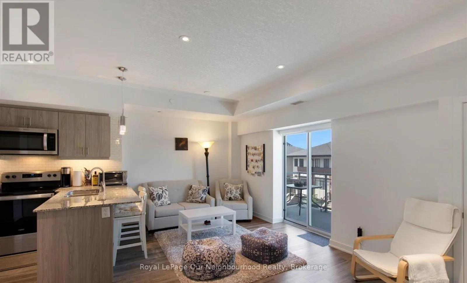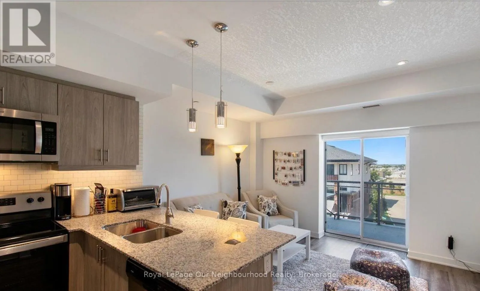 Arner Rd And Shaver Rd Welcome to this beautifully maintained 1-bedroom suite in the sought-after Monterey Heights community! Showcasing a like-new condition, this stylish unit features a contemporary kitchen complete with stainless steel appliances, granite countertops, sleek cabinetry with under-mount lighting, and a spacious breakfast bar-perfect for casual dining or entertaining.The bright and inviting living area offers pot lights and seamless access to a generous 79 sq. ft. private balcony, ideal for relaxing or enjoying your morning coffee. Additional highlights include in-suite laundry and ample storage throughout for added convenience. Very Close To Highway 403, Schools, Many Shopping Centers, Parks, Golf Club And Bus Routes. 1 Underground Parking Spot And Access To Gym. A perfect blend of comfort and modern living in a prime Ancaster location! (id:27476)