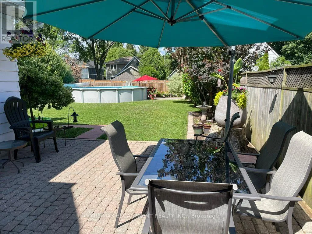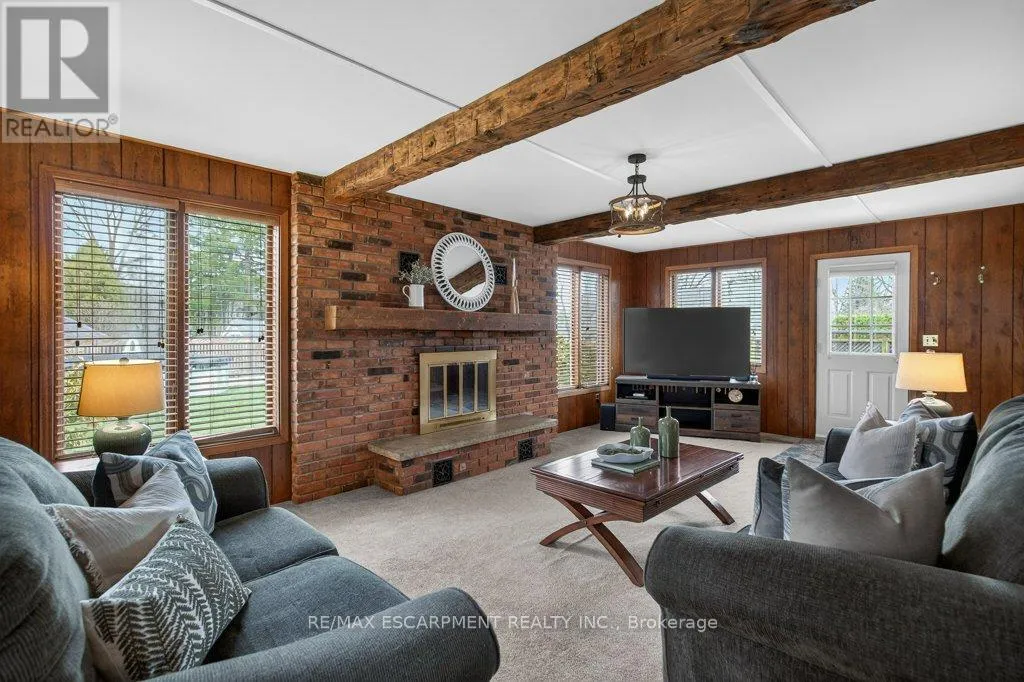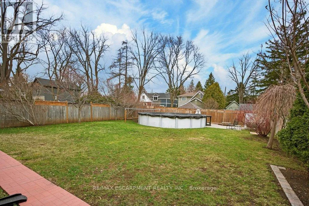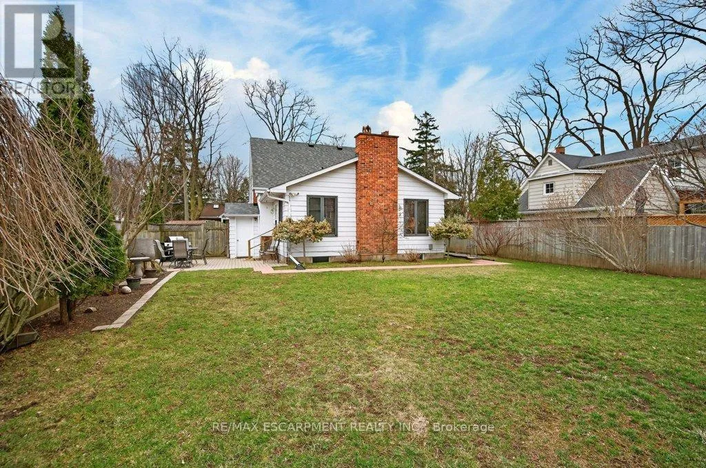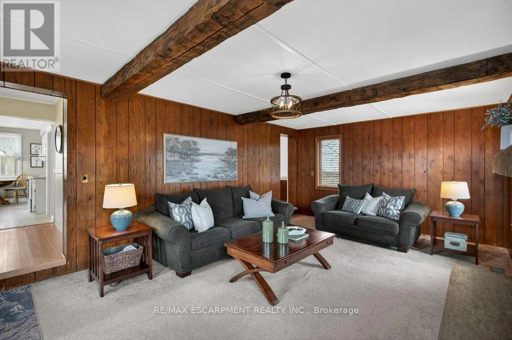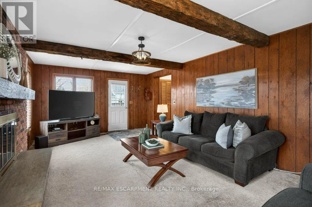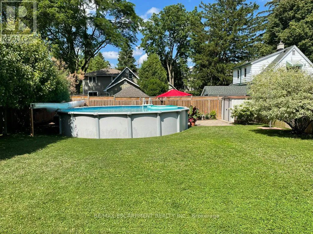 Cross Streets: Elgin/Parkside. ** Directions: Dundas St. E. to Mill St. N. Charming and spacious 1.5 storey home on beautiful Mill St in the core of Waterdown! Incredible location, walking distance to schools, shops, walking trail, restaurants and Memorial Park. The main floor of this home offers a generous amount of living space including a brightly lit front living room with cove ceiling, a kitchen with ample cabinetry and convenient pantry closet, a formal dining room, a large family room addition with gas fireplace and beamed ceiling and a 4 piece bathroom. A hardwood staircase takes you to the upper level that includes a spacious primary bedroom with 2 closets and a good sized second bedroom also with two closets. The basement level offers a handy separate walk up entrance, recreation room and loads of storage. The beautifully manicured fully enclosed backyard features an above ground pool with recently replaced liner, pump and filter and two patio spaces. Additional features include loads of attic storage, 2 sheds, recently painted exterior, newer washing machine, updated furnace, a/c and roof. This home offers so much opportunity for those looking for a solid affordable detached home with vintage charm, character and potential for reimagination. A fabulous core offering, not to be missed! (id:27476)