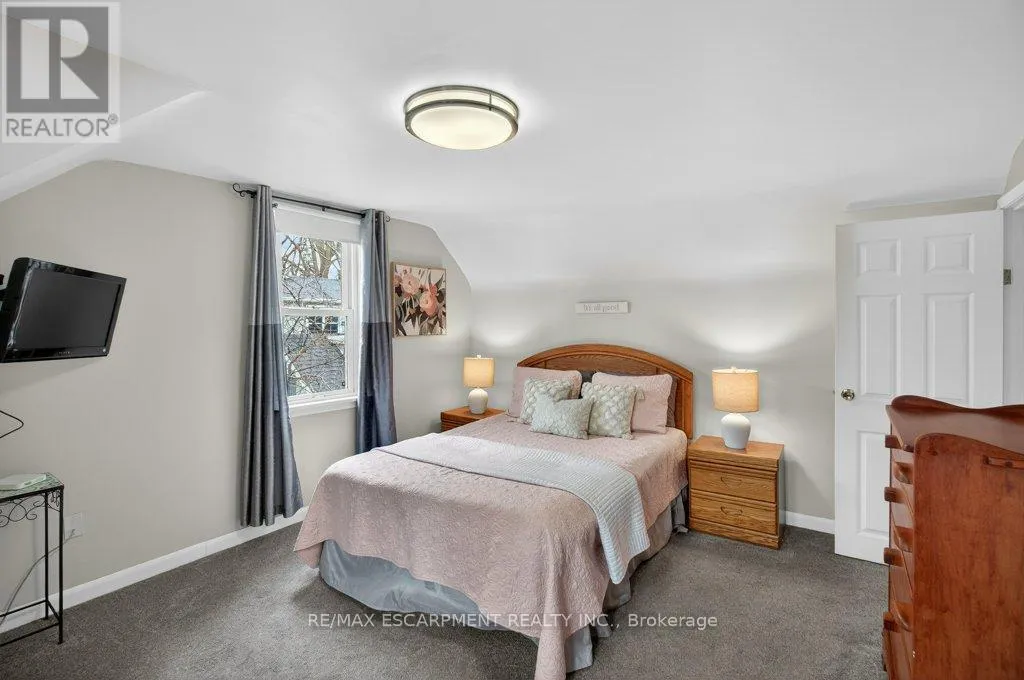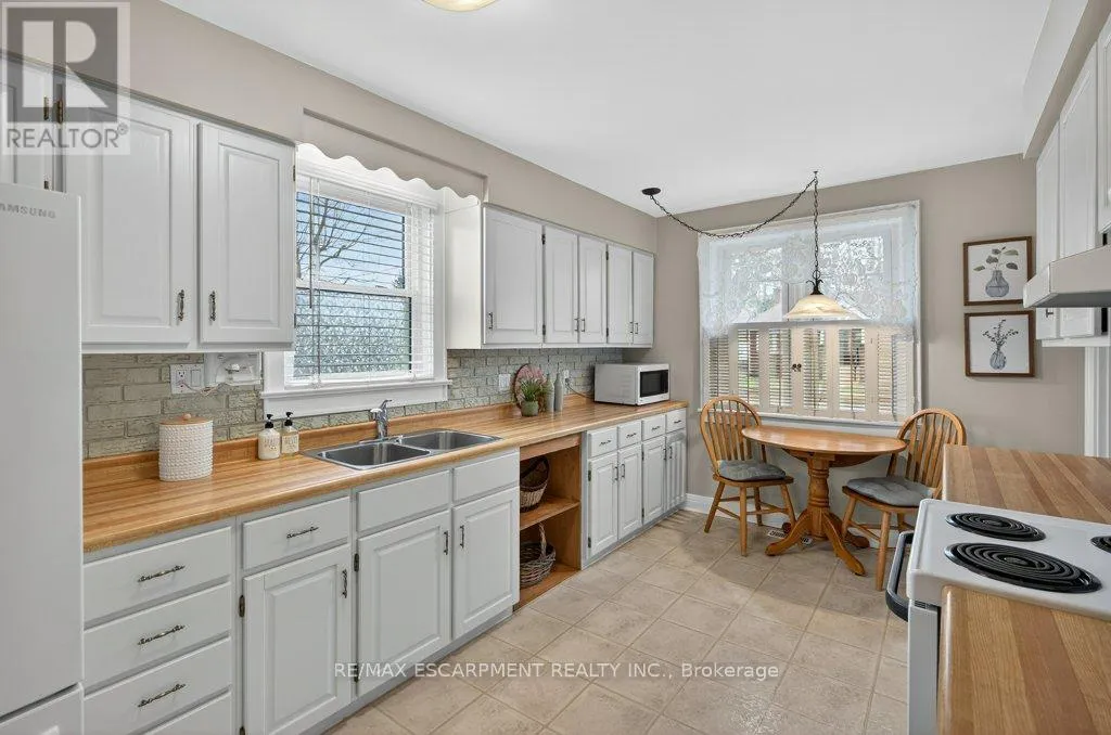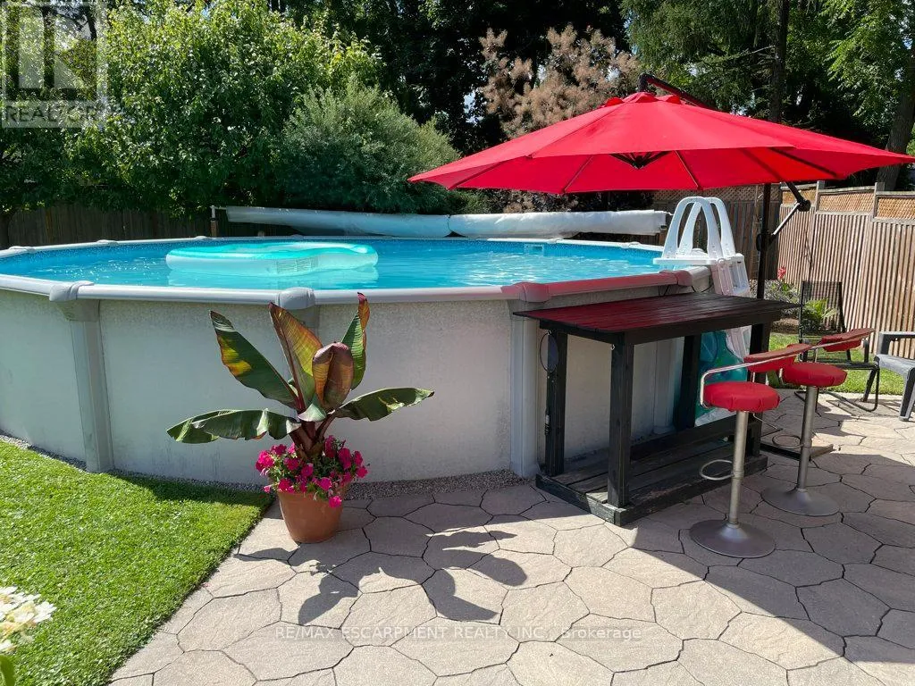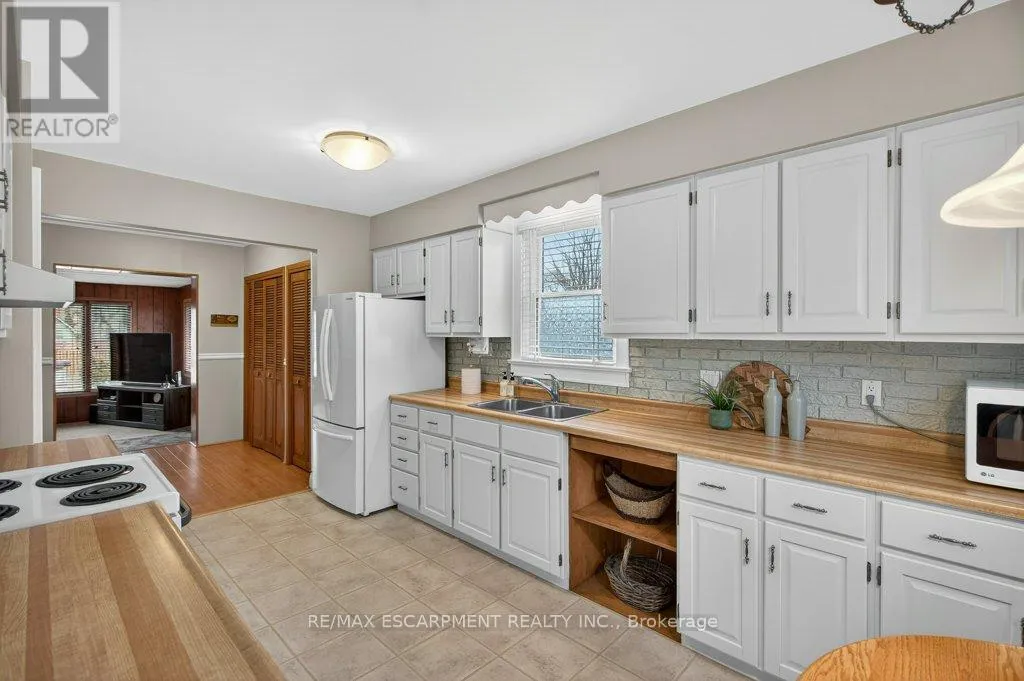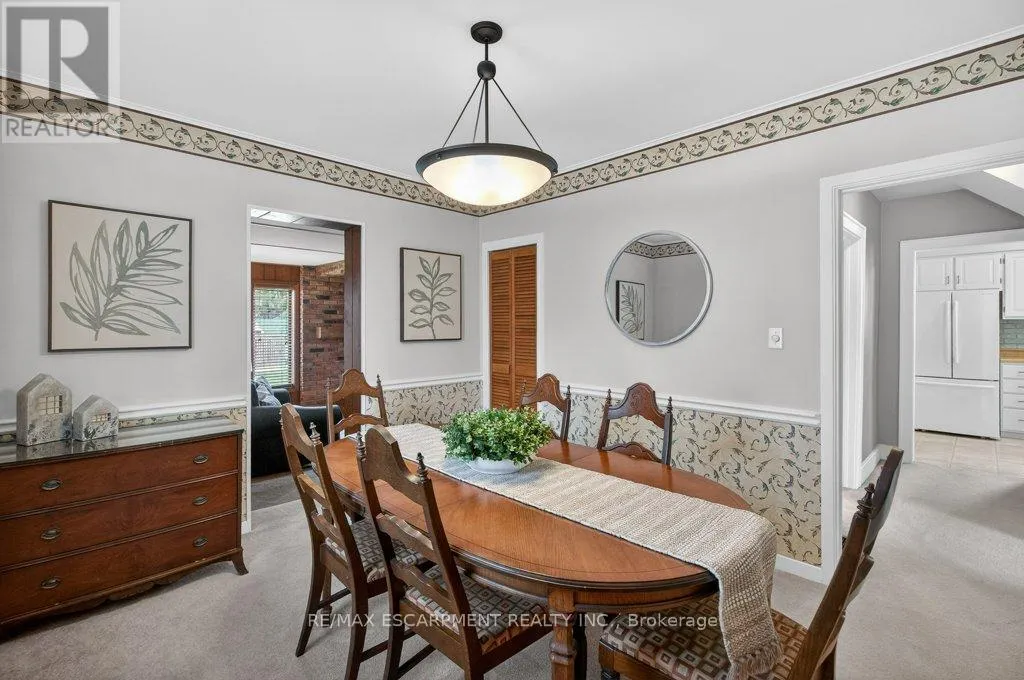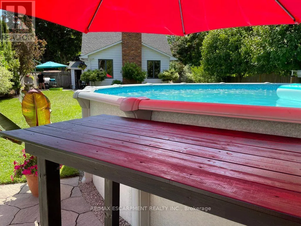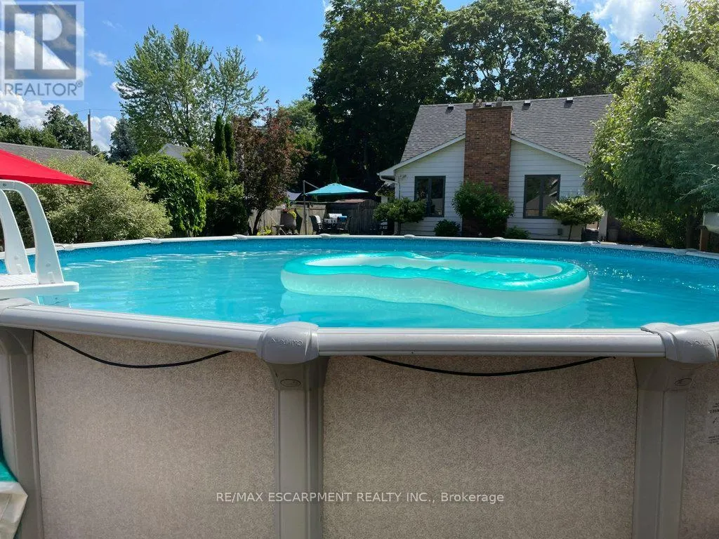 Cross Streets: Elgin/Parkside. ** Directions: Dundas St. E. to Mill St. N. Charming and spacious 1.5 storey home on beautiful Mill St in the core of Waterdown! Incredible location, walking distance to schools, shops, walking trail, restaurants and Memorial Park. The main floor of this home offers a generous amount of living space including a brightly lit front living room with cove ceiling, a kitchen with ample cabinetry and convenient pantry closet, a formal dining room, a large family room addition with gas fireplace and beamed ceiling and a 4 piece bathroom. A hardwood staircase takes you to the upper level that includes a spacious primary bedroom with 2 closets and a good sized second bedroom also with two closets. The basement level offers a handy separate walk up entrance, recreation room and loads of storage. The beautifully manicured fully enclosed backyard features an above ground pool with recently replaced liner, pump and filter and two patio spaces. Additional features include loads of attic storage, 2 sheds, recently painted exterior, newer washing machine, updated furnace, a/c and roof. This home offers so much opportunity for those looking for a solid affordable detached home with vintage charm, character and potential for reimagination. A fabulous core offering, not to be missed! (id:27476)