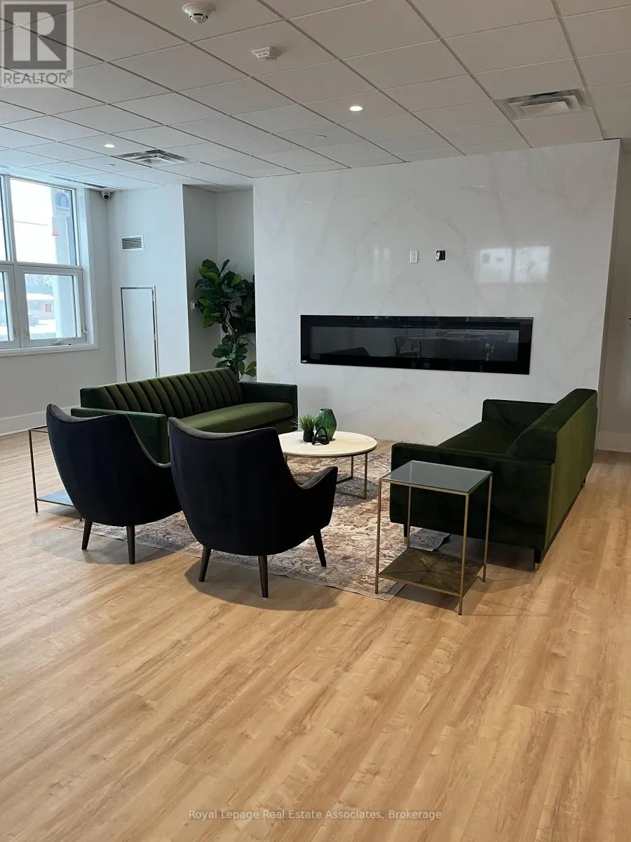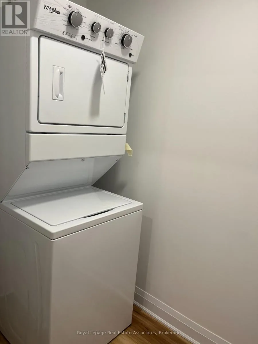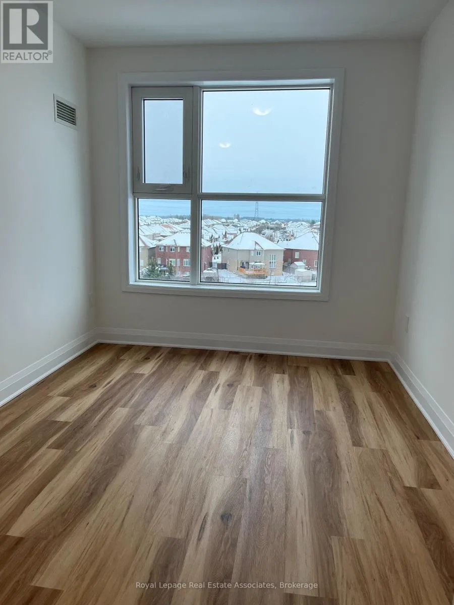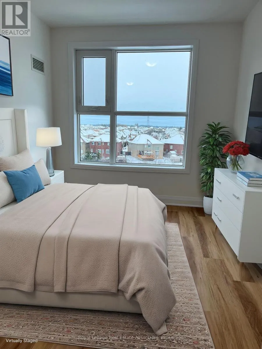 Cross Streets: Highway 20. ** Directions: Fletcher Road and Rymal Road East. Welcome to your luxury top floor condo! This brand-new, top-floor 1-bedroom + den, 1-bath suite offers 641 sq. ft. of modern living space plus a balcony with views of the pond perfect for enjoying your morning coffee or relaxing evenings. Step inside to a bright and airy open-concept layout, featuring a sleek white kitchen with stainless steel appliances, stone coutertops and ample cabinetry for storage, all overlooking the living and dining area. Gorgeous laminate flooring flows throughout, adding warmth and elegance to the space. The primary bedroom boasts a walk-in closet, providing plenty of storage, while the versatile den is ideal for a home office. Enjoy the convenience of in-suite laundry and modern finishes throughout. With one underground parking and a storage locker, this condo also offers exceptional amenities such as a bright well equipped exercise room, sophisticated party room, roof top patio and parcel pick up room. Easy access to shopping, dining, and more. (id:27476)