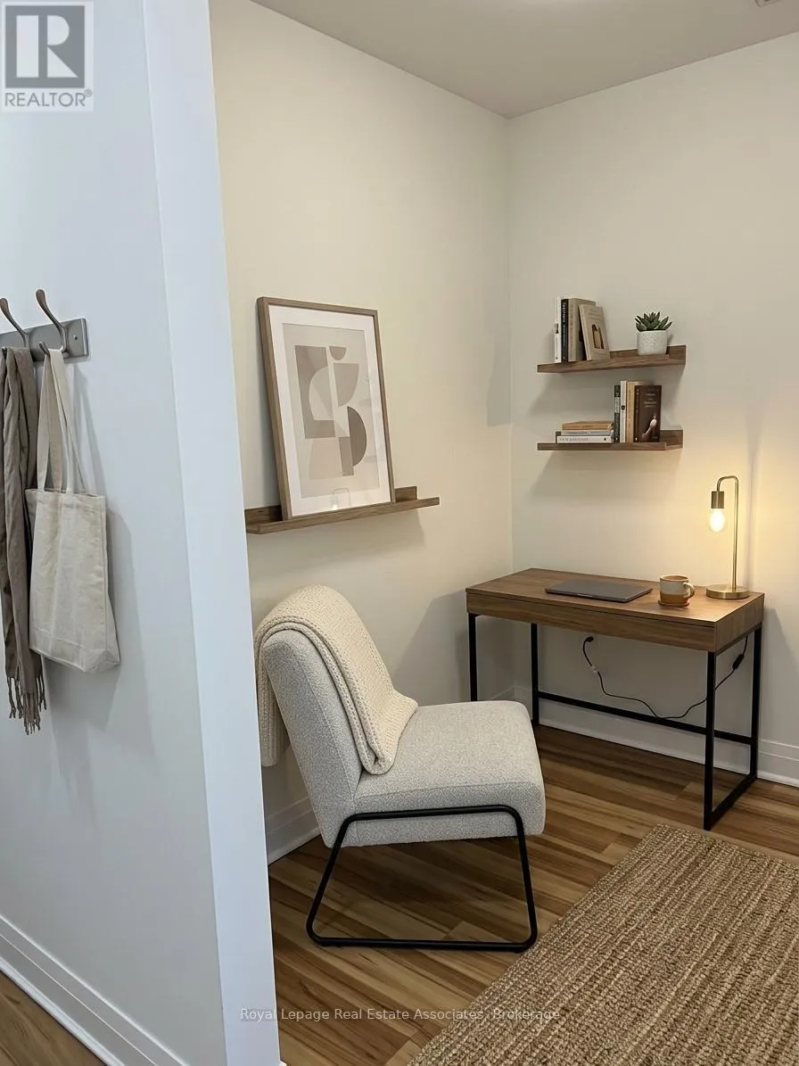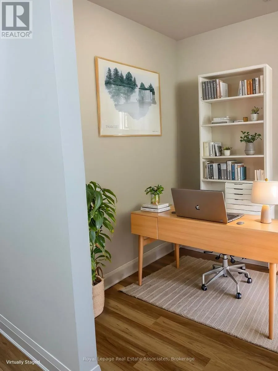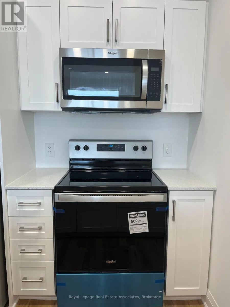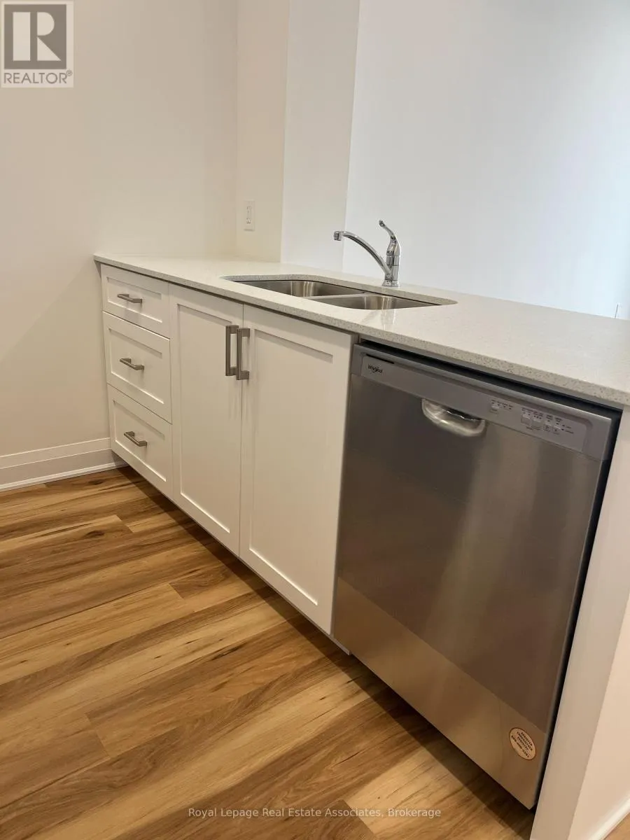 Cross Streets: Highway 20. ** Directions: Fletcher Road and Rymal Road East. Welcome to your luxury top floor condo! This brand-new, top-floor 1-bedroom + den, 1-bath suite offers 641 sq. ft. of modern living space plus a balcony with views of the pond perfect for enjoying your morning coffee or relaxing evenings. Step inside to a bright and airy open-concept layout, featuring a sleek white kitchen with stainless steel appliances, stone coutertops and ample cabinetry for storage, all overlooking the living and dining area. Gorgeous laminate flooring flows throughout, adding warmth and elegance to the space. The primary bedroom boasts a walk-in closet, providing plenty of storage, while the versatile den is ideal for a home office. Enjoy the convenience of in-suite laundry and modern finishes throughout. With one underground parking and a storage locker, this condo also offers exceptional amenities such as a bright well equipped exercise room, sophisticated party room, roof top patio and parcel pick up room. Easy access to shopping, dining, and more. (id:27476)