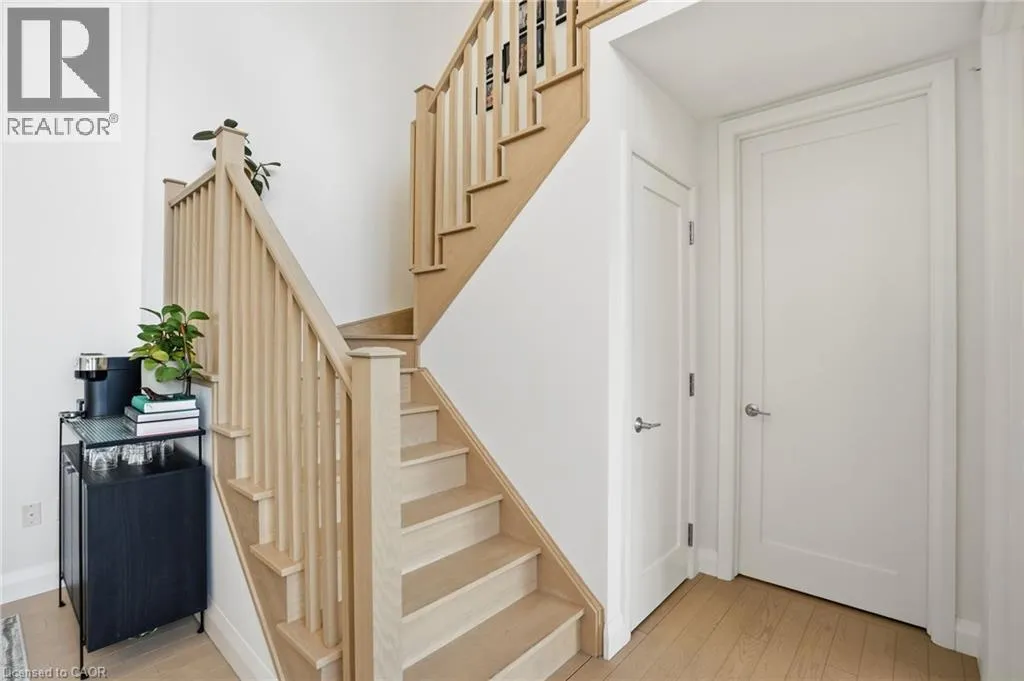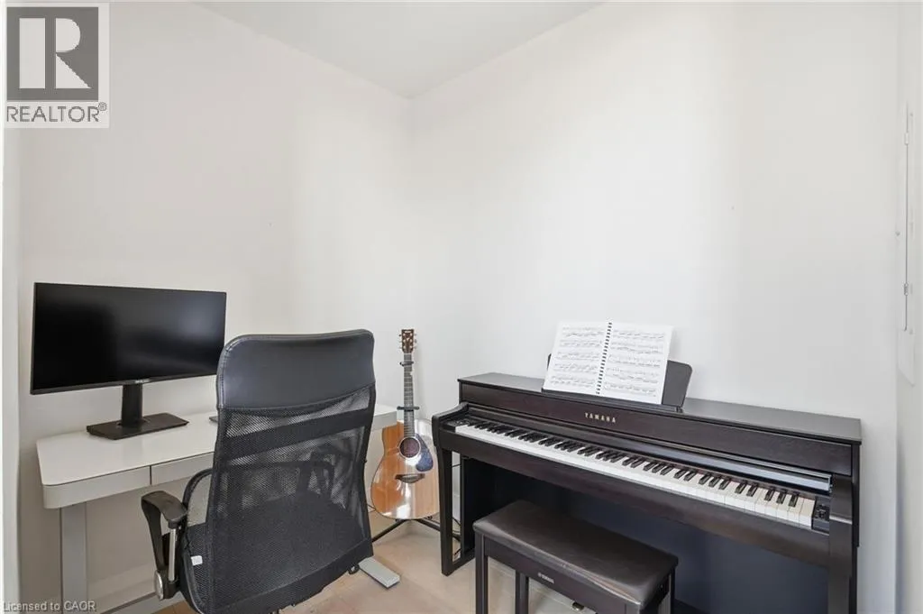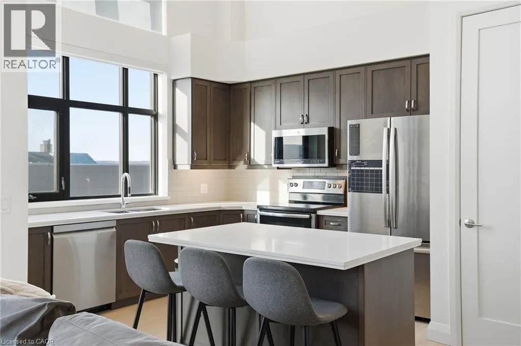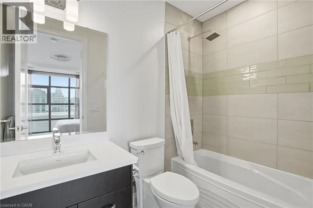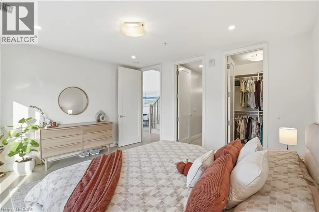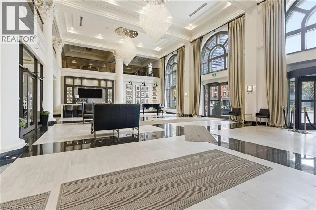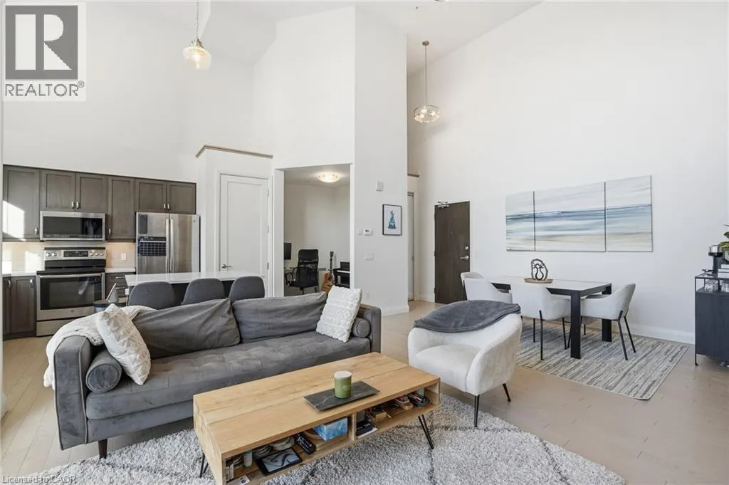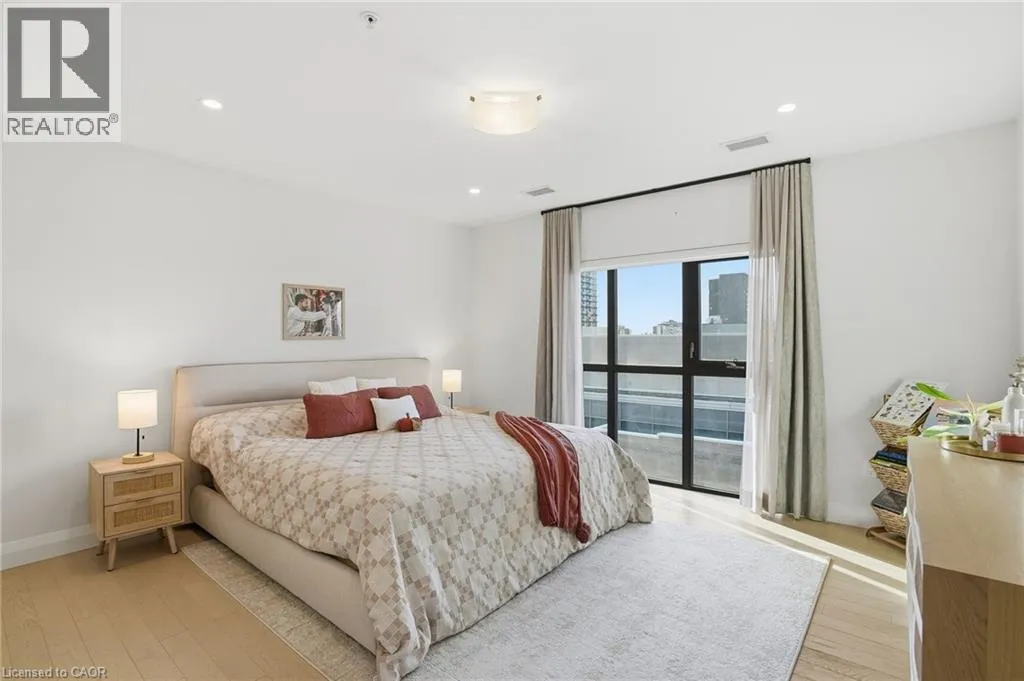 Step into elevated city living in this rare two-storey 2-bedroom, 2-bathroom, plus den lower penthouse at the iconic Residences of RoyalConnaught. This 1,267 sq ft west-facing suite features dramatic 18-foot ceilings, expansive floor-to-ceiling windows, and breathtaking,unobstructed views of the Escarpment, Gore Park, and Hamilton Harbour. The main level offers a bright open-concept living space with a den,laundry, and a spacious primary bedroom complete with walk-in closet and ensuite privileges, delivering true one-floor convenience. Upstairs, thesecond bedroom boasts its own 4-piece ensuite, ideal for guests or family. Thoughtful upgrades include quartz countertops, under-cabinetlighting, engineered hardwood floors, and custom motorized blinds. Enjoy your private balcony, ample storage throughout, and access topremium amenities including a rooftop terrace with fireplace and BBQs, party and media rooms, and a fully equipped gym. Starbucks isconveniently located between the two lobbies, just an elevator ride away. Unbeatable location steps to the GO Station, James Street North, KingWilliam Street, the Art Gallery of Hamilton, the Farmersâ Market, and more. Includes 1 underground parking and a storage locker located rightnext to the unit, with rental of a second parking spot available. Luxe, location, and lifestyle all in one. (id:27476)