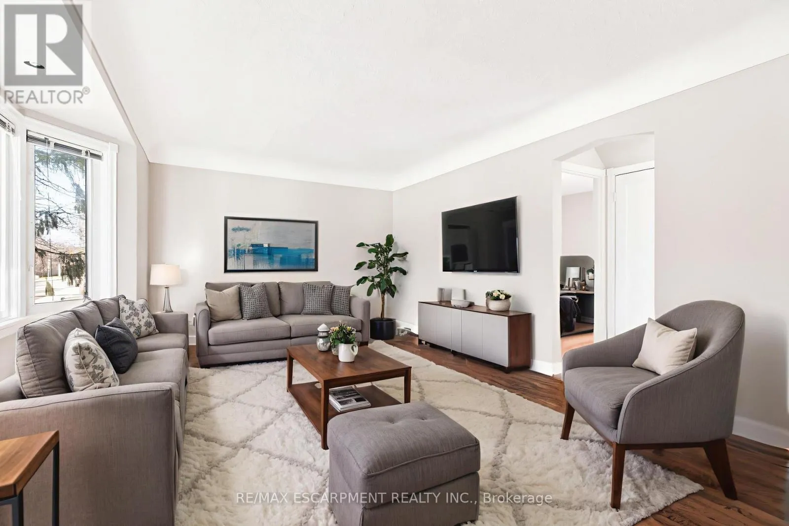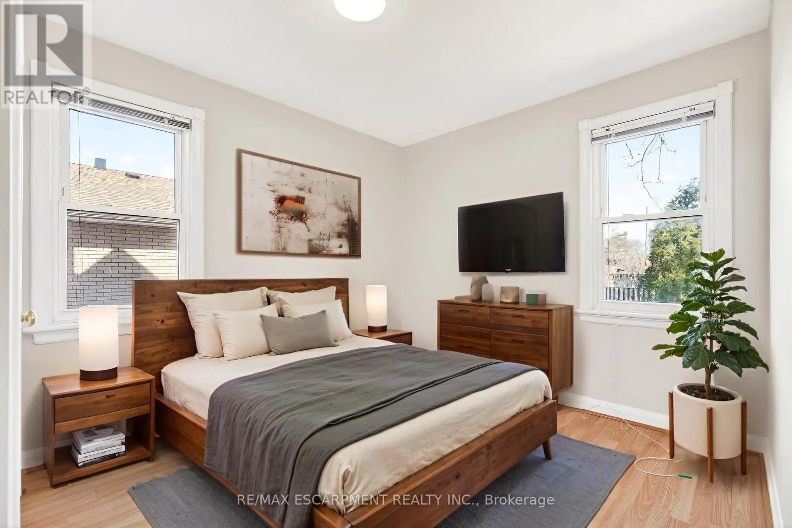 Cross Streets: Upper Wellington/Queensdale. ** Directions: East 11Th St./Queensdale. Step into a home where timeless character meets modern comfort, this beautifully maintained 1.5-storey detached home nestled in the highly sought-after Eastmount/Inch Park neighborhood. Perfect for first-time buyers, downsizers, or savvy investors, this property combines classic character with essential modern updates. The main floor features a spacious, sun-filled living and dining area highlighted by a large bay window and original hardwood flooring. This home offers three comfortable bedrooms, including a convenient main-floor bedroom with built-in cabinetry for extra storage. The basement was updated in 2021, featuring a generous recreation room and a dedicated laundry area. Step outside to a massive rear yard perfect for summer gardening or entertaining. Situated on the Hamilton Central Mountain, you are just steps away from the vibrant shops and restaurants on Concession Street, Sam Lawrence Park, and the Juravinski Hospital. Commuting is a breeze with easy access to the Linc, public transit, and various schools and libraries nearby. Some photos are virtually staged. (id:27476)