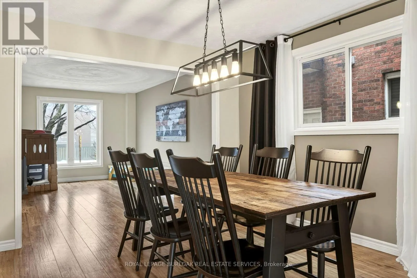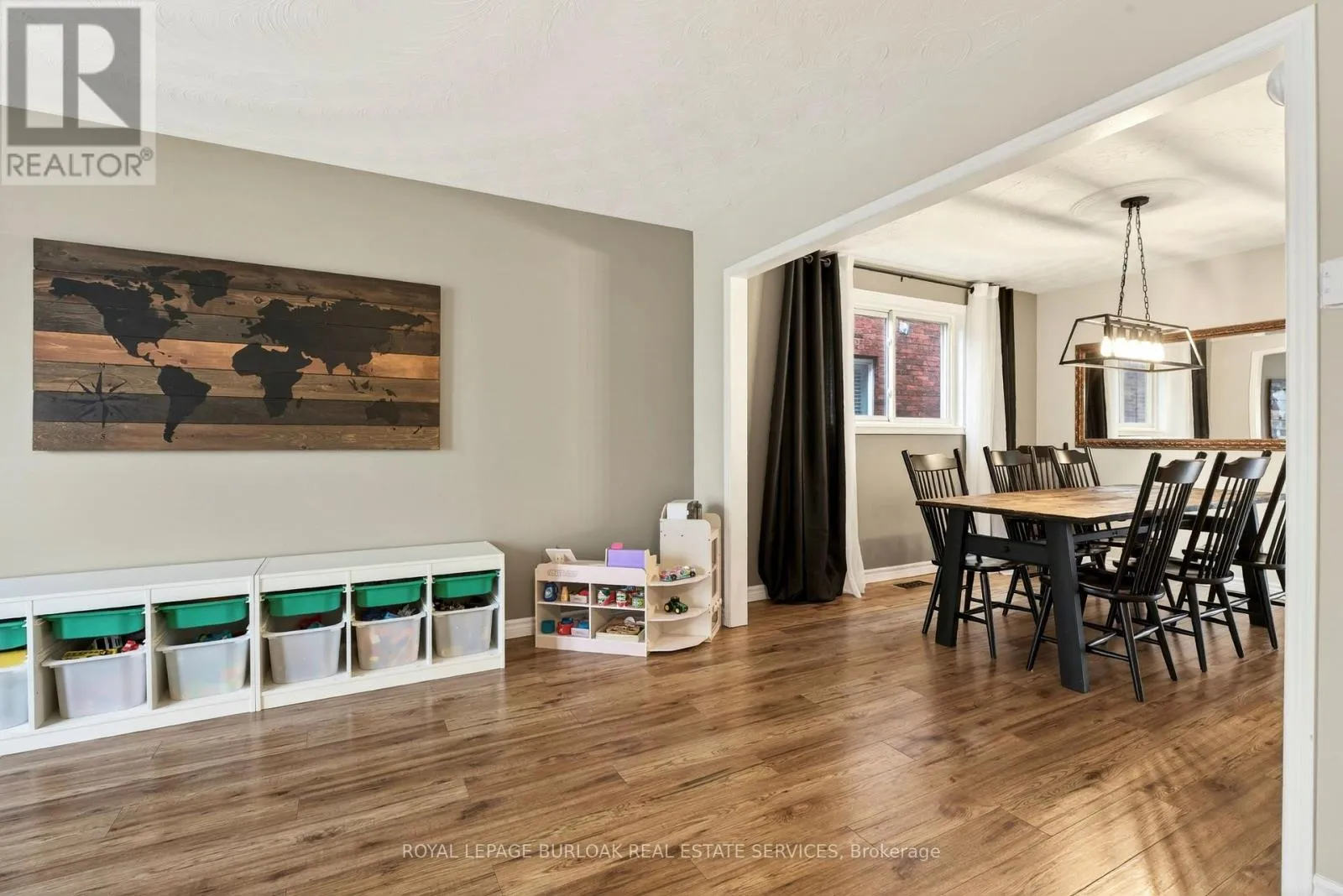Cross Streets: Stone Church Rd E & Upper Ottawa. ** Directions: South of Stonechurch Road East, Between UpperGage & Upper Ottawa. New appliances & updated kitchen!! Welcome to this bright and spacious 5-bedroom family home located in a quiet, family-friendly neighbourhood. The main level offers a functional and inviting layout featuring a generous living room, formal dining room, and a comfortable family room, perfect for both everyday living and entertaining. The bright eat-in kitchen provides a great space for family meals, while convenient main floor laundry and a 2-piece bathroom complete the level. The second floor features four oversized bedrooms with upgraded flooring and large closets throughout. The spacious primary bedroom offers a walk-in closet and a private 4-piece ensuite, creating a comfortable retreat. A second 4-piece bathroom serves the additional bedrooms, making the layout ideal for growing families. The lower level includes a versatile bonus room that can easily be used as a bedroom or an office. The basement has been professionally waterproofed, offering added peace of mind. Enjoy a private backyard in a fantastic young family area close to parks, schools, and green space, with quick and convenient access to the Lincoln Alexander Parkway and nearby amenities. This absolute show stopper is waiting for its next family to make it their home. Hurry over and see for yourself!! (id:27476)