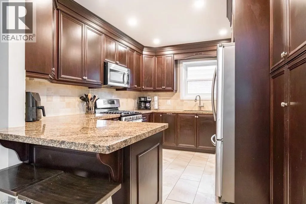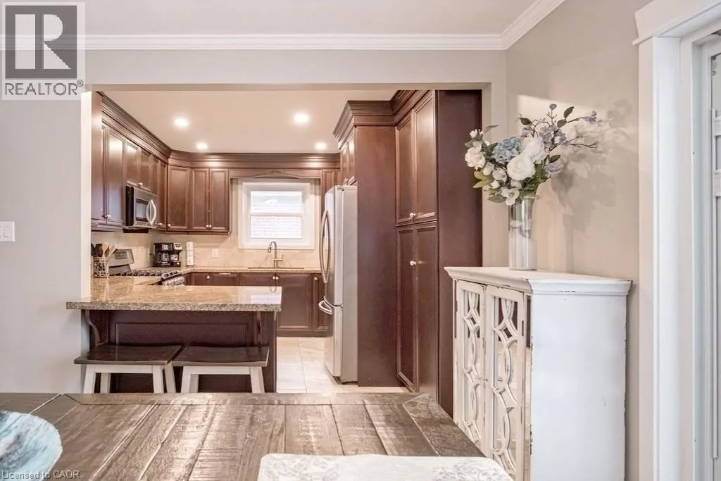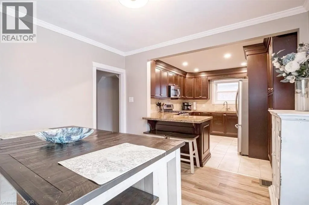 Between King & Main / Between Central Ave & Monterey Ave. Beautifully renovated and updated â just move in! Lovely 3-bedroom, 2-bath family home located on a quiet kid-friendly street just around the corner from local schools (JK to 5 â with both English & French Immersion). Featuring main floor living with formal living room, gorgeous traditional gas fireplace, separate dinette, main floor bedroom/office and full bath. The recent granite kitchen opens onto a wonderful breakfast/dining area with double glass doors leading to the sun-filled rear yard deck and 3-season sunroom. Upstairs are two more full bedrooms plus a large 5âx5â storage area that would make a perfect 3rd bath. And last but not least is the fully finished lower level with its spacious family room, cozy gas fireplace, spare bedroom sitting area and 3-piece bath. Other updates include 3-car concrete drive, full garage, updated windows & doors and the electrical system has been fully updated. (id:27476)