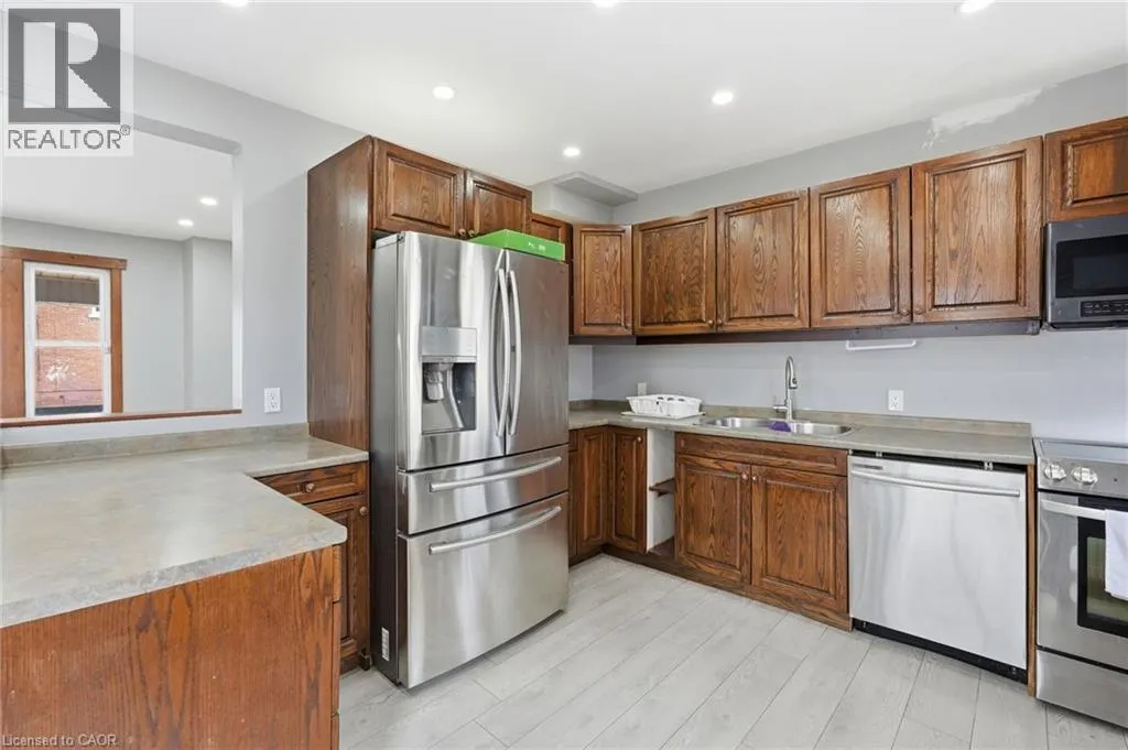 Barton St E to Sherman Ave to Cannon St E Centrally located and full of opportunity, this charming 2.5-storey home offers versatility for families, investors or those looking to offset their mortgage. Freshly revamped with newer flooring, the home features a bright and inviting layout with updates including tankless water heater, roof and water supply. The large eat-in kitchen with pot lights flows seamlessly into a spacious living room, also enhanced with pot lightingperfect for everyday living and entertaining. Upstairs, the second level offers two generously sized bedrooms, a full bathroom, and convenient laundry. The third floor provides a fantastic bonus space with a bedroom plus office/den-ideal for working from home or creating a private retreat. The finished lower level, complete with its own kitchen, presents excellent in-law suite or income potential, adding to the home's overall value and flexibility. A great option for investors or savvy buyers alike, with the added benefit of a seller willing to consider a vendor take-back. Rare three car parking! This one has endless possibilities! Donât be TOO LATE*! *REG TM. RSA. (id:27476)