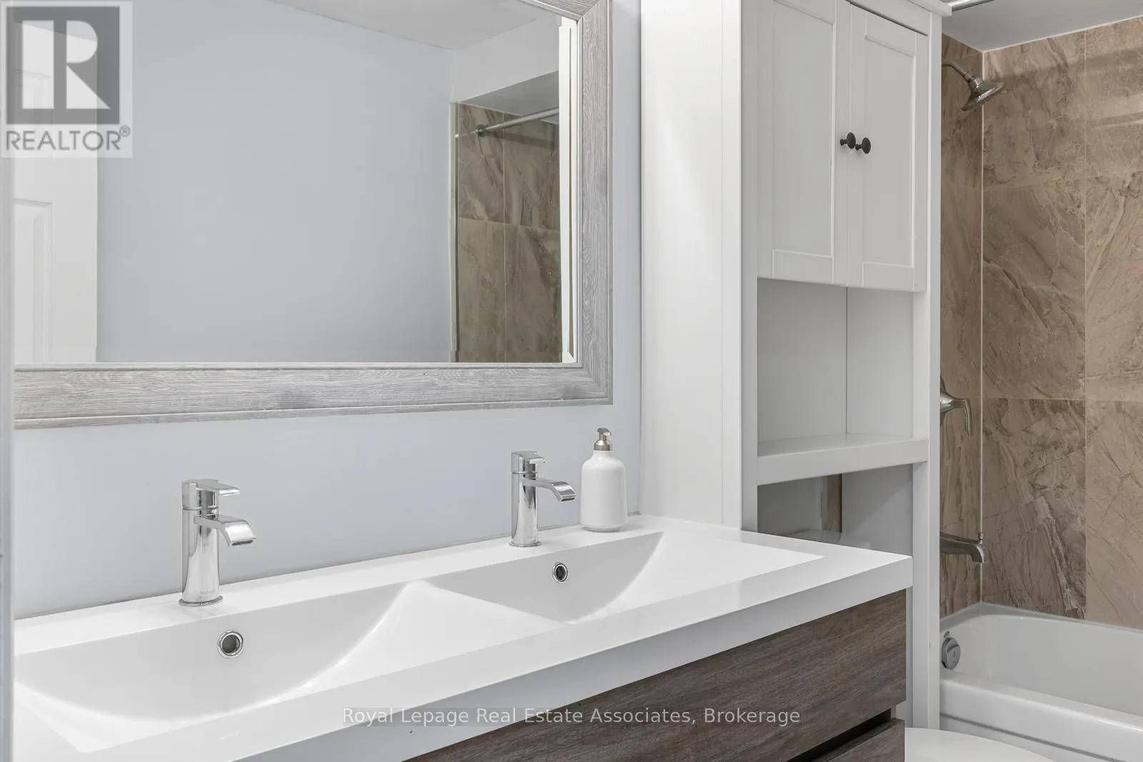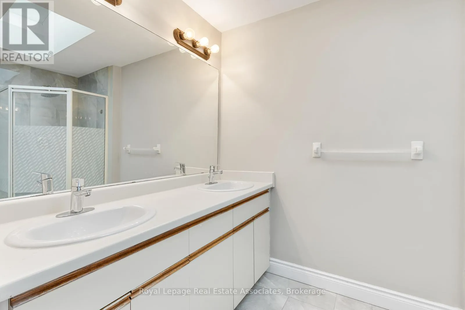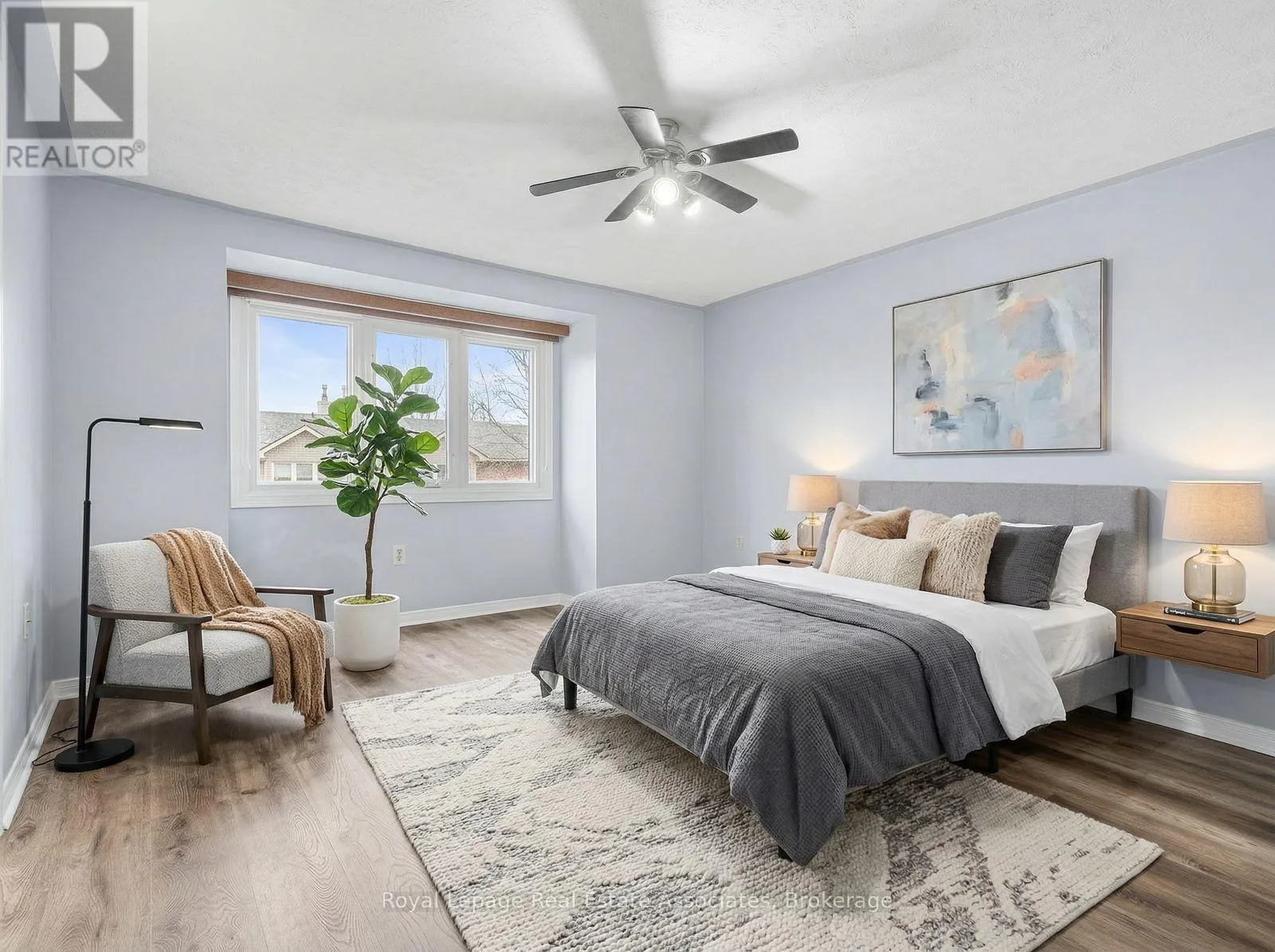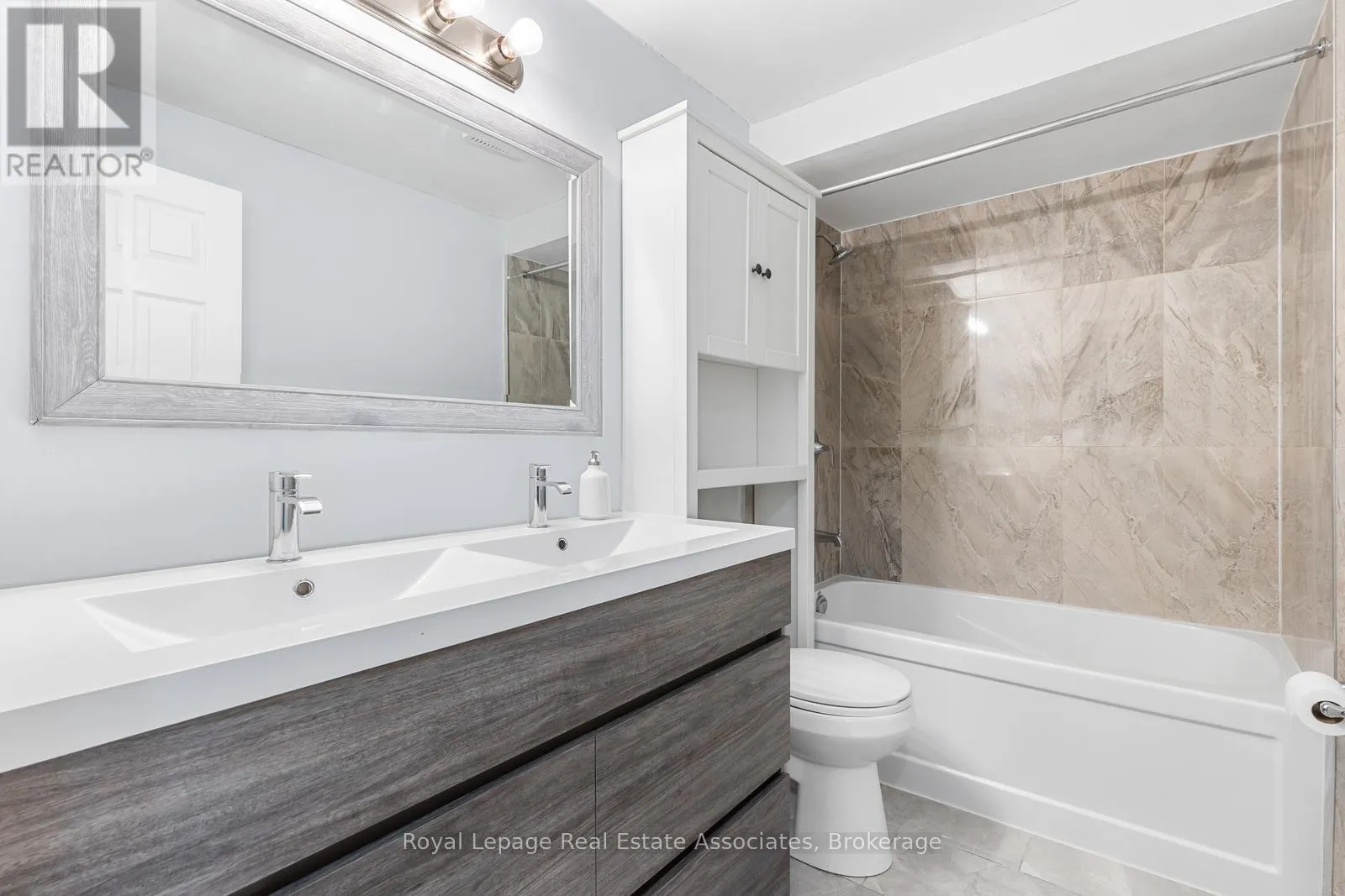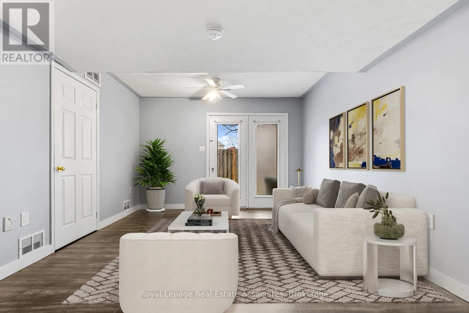 Cross Streets: Rymal Rd. W & St. Upper James St. ** Directions: Corner of West 5th St. & Stone Church Rd. W. Discover comfortable, modern living in this beautifully designed 3 bed, 3 bath condo townhome nestled on the desirable Hamilton Mountain. The ground floor features a welcoming family room with a 2 pc. bath & walkout to the private yard, perfect for relaxing or entertaining. On the second level, you'll find an spacious living room with high ceilings, gas fireplace and a walkout to a balcony, creating a bright and airy space filled with natural light. Overlooking the living area, the generous dining room provides an elegant setting for meals and gatherings. The eat-in kitchen offers ample space for casual dining, while the conveniently located laundry adds everyday practicality. The primary suite is complete with a 4 pc. ensuite bath enhanced by a skylight for a touch of luxury and natural brightness. A 5 pc. renovated main bathroom with double sinks serves the additional bedrooms, making this home ideal for families or those seeking extra space. Hot Water Heater'25, Furnace'22, CAC'22. Direct garage access. Close to schools, transit & shopping. Easy access to the Linc, hwy. 403 & all urban amenities. (id:27476)