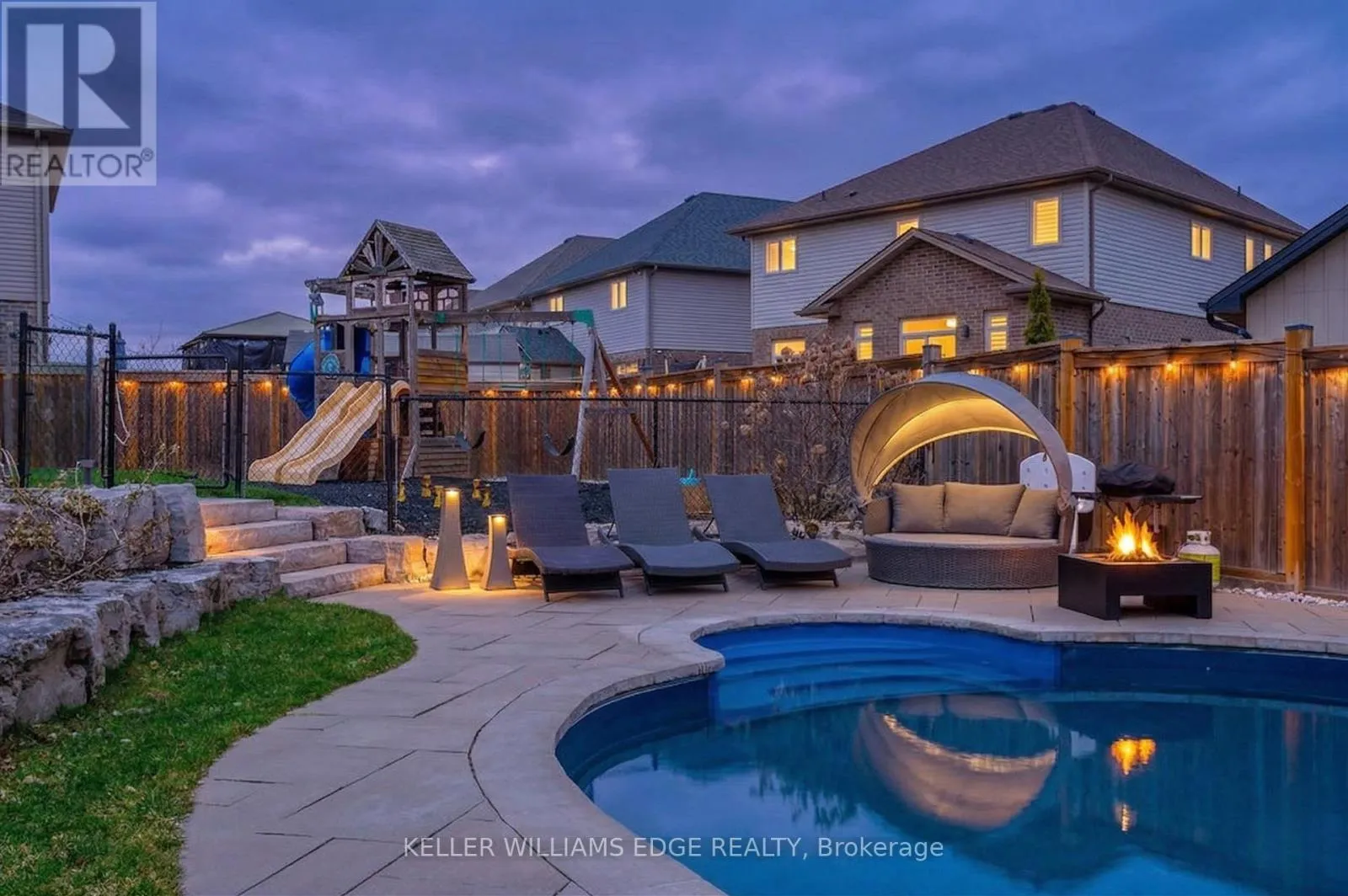 Cross Streets: Mud St W. ** Directions: Mud St W to Echovalley Drive. Welcome to 168 Echovalley Drive, an exceptional family home backing onto a beautiful greenspace with a true backyard oasis. Located in a sought-after, family-friendly neighbourhood on the Stoney Creek Mountain, this upgraded home offers over 3,000 sq. ft. of total living space, blending comfort, style, and outdoor living. Perfect for active families, you're minutes from scenic trails, waterfalls, and quick access to the Red Hill Parkway. Enjoy nearby shops, schools, and a walk/bike path leading directly to Heritage Green Sports Park with sports fields, playgrounds, and a dog park right behind your home. Set on a premium oversized pie-shaped lot, the professionally landscaped backyard is designed for entertaining and relaxation. Features include a custom inground saltwater pool with water feature, multiple patio areas, and an elevated deck with glass railings and a hot tub, ideal for summer gatherings and quiet evenings. Inside, the main floor offers vaulted ceilings, a custom fireplace, and large windows overlooking the backyard. A formal dining room flows into the upgraded kitchen with custom cabinetry, stainless steel appliances, a functional island, and ample storage, enhanced beyond the builder's plan. Convenient backyard access allows for seamless indoor-outdoor living. Upstairs, the spacious primary suite features large windows, a walk-in closet, and a luxurious ensuite. Two additional bedrooms, a 4-piece bath, second-floor laundry, and a versatile office or lounge complete the level. The fully finished lower level includes a large recreation room and ample storage, ideal for family use or a home gym. This home offers an exceptional combination of upgraded living, outdoor space, and a prime location. For added convenience, the home can be purchased fully furnished, making for an effortless, move-in-ready experience (id:27476)