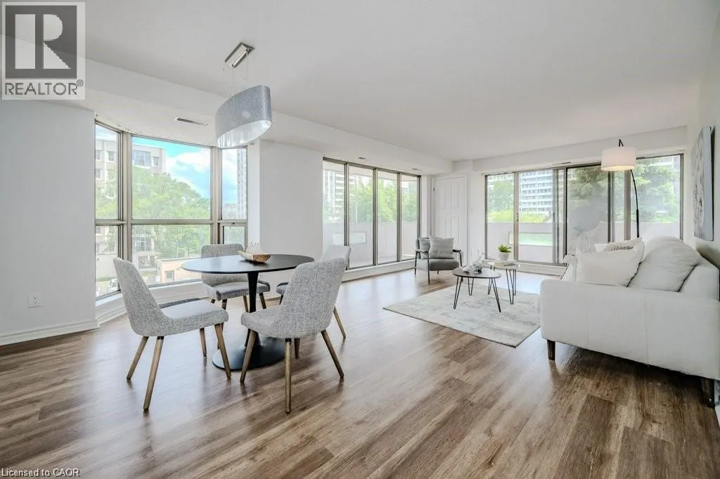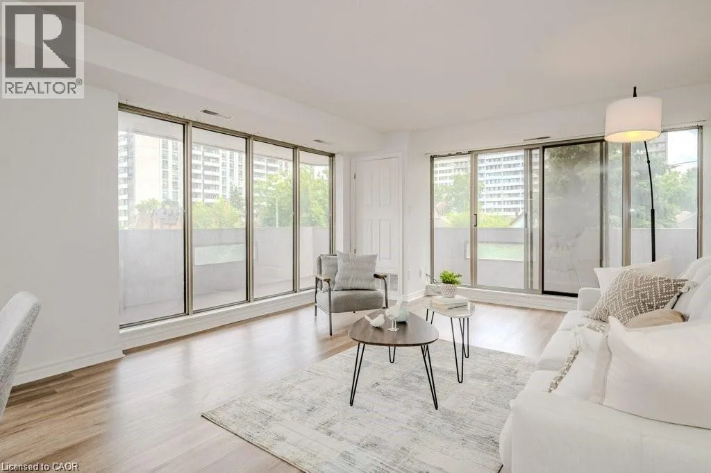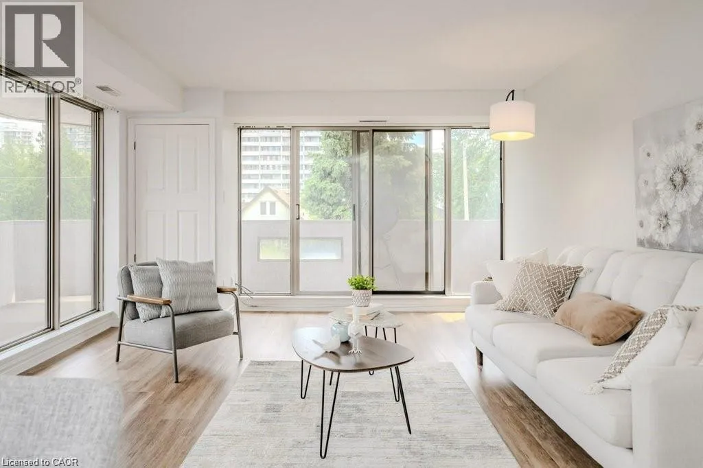 Corner of Jackson and Caroline Welcome home to luxury living, Hamilton's Bently building offers prestige and comfort. This unit has a wraparound balcony offering views to the south east and west, open living - dining area, eat in kitchen with new countertops and updated cabinetry. Large bedrooms, walk-in closets, en suite laundry, freshly updated kitchen, flooring and baths. (id:27476)
