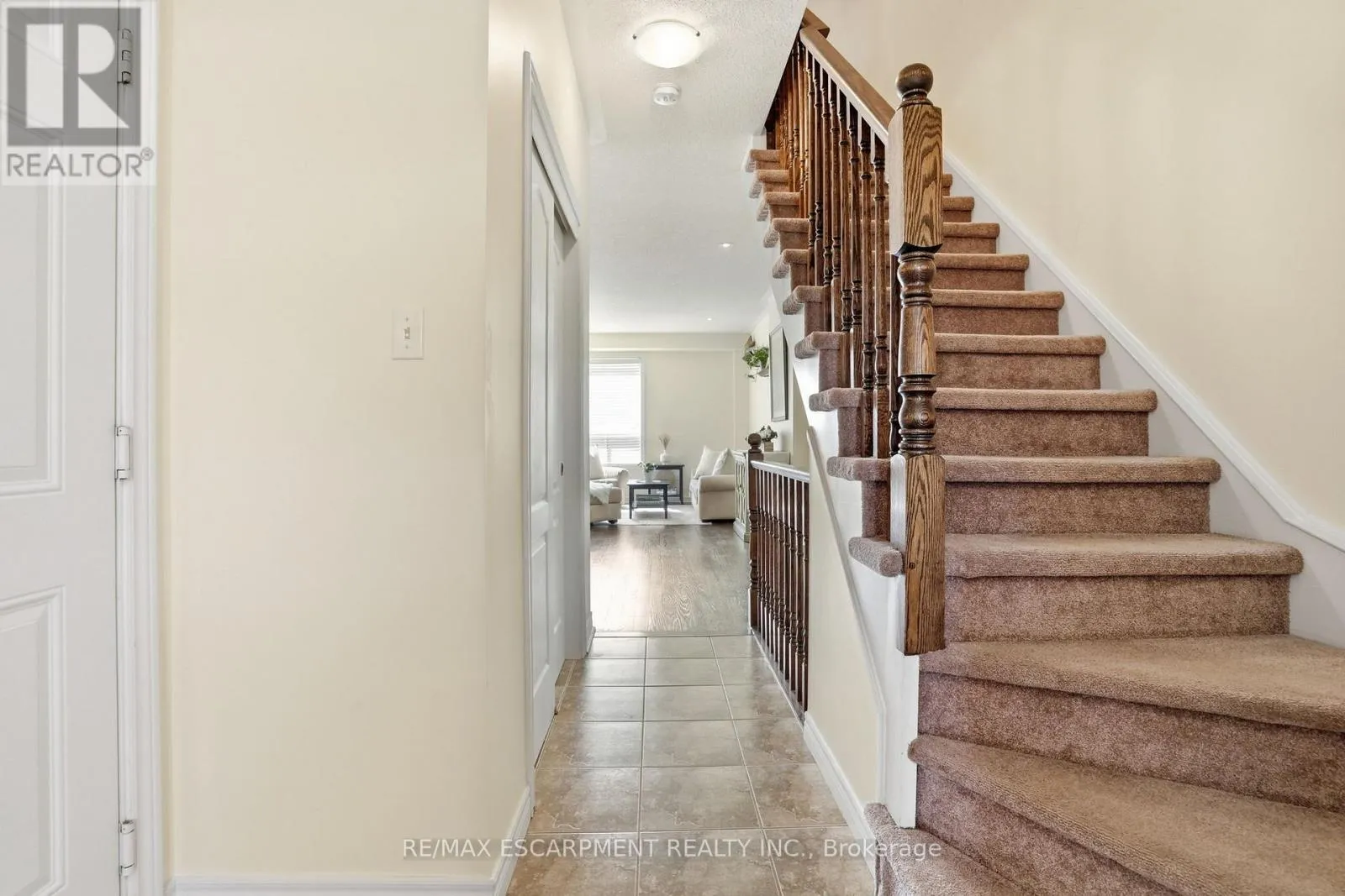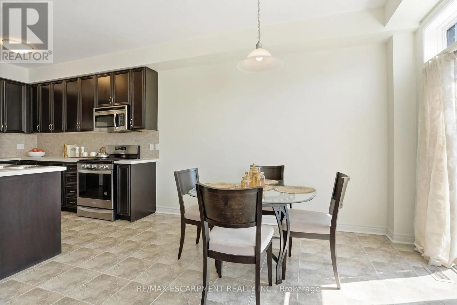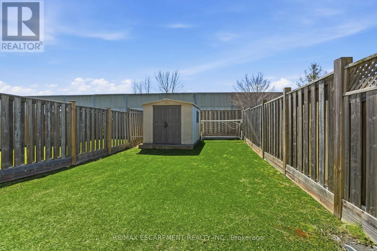 Fifty Rd to N Service Rd to Baseline Rd to Marina Point Cres This professionally renovated freehold townhome has been meticulously maintained from top to bottom - and it shows. With southern exposure bringing natural light into every room throughout the day, this home offers a rare combination of warmth, space, and thoughtful upgrades that make it truly move-in ready. Step inside and feel instantly at ease. Nine-foot ceilings, rich maple hardwood floors, and generous windows create a bright, open atmosphere that's ideal for both everyday family living and entertaining. The open-concept layout flows seamlessly into the eat-in kitchen, complete with stainless steel appliances, ample cabinetry, and a pantry for all your storage needs. A conveniently placed powder room in the foyer adds a practical touch. Step out from the kitchen onto the large concrete patio - a perfect extension of your living space - overlooking a private, maintenance-free oversized backyard with plenty of room for kids and pets. A spacious shed built on a concrete slab rounds out the outdoor space beautifully. Three generously sized bedrooms provide comfortable space for the whole family. The primary bedroom features a private three-piece ensuite, while a well-appointed four-piece family bath serves the remaining rooms. Upper-level laundry - just steps from every bedroom - adds everyday convenience you'll quickly wonder how you lived without. The fully finished basement extends your living space with a versatile rec room and a full three-piece bathroom - ideal as a teen retreat or home office. Additional storage throughout keeps everything neat and organized. RSA. (id:27476)