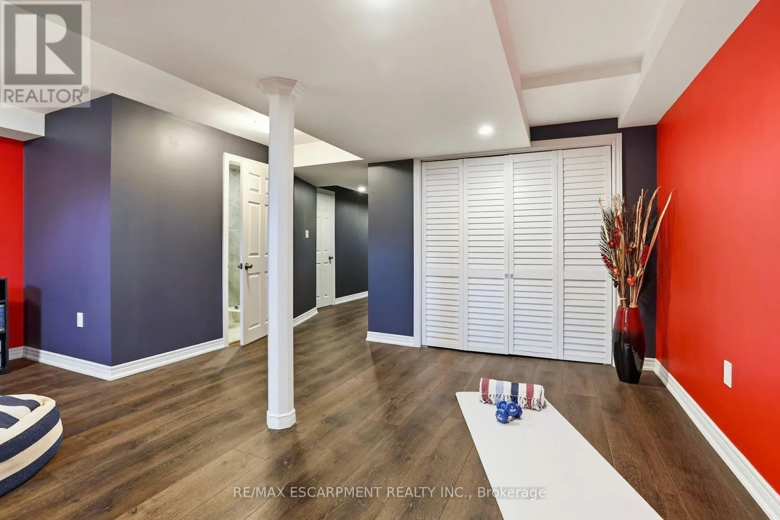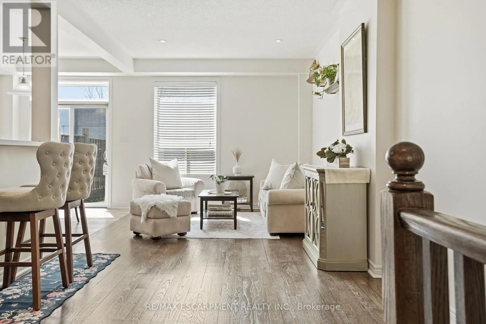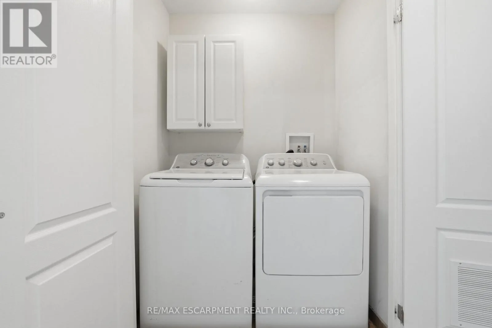 Fifty Rd to N Service Rd to Baseline Rd to Marina Point Cres This professionally renovated freehold townhome has been meticulously maintained from top to bottom - and it shows. With southern exposure bringing natural light into every room throughout the day, this home offers a rare combination of warmth, space, and thoughtful upgrades that make it truly move-in ready. Step inside and feel instantly at ease. Nine-foot ceilings, rich maple hardwood floors, and generous windows create a bright, open atmosphere that's ideal for both everyday family living and entertaining. The open-concept layout flows seamlessly into the eat-in kitchen, complete with stainless steel appliances, ample cabinetry, and a pantry for all your storage needs. A conveniently placed powder room in the foyer adds a practical touch. Step out from the kitchen onto the large concrete patio - a perfect extension of your living space - overlooking a private, maintenance-free oversized backyard with plenty of room for kids and pets. A spacious shed built on a concrete slab rounds out the outdoor space beautifully. Three generously sized bedrooms provide comfortable space for the whole family. The primary bedroom features a private three-piece ensuite, while a well-appointed four-piece family bath serves the remaining rooms. Upper-level laundry - just steps from every bedroom - adds everyday convenience you'll quickly wonder how you lived without. The fully finished basement extends your living space with a versatile rec room and a full three-piece bathroom - ideal as a teen retreat or home office. Additional storage throughout keeps everything neat and organized. RSA. (id:27476)