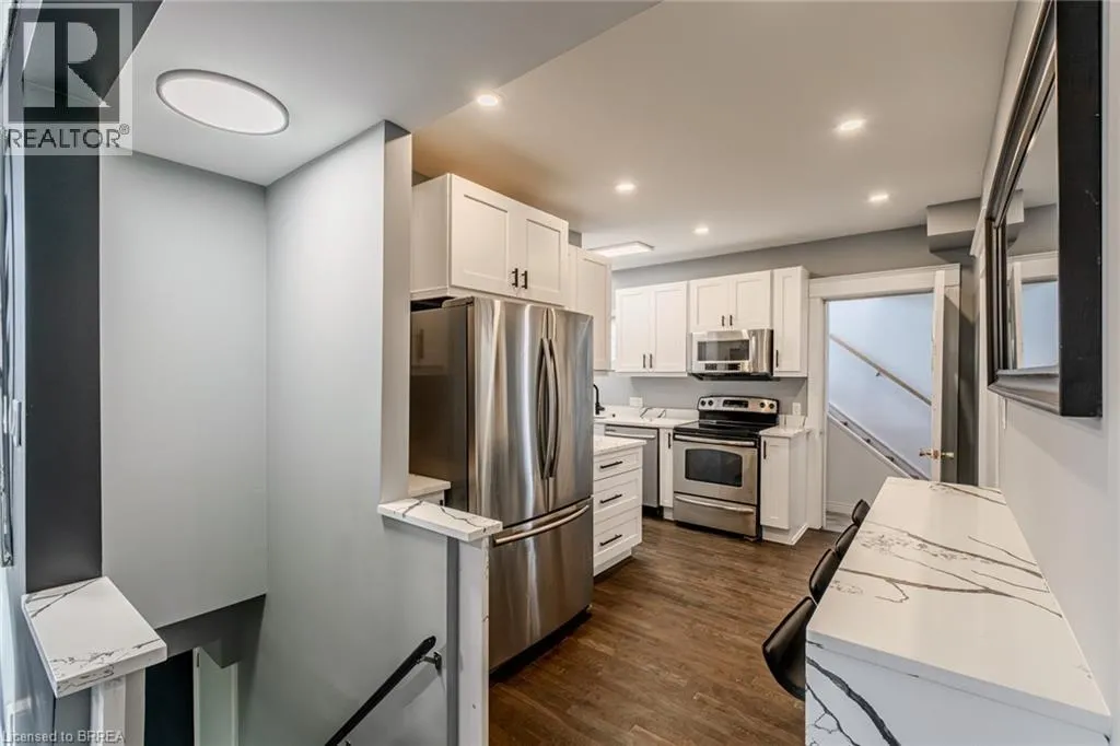 Take Mohawk Rd East to Upper Sherman Ave. Drive North Turn Right on Concession St. First Right is East 31St Street- Home is on the right side. Freshly updated & move-in ready! This 4-bedroom, 3 bath home has two kitchens, recreation room, 2 laundry areas and a separate entrance, offering a versatile layout to accommodate your large family, extended family, or the possibility to generate rental income. The double-wide driveway fits 2 vehicles and leads to a front deck and large enclosed porch. Inside, the foyer opens into a bright open concept living/dining space featuring new ¾â hardwood flooring and high ceilings throughout the main level. The main floor includes 3 bedrooms, all with hardwood, plus a new 4-piece bathroom with porcelain flooring, a soaker tub, and tile surround. The new eat-in kitchen features quartz countertops, ample cabinetry, hardwood flooring, and a quartz breakfast bar. It also provides access to a common area with a separate side entrance, leading to the backyard and upper portion of the home. The separate entrance off the kitchen has stairs that lead to a landing and a cozy upper deck with glass railing overlooking the yard. A few steps up is another landing that works perfectly as a mudroom, before entering the upper unit. The upper level has been updated and includes a newer kitchen with luxury vinyl flooring and granite countertops, plus an updated 4-piece bathroom with luxury vinyl flooring and a glass-entry shower with ceramic tile surround. The original hardwood has been refinished and runs through the spacious bedroom and combined living/dining area, which features vaulted ceilings and recessed lighting. The newly constructed lower level offers a recreation room with recessed lighting and broadloom, a 2-piece bath, and a large laundry/mechanical/storage area. Ideally located near Juravinski Hospital, this property is perfect for investors, extended families, or anyone looking for a flexible layout with income potential to help pay for expenses. (id:27476)