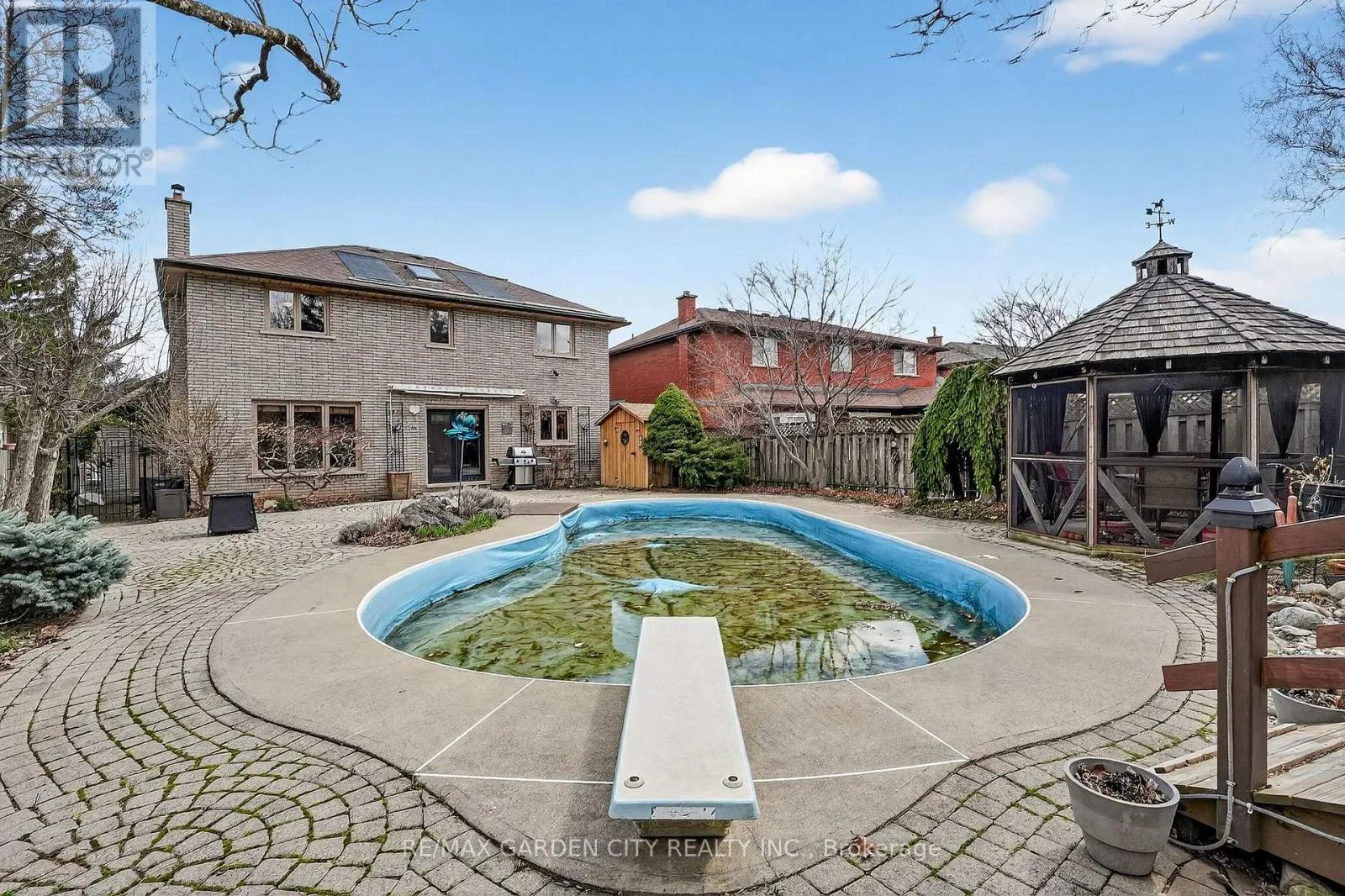 Cross Streets: Grennhill Ave & National Dr. ** Directions: Greenhill Ave to National Dr. Rare 215-foot deep ravine lot with a private backyard oasis in a sought-after Hamilton location. This beautifully maintained 4-bedroom home is set on one of the largest lots in the neighbourhood, offering exceptional privacy with lush, forested views and no rear neighbours-a truly special find in the city. Inside, elegant hardwood floors complement a spacious, well-designed layout ideal for comfortable family living and entertaining, while the finished basement provides additional living space and ample storage. The backyard is a true retreat, featuring an inground pool, expansive interlock patio, and a screened-in gazebo-perfect for summer gatherings or quiet moments surrounded by nature. Thoughtfully landscaped gardens and mature trees enhance the sense of tranquility throughout. Additional highlights include a 2-car garage, 4-car interlock driveway, pool equipment shed, large garden shed, and gated access to the ravine. Located just steps from a large park and close to schools, transit, and everyday amenities, this home offers a rare blend of privacy, space, and convenience. A unique opportunity to own a premium ravine property with exceptional outdoor living. (id:27476)