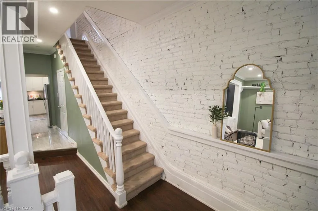 west on Cannon St E, South on Wellington St N This home is full of New York vibes while being walking distance to many of Hamiltonâs coolest spots. At 1,698 square feet and with 4 bedrooms, 1.5 bathrooms and parking for 2-3 cars, this home is the full package. The charming exterior leads into the spacious foyer with French doors. With nearly 10 foot ceilings and an exposed brick wall, the main floor is grand and spacious. A couple of steps up, youâll find the living room with a large bay window. Next up is the generously sized dining room with custom built-ins. At the back of the house is the eat-in kitchen featuring stainless steel appliances and under cabinet lighting. Donât miss the powder room showcasing even more of that exposed brick wall. Upstairs you will find four good-sized bedrooms plus the 4 piece bathroom. Donât miss the main floor laundry before stepping out onto the covered back deck. The backyard offers room to entertain along with an insulated shed with hydro and raised garden beds to start your own veggie garden in the city. Beyond the fence, youâll find parking for 2-3 cars. The location is extremely walkable with some amazing amenities just beyond your doorstep. Youâll find all of the trendy shops and restaurants along King William St and James St N â donât miss the many art crawls throughout the warmer months as well. There is the waterfront with Williams Café, outdoor roller skating and ice skating, marina, playgrounds and many festivals throughout the year. Weâve also got schools, the GO station, TD Coliseum, The Hamilton Farmerâs Market and so much more. Donât miss out, this could be your new home! (id:27476)