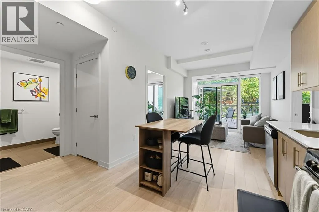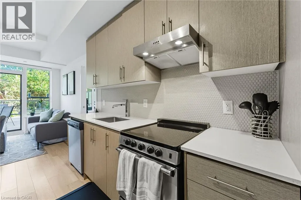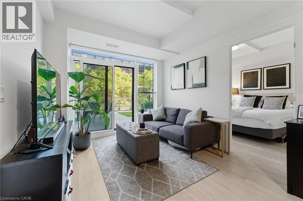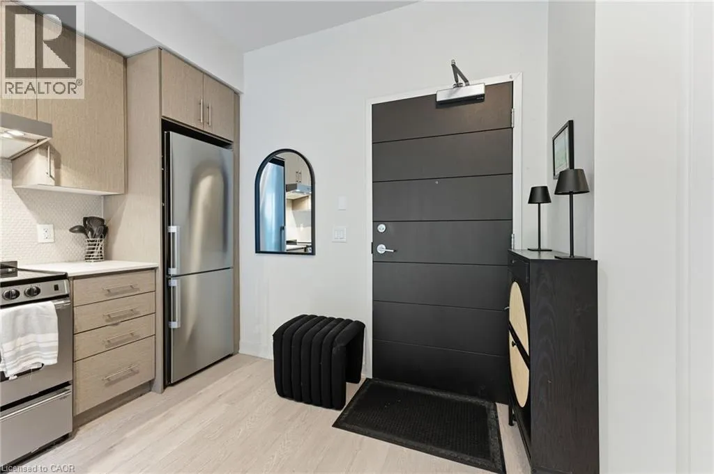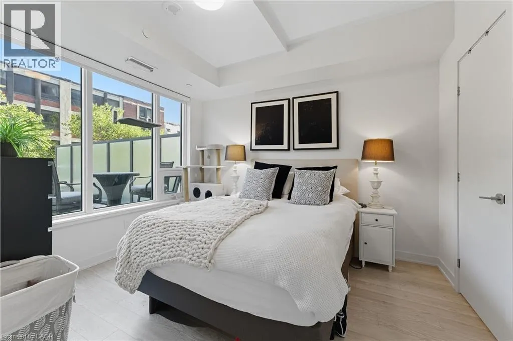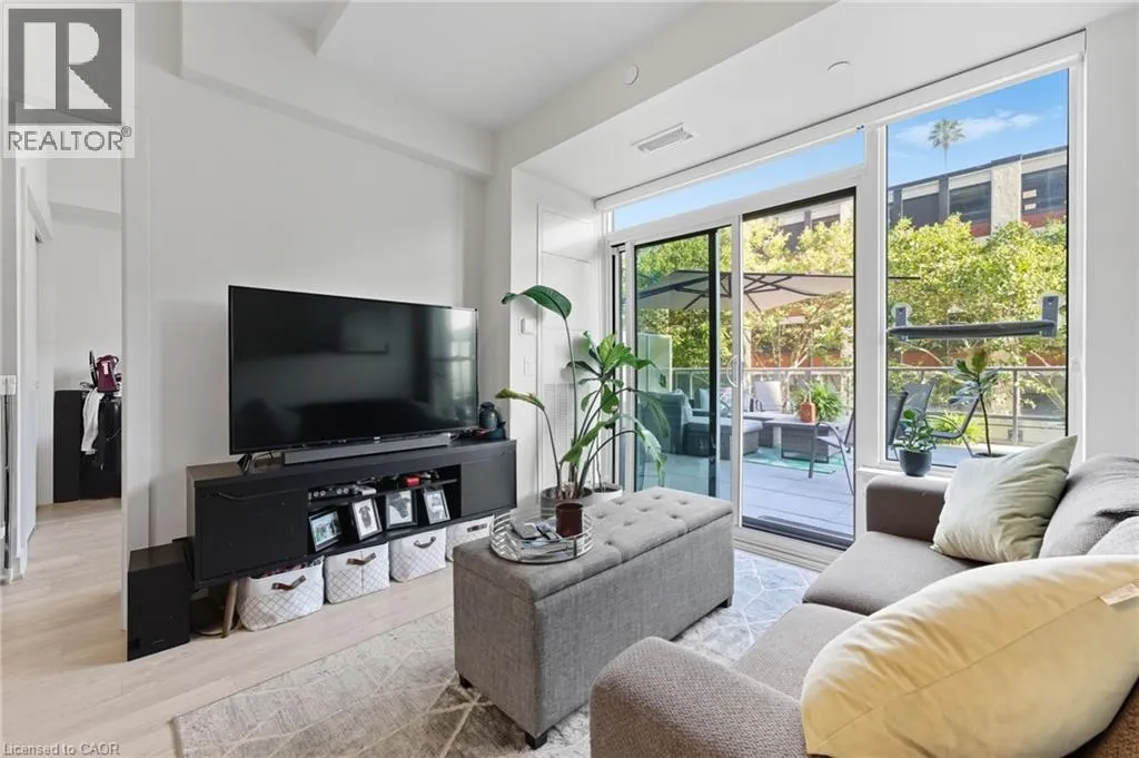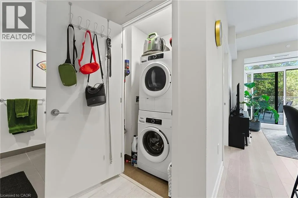 This 2 bed, 2 bath condo by Rosehaven Homes offers 760 sq ft of interior living space plus a rare 620 sq ft private terrace â one of the largest outdoor spaces you'll find in a Hamilton condo.The unit shows beautifully. Nine-foot ceilings, generous natural light, and quality finishes throughout including upgraded penny tile backsplash in both bathrooms. The primary bedroom features a walk-in closet and ensuite. The second bathroom offers a full soaking tub. Built in 2023 and owner-occupied since day one. Located on the third floor with a single-loaded hallway â units on one side only â making it one of the quieter floors in the building. Watch sunrise and sunsets on the rooftop which provides panoramic city views of the Hamilton Mountain and Lake Ontario. Enjoy social get togethers and dinners on the rooftop with use of the communal BBQs. Access to stunning party room is also available for larger gatherings. Walk to King William and James Street North. Short drive to Bayfront Park, the GO Train, and quick access up to Hamilton Mountain via the Claremont access. (id:27476)