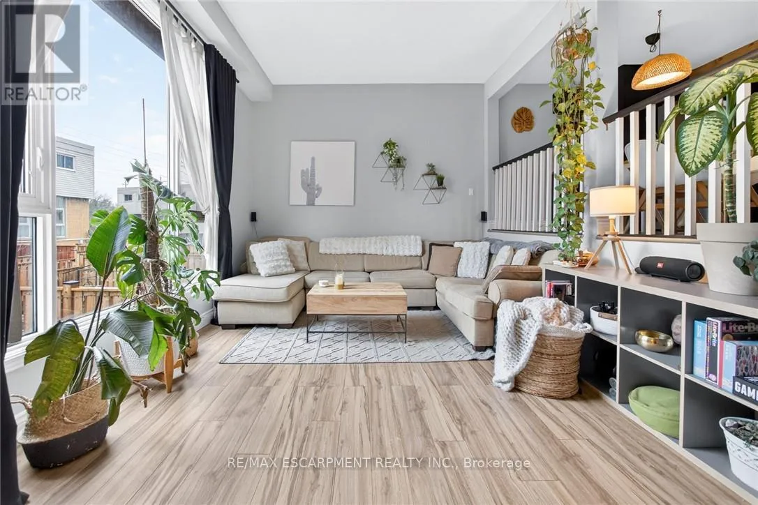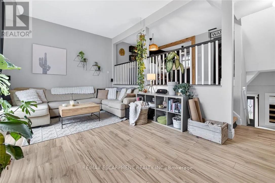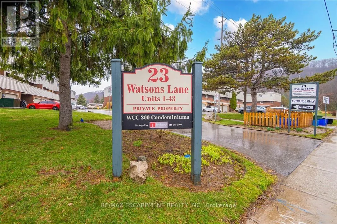 Cross Streets: -. ** Directions: WATSONS LANE AND FOREST VIEW DRIVE. Exceptional value in the Valley! Tucked against the escarpment and just minutes from the vibrant core of Dundas, this spacious fully updated 1,500 sq. ft. townhome offers the perfect balance of natural beauty and everyday convenience. Surrounded by scenic views, you'll love being so close to local shops, dining, and amenities. Bright and airy throughout, the home features large windows that flood the space with natural light, along with soaring ceilings in the open-concept living and dining area that create a stylish, loft-like feel. The interior showcases neutral finishes for a clean, modern look, complemented by a newly updated kitchen and refreshed bathrooms. Main level laundry and inside access to the garage add to the home's practical appeal. The fully finished lower level provides excellent additional living space, complete with a walk-out to the backyard and a convenient powder room. Enjoy exclusive access to a private in-ground pool within the complex for the warm summer days, while the surrounding landscape transforms beautifully in the fall. Set in a family-friendly neighbourhood close to schools, parks, and offering easy access to highways, transit, and major routes. Minutes to McMaster University, Cootes Paradise, and Dundas Driving Park. A fantastic opportunity to own a move-in ready home in a highly sought-after Dundas location. (id:27476)