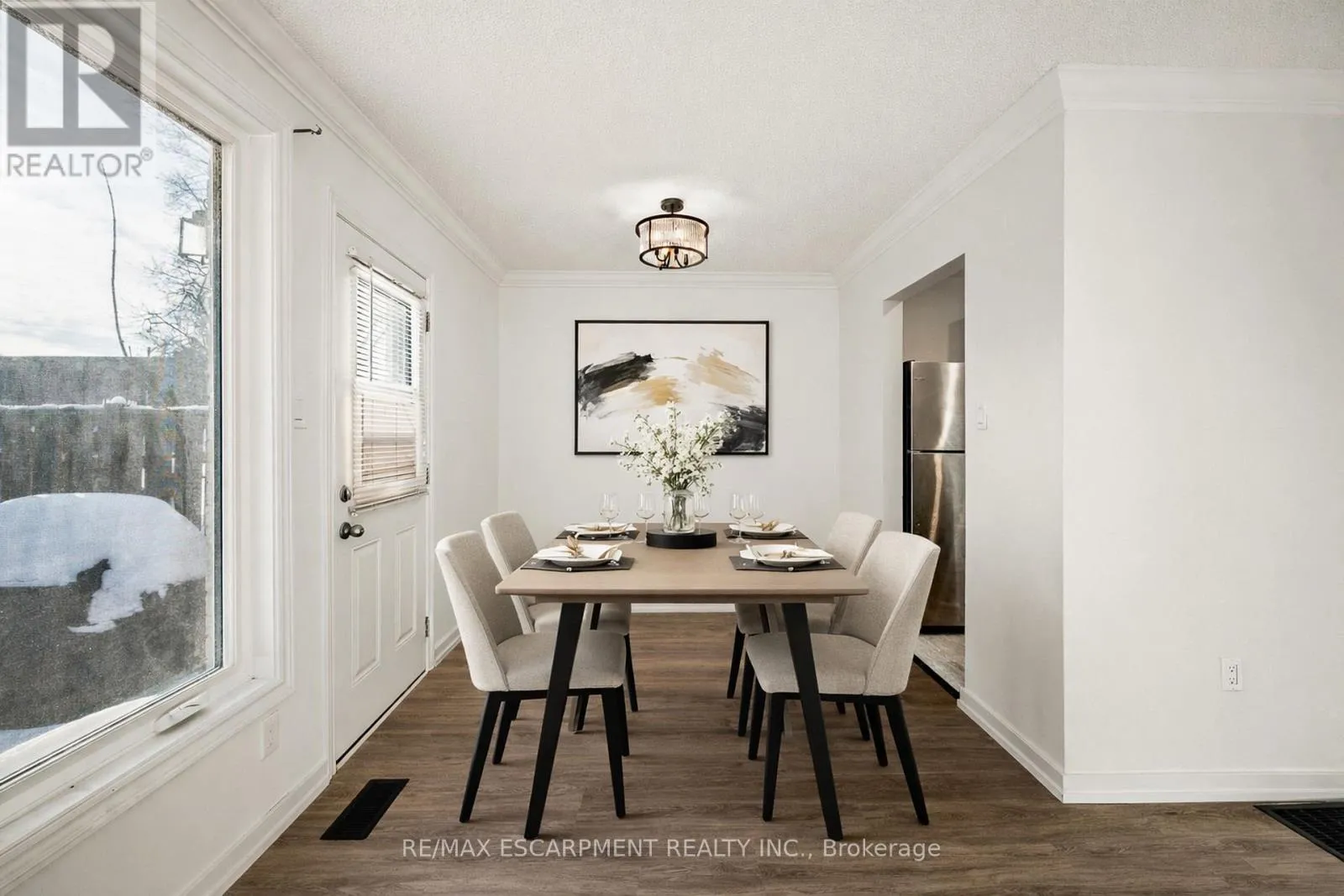 Cross Streets: Upper Ottawa and Stone Church Road. ** Directions: Stone Church Rd E to Rochelle Ave. Welcome to Suite 41 at 33 ROCHELLE AVENUE -- an elegantly renewed condo townhouse offering 1,412 soft. of finished living space, where thoughtful updates and modern comfort come together in perfect harmony. With 3 bedrooms and 1.5 bathrooms, this home blends practically with a sense of calm, creating a space that feels both refreshed and ready for its next chapter. Step inside and experience the beauty of the 2026 renovations, where every level has been uplifted with modern flooring and new upscale trim that adds subtle sophistication throughout. Lighting from 16 new pot lights casts a warm glow across freshly painted walls, highlighting the home's clean lines and contemporary feel. A custom-built metal stair railing becomes a striking architectural feature--paired with refaced stairs that elevate the entire flow of the home. Behind the scenes, meaningful upgrades bring peach of mind: an updated electrical panel (2026) and refreshed electrical plugs ensure the home is as functional as it is beautiful. The main living spaces feel open and inviting, perfect for quiet evenings or lively gatherings. Upstairs, three well-proportioned bedrooms offer flexibility for family, guests or a dedicated workspace. The lower level extents your living area, creating a room for relaxation, hobbies, or a cozy media retreat. Set within a well-kept community in a convenient Hamilton location, Suite 41 offers the ease of condo living with the warmth of a true home, including a private, fenced backyard. Move-in ready, stylishly updated, and designed for those who appreciate comfort with a touch of artistry. (id:27476)