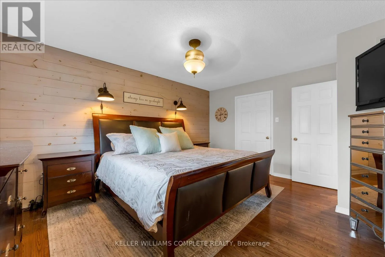 Cross Streets: Lakeview Dr. ** Directions: Lakeview Dr to Homeland Ave. Steps to Lake Ontario in a quiet court location! Best neighbours you could have!! This beautifully maintained 2,073 sqft, 4+1 bedroom, 2.5 bathroom home showcases true pride of ownership with neutral décor and no carpeting throughout. Hardwood floors run through the living, dining, family room, and all bedrooms, with ceramics in the kitchen and bathrooms. The updated eat-in kitchen features granite countertops, oak cabinetry, and ample storage, and opens to a sunken family room with a cozy wood-burning fireplace and walkout to the backyard. Set on one of the largest and most private lots in the area, the backyard offers mature trees, is fully fenced, a spacious deck, above-ground pool (removable), and plenty of room for entertaining or family enjoyment. The primary bedroom includes a walk-in closet and a 3-piece ensuite with a large walk-in shower. The finished basement adds extra living space with a pool table/theatre room (which could be a bedroom) & a finished workout & home salon area plus storage. Numerous updates include A/C (2024), pool pump (2023), furnace (2021), pool liner (2021), windows (2012), shingles (2007) - all dates approximate. Located just a 1-minute walk to scenic lakefront trails and Cherry Beach, close to schools, shopping, parks, and with excellent highway access - only 20 minutes to Niagara or Oakville. Move-in ready and shows beautifully! (id:27476)