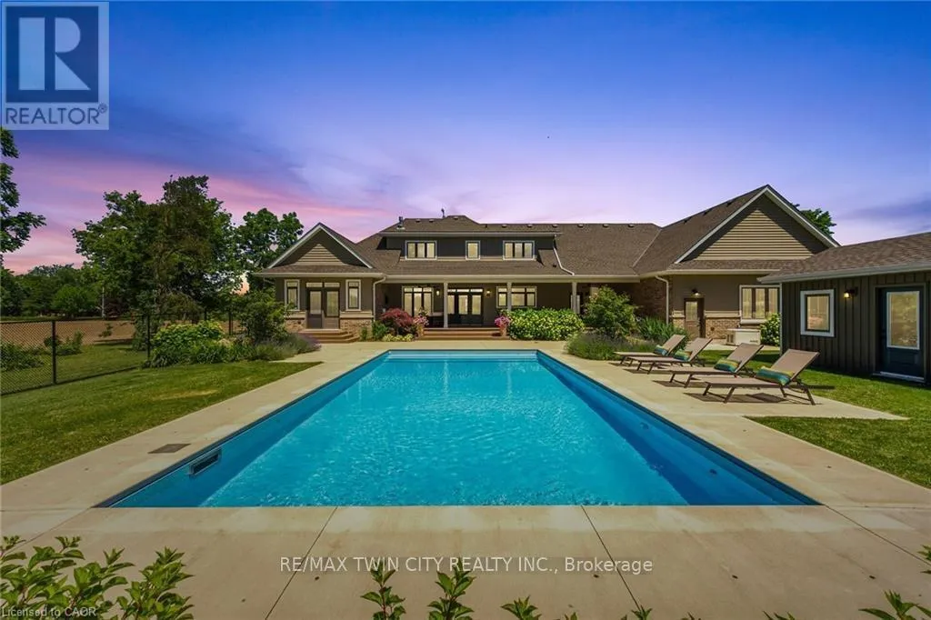 Cross Streets: Jerseyville Rd. ** Directions: Turn from Jerseyville Road. Set on a beautifully landscaped 1.25-acre parcel in a serene rural setting, this exceptional custom-built bungaloft is a true countryside retreat. Designed with both comfort and entertaining in mind, the home showcases a gourmet kitchen ideal for gatherings, 2.5 bathrooms, and a thoughtfully designed layout that blends elegance with functionality. The main floor primary suite is a private haven, featuring a fireplace and garden doors that open to a deck with views of the heated in-ground saltwater pool and surrounding green space. TWO dedicated main floor offices makes working from home effortless, while practical touches such as main floor laundry, a generous mudroom, and attached triple car garage add to the home's everyday appeal. Outside, the pool enjoys sunny southern exposure, creating the perfect setting for summer enjoyment. Ideally located near the rail trail, golf courses, shopping, amenities, and Highway 403 access, this remarkable property offers the tranquility of rural living with all the conveniences of the city just minutes away. Rough in Pet spa (id:27476)