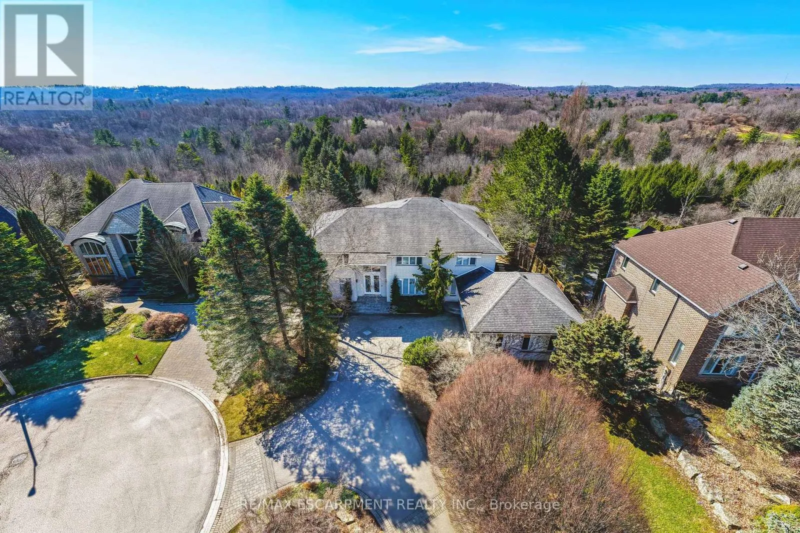 Kirkwood Dr A truly exceptional estate - 2 Anslow Court is a rare offering in one of the most prestigious and desirable enclaves in Dundas.This masterfully appointed residence, built by McConnell Homes, has been loved by its original owners for over 30 years. Offering over 6,600 square feet of total living space (4,452 square feet above grade and approximately 2,200 square feet below), this home was thoughtfully designed for both grand-scale entertaining and refined everyday living and features 4 bedrooms and 5 bathrooms.Perfectly positioned to capture sweeping, unobstructed views of the Dundas Valley Conservation area, the property is immersed in tranquility and natural beauty.Expansive sightlines, framed by mature landscaping, create a breathtaking and ever-changing backdrop-enhancing every principal room with warmth, light, and a seamless connection to nature.The main floor is spacious and beautifully appointed.New White Oak hardwood flooring can be found throughout the Living Room, Great Room, Formal Dining Room, hallway and also on the second level in the hallway.The expansive walk-out lower level adds exceptional versatility, offering tremendous additional living space tailored to your lifestyle.Complete with a 3-piece bathroom and bonus room ideal for a guest suite, private office, or studio, this level presents endless possibilities for entertaining, multigenerational living, or quiet retreat.Outdoors, the experience continues with a private, resort-inspired setting.A heated pool anchors the beautifully landscaped backyard, complemented by curated gathering areas designed for effortless entertaining or peaceful relaxation in complete seclusion.A true balance of architectural presence & inviting comfort, this residence defines luxury not only through its finishes, but through the exceptional lifestyle it offers.Opportunities of this caliber are rarely available.Rental HWT. Minutes to downtown Dundas & Ancaster.Excellent schools, close to parks & trails. Luxury Certified (id:27476)