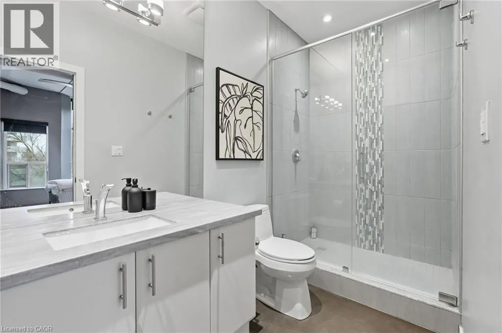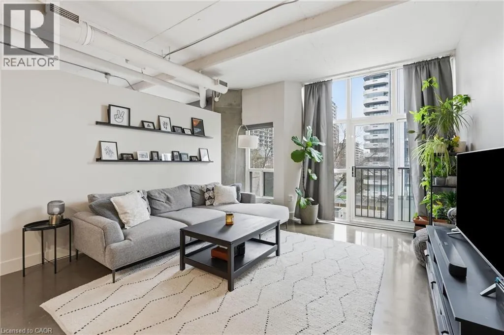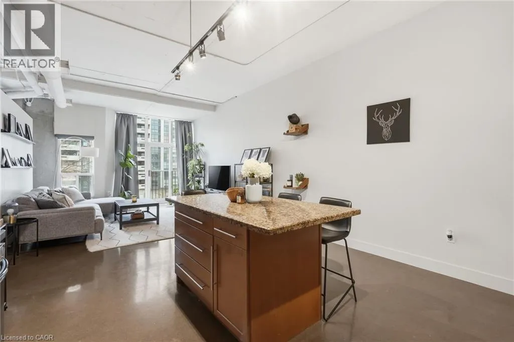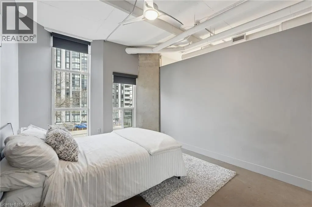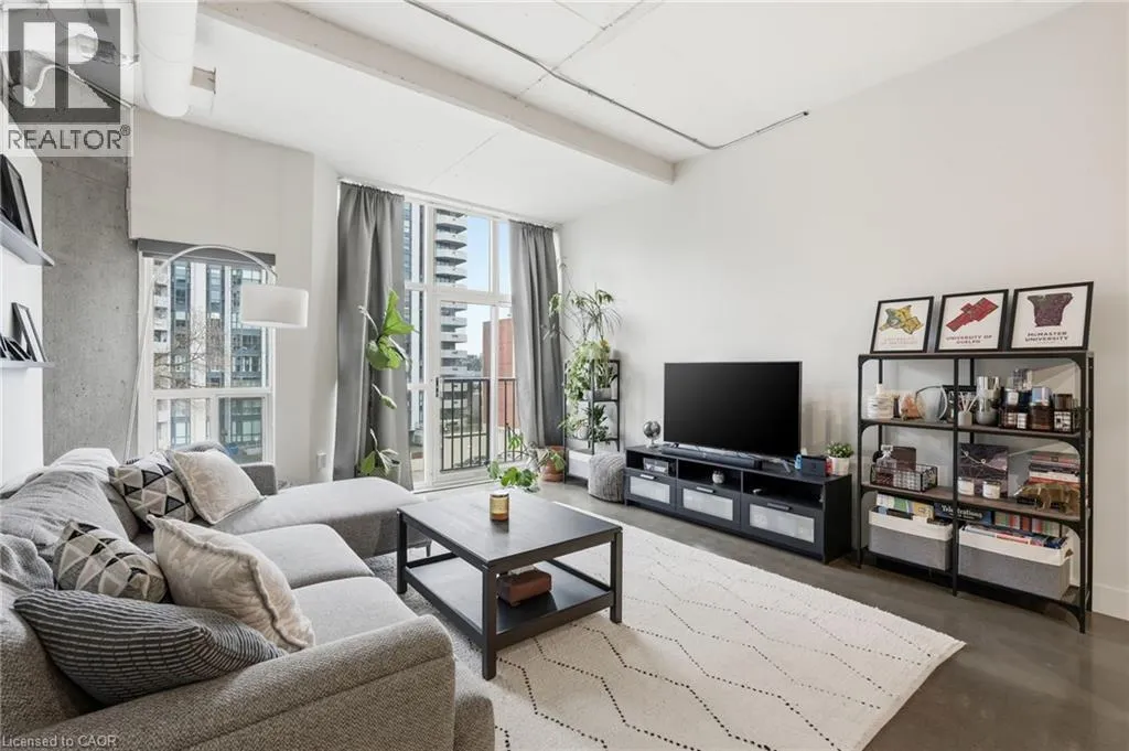 Jackson St W to Bay St S Welcome to Core Lofts, a unique conversion of the historic Bell Canada building in the heart of downtown Hamilton. This spacious Lincoln model offers approximately 1,100 square feet of loft-style living with 10+ ft ceilings, floor-to-ceiling windows and polished concrete floors that give the space its signature feel. Filled with great afternoon light from its west-facing exposure, the unit features a Juliet balcony and an open layout centred around a spacious kitchen with granite counters, newer appliances and an oversized island. Two well-sized bedrooms, updated bathrooms and in-suite laundry complete the space. Condo fees cover nearly everything, and a rented parking space is available for $200/month, with the option to assume. The building offers a rooftop patio with BBQs and city views, along with a gym and party room â all just steps to transit, the GO station, restaurants and everything downtown has to offer. Donât be TOO LATE*! *REG TM. RSA. (id:27476)