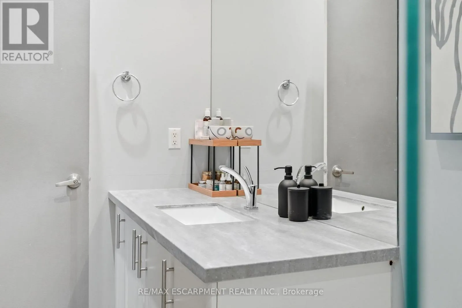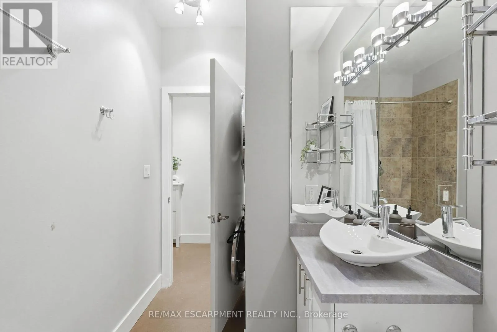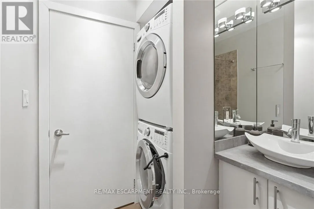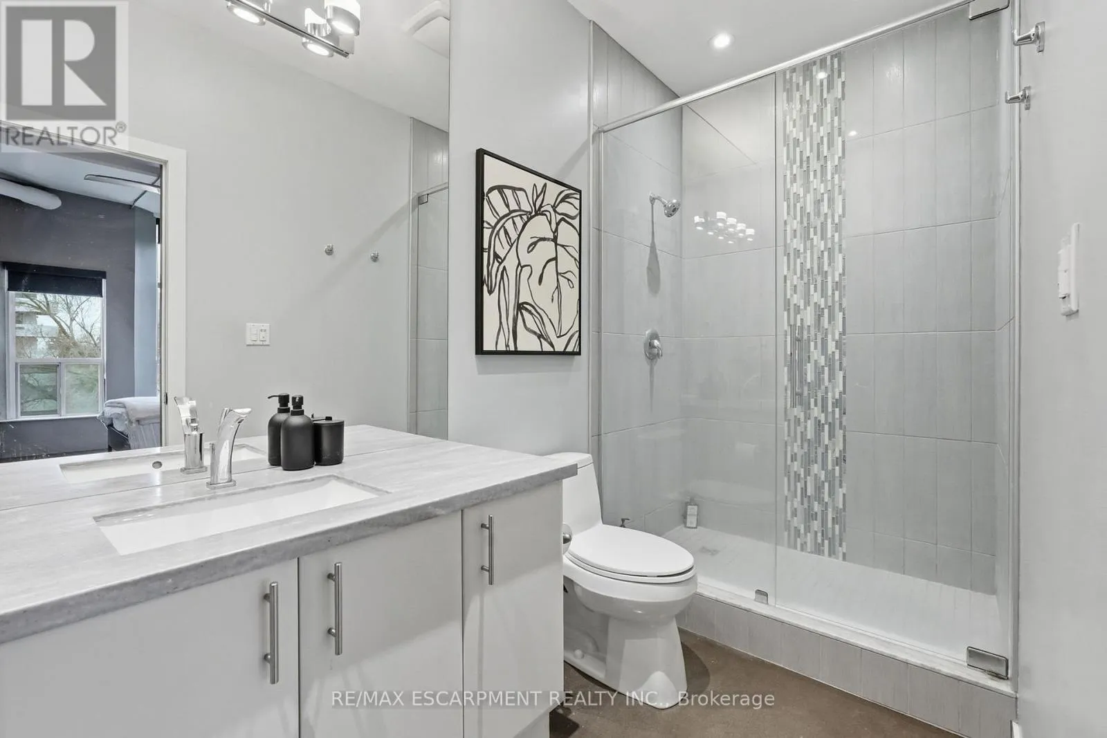 Cross Streets: JACKSON STREET W. ** Directions: JACKSON STREET W TO BAY STREET S. Welcome to Core Lofts, a unique conversion of the historic Bell Canada building in the heart of downtown Hamilton. This spacious Lincoln model offers approximately 1,100 square feet of loft-style living with 10+ ft ceilings, floor-to-ceiling windows and polished concrete floors that give the space its signature feel. Filled with great afternoon light from its west-facing exposure, the unit features a Juliet balcony and an open layout centred around a spacious kitchen with granite counters, newer appliances and an oversized island. Two well-sized bedrooms, updated bathrooms and in-suite laundry complete the space. Condo fees cover nearly everything, and a rented parking space is available for $200/month, with the option to assume. The building offers a rooftop patio with BBQs and city views, along with a gym and party room - all just steps to transit, the GO station, restaurants and everything downtown has to offer. RSA. (id:27476)