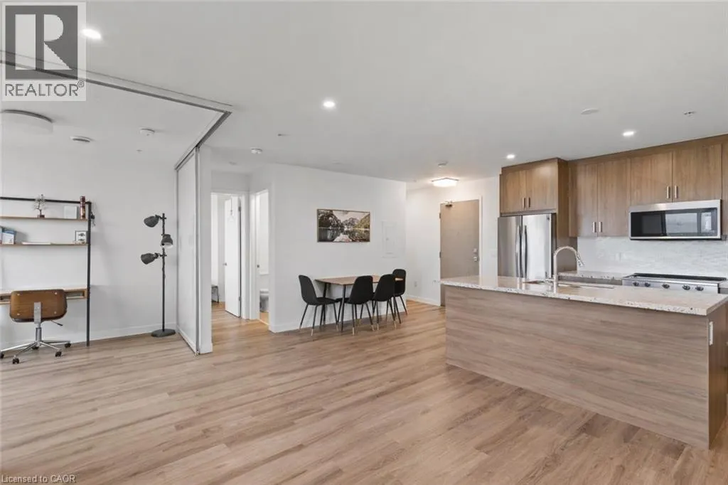 Modern 2-bedroom, 2-bathroom condo, ideally suited for professionals seeking comfort, convenience, and a quiet, secure living environment. Perfectly located near St. Josephâs Healthcare Hamilton, Hamilton General Hospital, and Juravinski Hospital, this condo is an excellent option for medical professionals or those working in the healthcare field. This bright and modern unit features oversized windows with beautiful city views, a contemporary kitchen with stone countertops, stainless steel appliances, and a large island with seatingâideal for both everyday living and entertaining. The spacious primary bedroom offers a walk-in closet and a private 3-piece ensuite, while the versatile second bedroom with frosted glass sliding doors is perfect as a home office or guest space. Enjoy the convenience of in-suite laundry, underground parking, and a storage locker. The building is quiet, well-maintained, offering amenities including a fitness centre, party room, common BBQ area, and visitor parking. Rent includes heat and water. Located in a peaceful pocket of Hamilton with quick access to Highway 403, McMaster University, and the GO Station, youâre also steps to the Escarpment Rail Trail and Corktown Park, and just minutes from the vibrant shops, cafés, and restaurants of James Street South and downtown. (id:27476)
