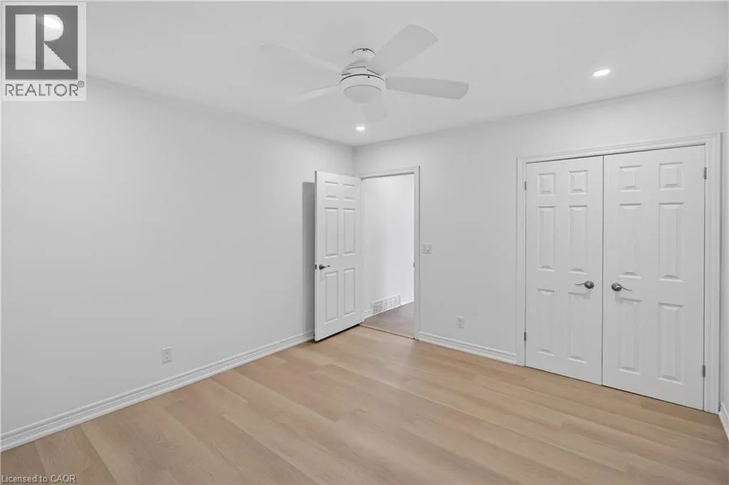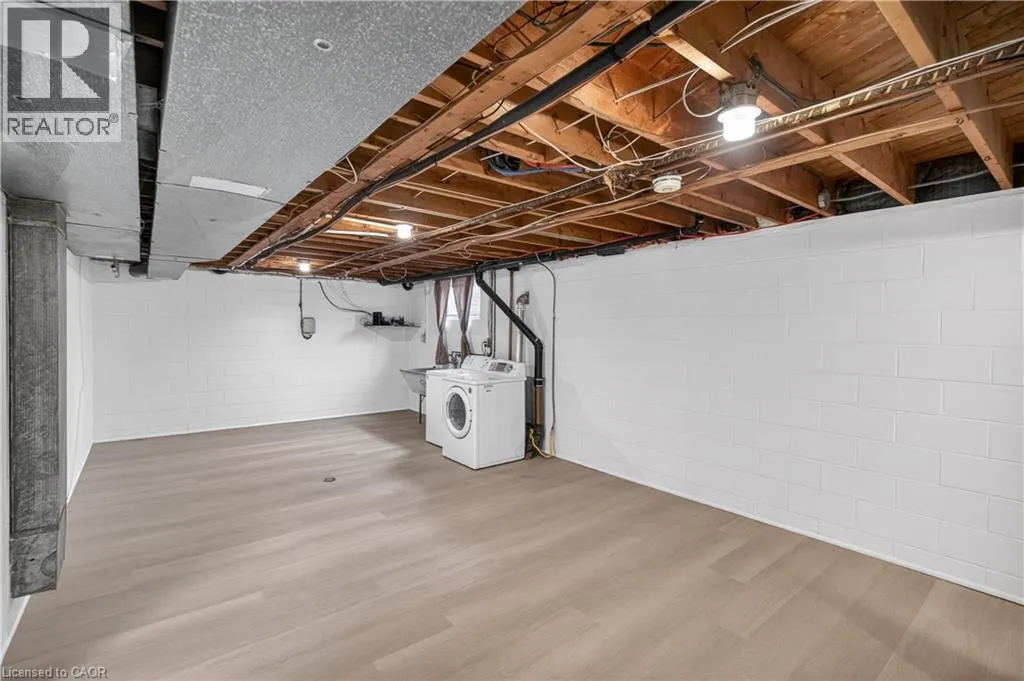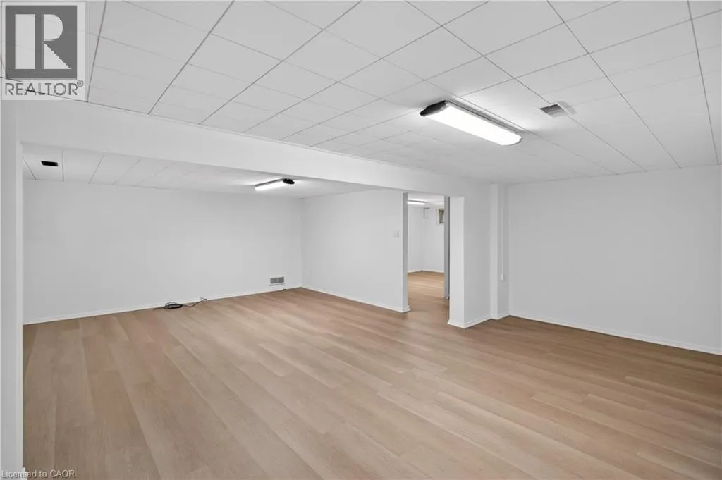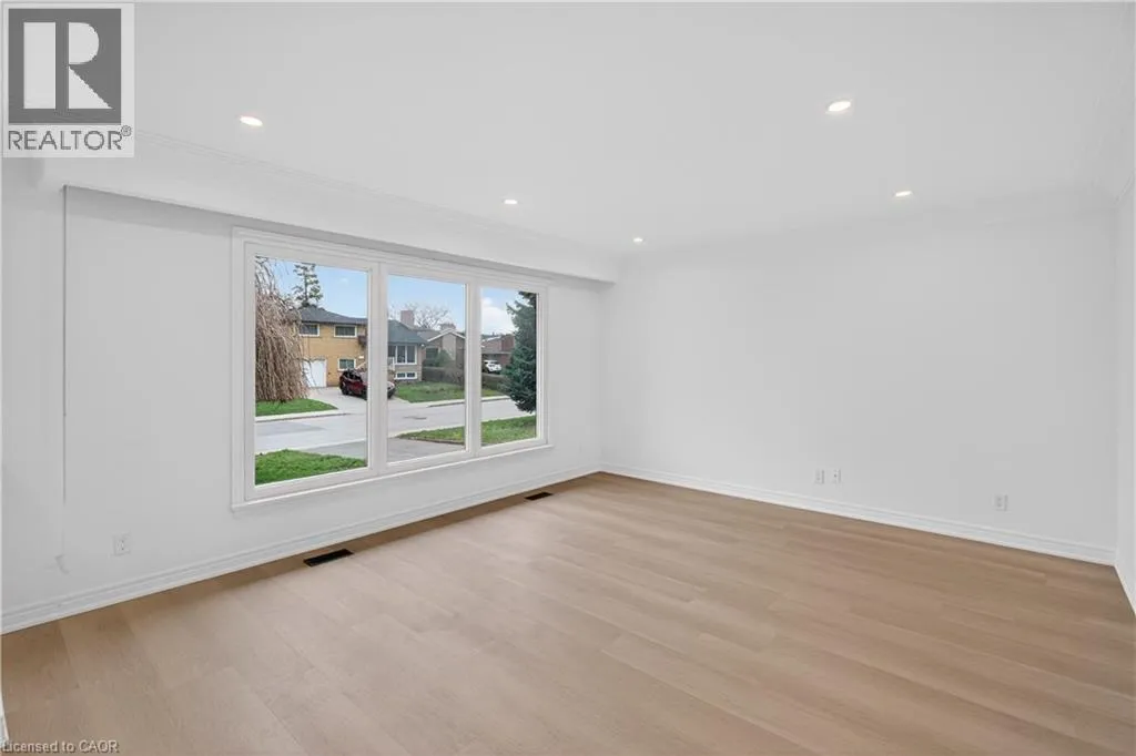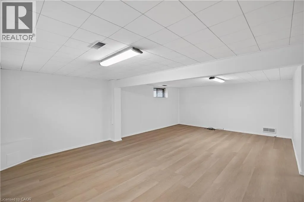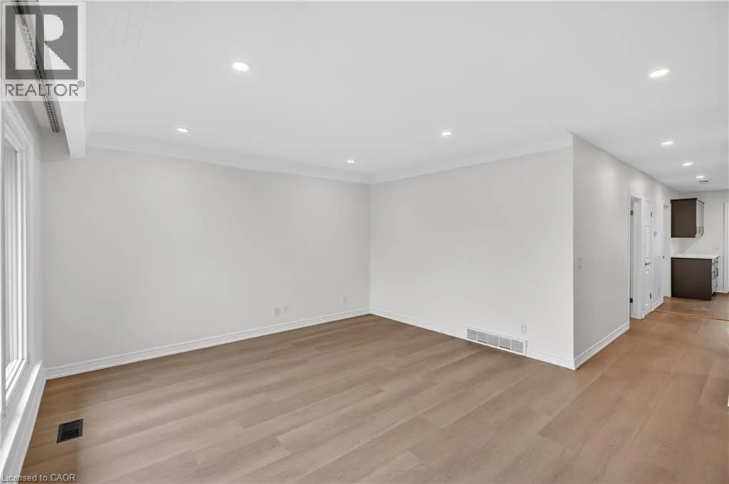 From Kenilworth S/Monterey, W on Monterey, S on Tuxedo S Nestled on a quiet cul-de-sac in the heart of Hamiltonâs sought-after Delta neighbourhood, this tastefully updated 2 bedroom, 2 bathroom bungalow offers comfort, convenience, and exceptional versatility. Featuring surfaced parking for 4 vehicles and a single garage with inside entry, this home delivers both function and ease from the moment you arrive. A covered front porch welcomes you into a spacious foyer complete with a convenient storage closet. The inviting living room is filled with natural light from an expansive front window and enhanced with pot lighting, creating a warm and airy atmosphere. The eat-in kitchen offers a charming dinette space, stainless steel appliances, and a skylight that floods the area with natural light. Two generously sized bedrooms feature oversized closets, while the recently renovated 5-piece bathroom is a standout - thoughtfully designed to be wheelchair accessible, complete with a glass shower, double vanity, and an oversized soaker tub. Main level laundry adds everyday convenience. The partially finished lower level expands your living space with a large recreation room, cold room, powder room, utility area, and a second laundry setup. A bonus side entrance provides direct access to both levels, offering excellent in-law or multi-generational living potential. Step outside to a private backyard retreat featuring a large concrete patio with veranda, a rear storage shed, gardens, and green space to enjoy. Additional updates include roof shingles (2021), recently installed flooring, upgraded lighting fixtures, fresh paint throughout & more. Located in the vibrant Delta community, enjoy close proximity to Gage Park, Ottawa Streetâs shops and restaurants, schools, transit, and quick highway access. A rare opportunity to own a turnkey bungalow in one of Hamiltonâs most established neighbourhoods. (id:27476)
