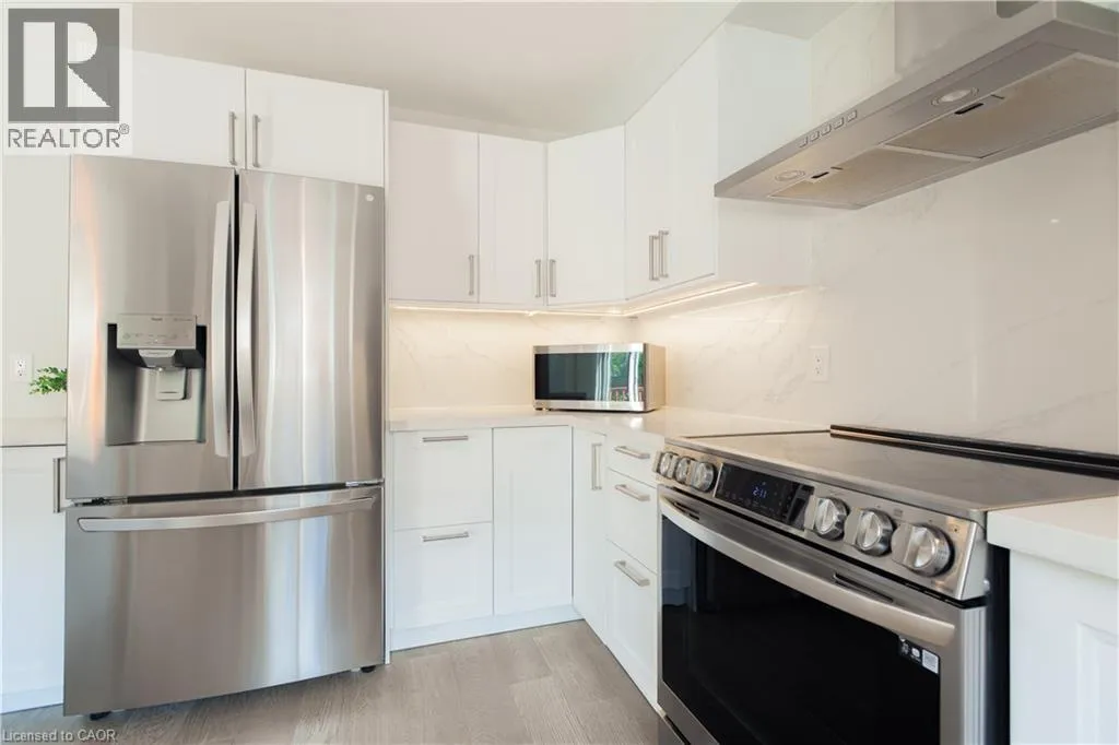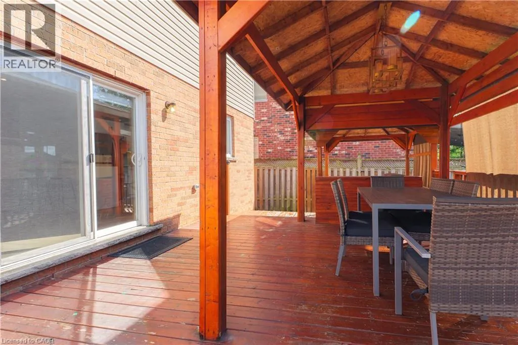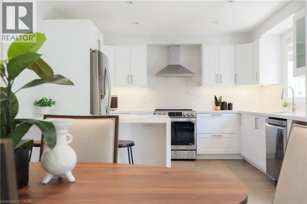 VERY END OF BENEDICT PL CUL-DE-SAC, OFF LOZENZO DRIVE. Welcome to your new home at 83 Benedict Placeâa stunning 4+1 bedroom, 3 bathroom detached house in one of Hamiltonâs most desirable neighbourhoods! This property offers the perfect blend of style and functionality with a fully renovated chefâs kitchen featuring quartz counters and backsplash, stainless steel appliances, and cathedral ceilings in the living room. Enjoy carpet-free living with modern hardwood flooring throughout the main and second floor. Youâll find 4 generously sized bedrooms upstairs including a primary suite with a contemporary ensuite bathroom, while the fully finished lower level provides an additional bedroom, large recreation space, and plenty of storageâperfect for an in-law setup, home office, or growing family. Step outside to your gorgeous backyard complete with a covered deck (2011), landscaped yard, garden, and shed. A 2-car garage with inside entry and a private double driveway offers ample parking. Recent updates include new roof shingles (2023) and renovated kitchen (2022). Situated at the end of a quiet cul-de-sac, this home is surrounded by parks, schools, Upper James shopping, and easy highway access to the Linc, making it a perfect fit for commuters and families alike. (id:27476)