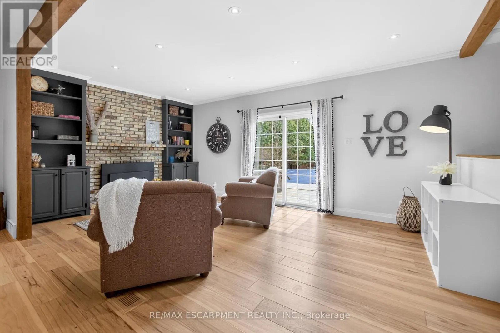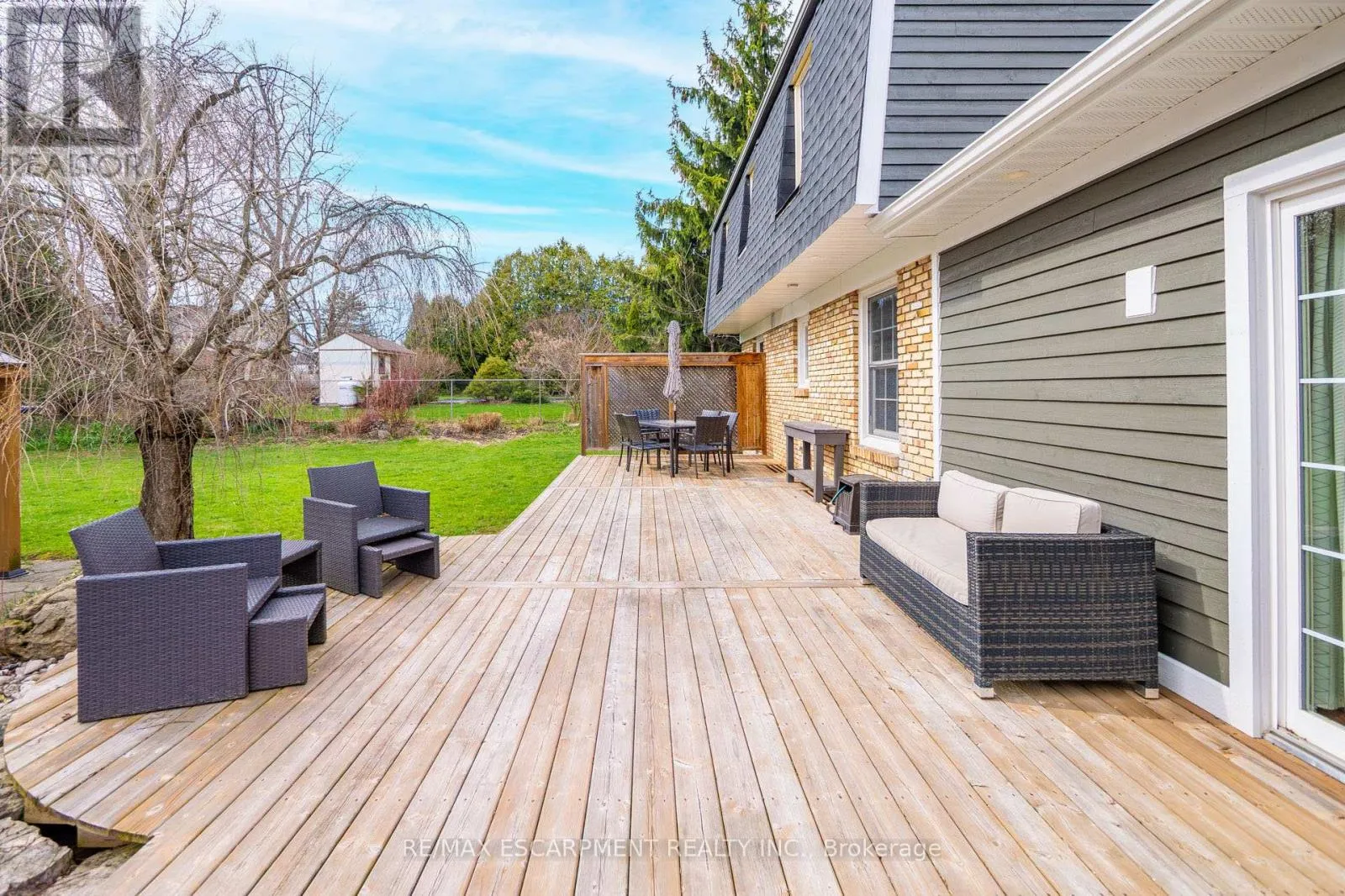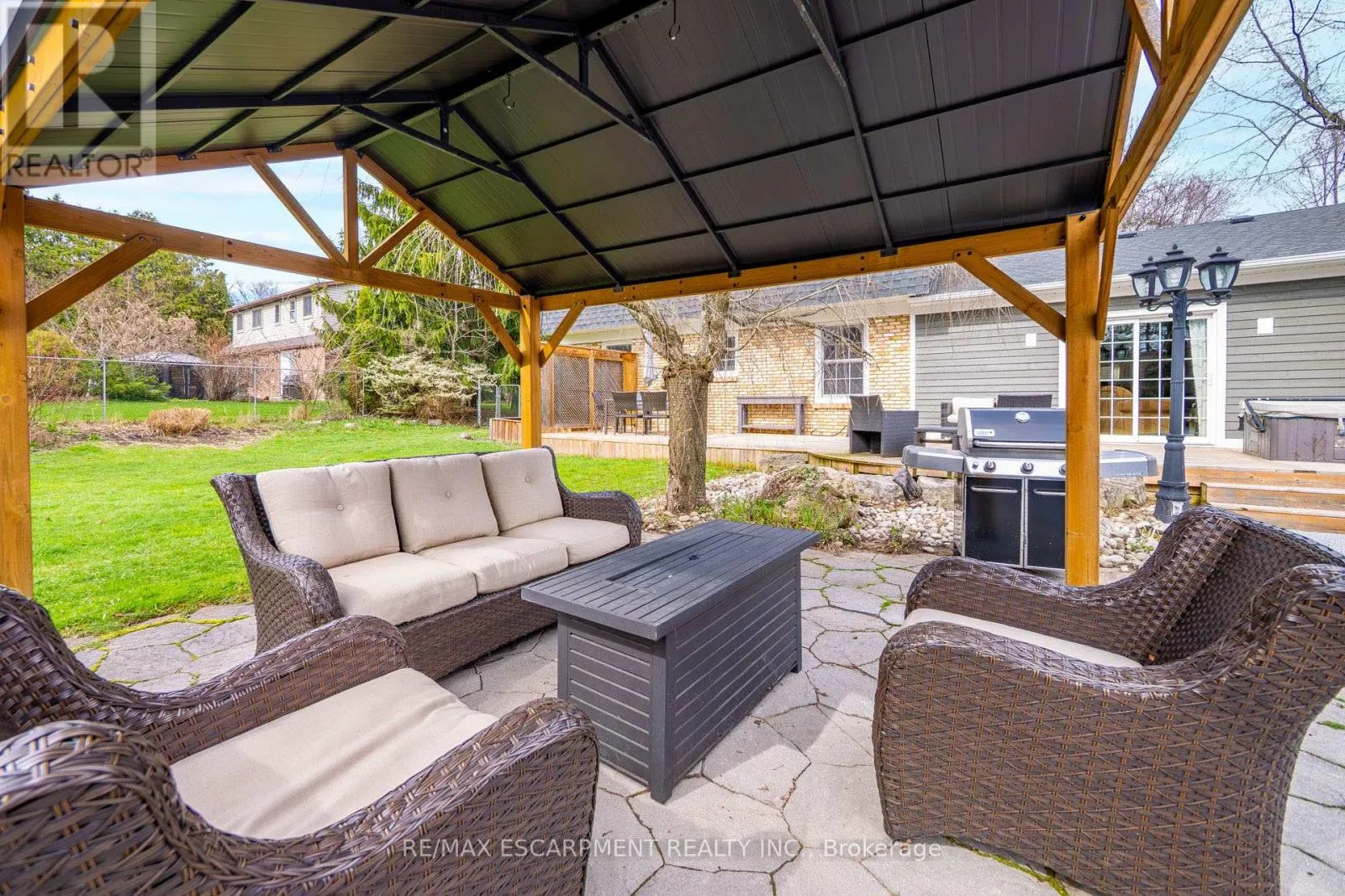 Wildan and Huntsman Gate Welcome to Wildan Estates, a sought-after enclave known for its exceptional sense of community, where you get a true neighbourhood feel, unlike anywhere else. This fully updated home, set on a 0.5-acre lot, is ideally located just steps to parks and scenic trails. From the moment you arrive, the curb appeal is undeniable with Cape Cod natural wood siding, along with updated eaves, fascia, soffits, and exterior pot lights that enhance both style and function. Inside, the main floor has been completely renovated to offer a bright, open-concept layout ideal for everyday living and entertaining. The custom kitchen and dining space features stunning cabinetry by The Willow Woodshop, complemented by elegant HanStone Calacatta Gold quartz countertops, a sprawling 11' island complimented by new high end appliances. Hardwood flooring flows seamlessly throughout the main level, accented by pot lights and a cozy gas fireplace overlooking your serene backyard. Upstairs, you'll find 4 bedrooms and two beautifully renovated bathrooms! Extra updates include updated stair runners and a refreshed mudroom with an updated window and door. Step outside to your fully fenced private backyard retreat, complete with a spacious wood deck, a Rubbercrete pool surround, and a concrete pool that has been recently professionally repainted, creating a fresh and inviting space for summer enjoyment. The new cedar gazebo and hot tub offer the perfect place to unwind or entertain. This move-in ready home offers the perfect blend of modern upgrades, functional living space, and outdoor enjoyment, an exceptional opportunity for buyers seeking comfort, style, and a lifestyle close to nature. Conveniently located between Hamilton, Guelph, Cambridge, & Milton. There are two large sheds (15'x10') and (8'x12') and an estimated cost for a future garage has been explored. (id:27476)