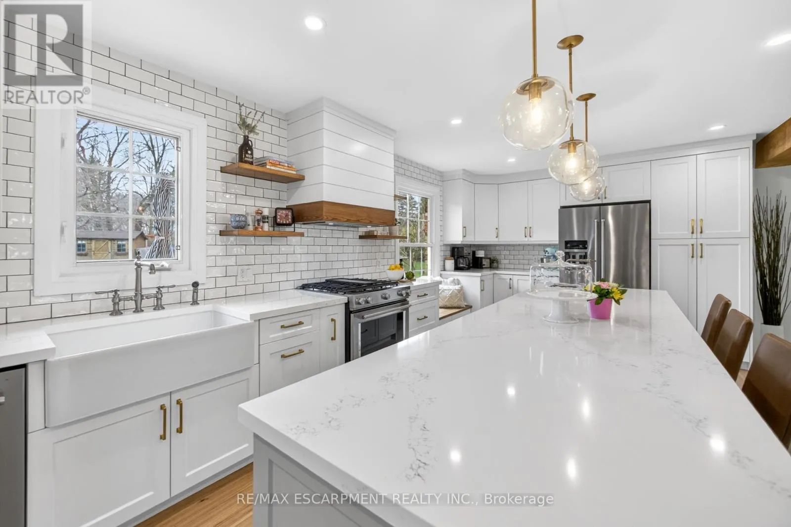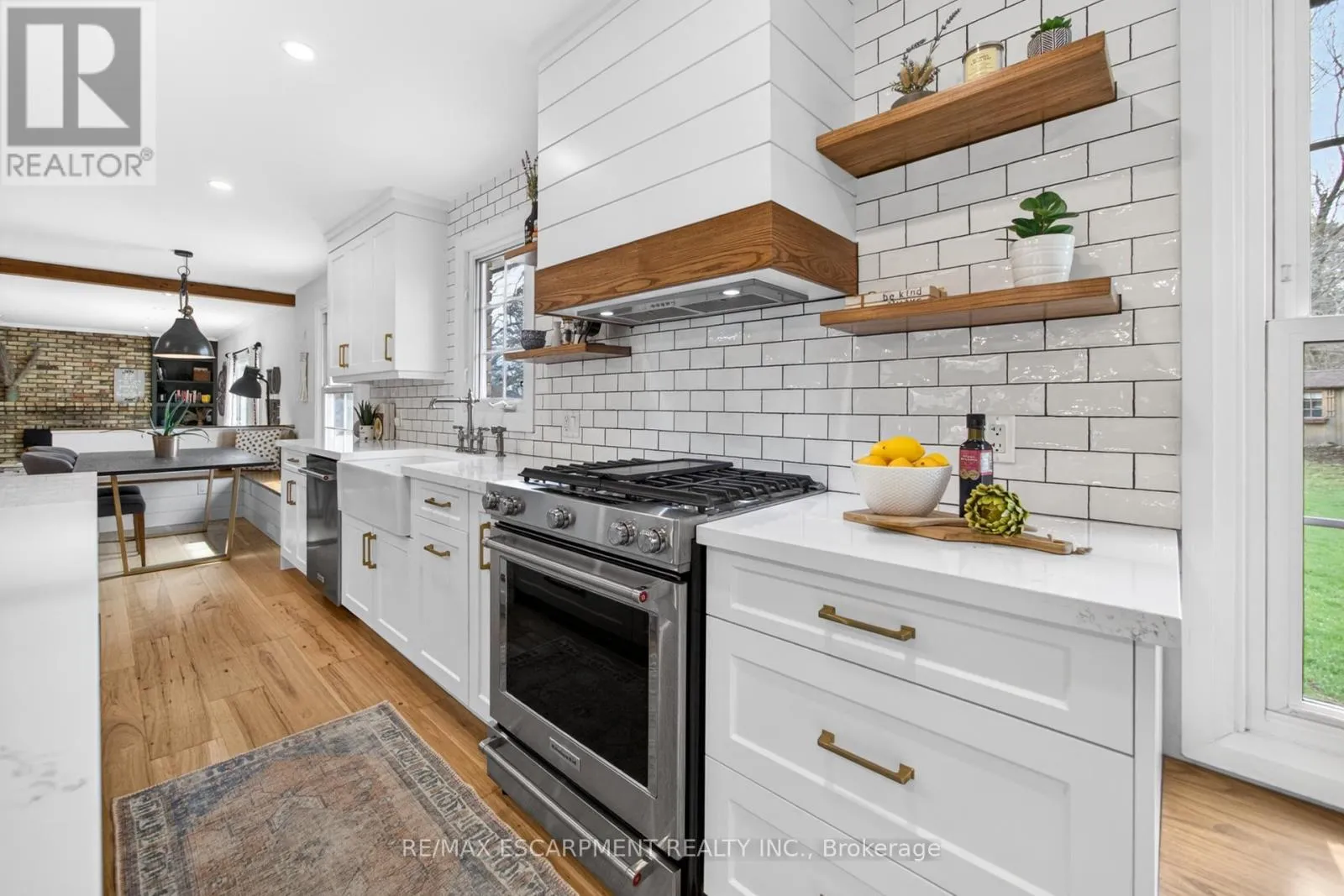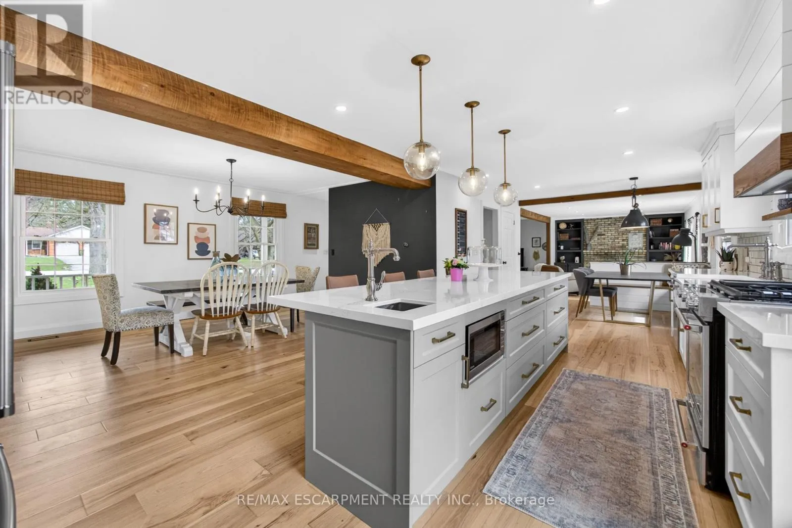 Wildan and Huntsman Gate Welcome to Wildan Estates, a sought-after enclave known for its exceptional sense of community, where you get a true neighbourhood feel, unlike anywhere else. This fully updated home, set on a 0.5-acre lot, is ideally located just steps to parks and scenic trails. From the moment you arrive, the curb appeal is undeniable with Cape Cod natural wood siding, along with updated eaves, fascia, soffits, and exterior pot lights that enhance both style and function. Inside, the main floor has been completely renovated to offer a bright, open-concept layout ideal for everyday living and entertaining. The custom kitchen and dining space features stunning cabinetry by The Willow Woodshop, complemented by elegant HanStone Calacatta Gold quartz countertops, a sprawling 11' island complimented by new high end appliances. Hardwood flooring flows seamlessly throughout the main level, accented by pot lights and a cozy gas fireplace overlooking your serene backyard. Upstairs, you'll find 4 bedrooms and two beautifully renovated bathrooms! Extra updates include updated stair runners and a refreshed mudroom with an updated window and door. Step outside to your fully fenced private backyard retreat, complete with a spacious wood deck, a Rubbercrete pool surround, and a concrete pool that has been recently professionally repainted, creating a fresh and inviting space for summer enjoyment. The new cedar gazebo and hot tub offer the perfect place to unwind or entertain. This move-in ready home offers the perfect blend of modern upgrades, functional living space, and outdoor enjoyment, an exceptional opportunity for buyers seeking comfort, style, and a lifestyle close to nature. Conveniently located between Hamilton, Guelph, Cambridge, & Milton. There are two large sheds (15'x10') and (8'x12') and an estimated cost for a future garage has been explored. (id:27476)