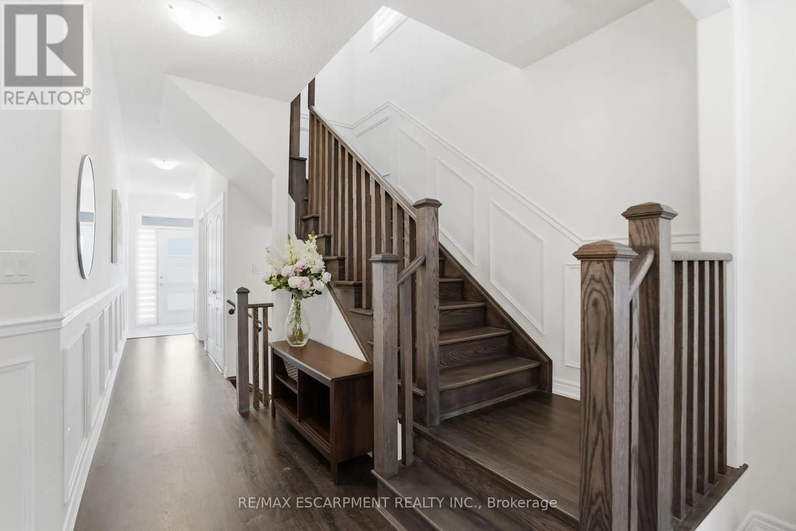Dundas St to Burke St to Great Falls Blvd Welcome to this exceptional semi-detached residence in the highly desirable community of Waterdown. Nestled in a family-friendly neighbourhood surrounded by scenic trails and parks, this thoughtfully designed home is than five years old and offers the perfect balance of contemporary elegance and everyday comfort. Boasting four spacious bedrooms and two and a half bathrooms, this home is ideal for modern family living. The open-concept main level is bright and inviting, featuring a generous great room that seamlessly connects to the dining area and stunning kitchen, perfect for both relaxed evenings and stylish entertaining. The modern kitchen showcases crisp white cabinetry, sleek quartz countertops and stainless-steel appliances, creating a timeless and sophisticated focal point. Upstairs, the sun-filled level offers four well-proportioned bedrooms, including a serene primary retreat designed for relaxation. The light-drenched primary suite features a spa-inspired ensuite complete with a walk-in glass shower, separate soaker tub and double sinks, combining luxury with everyday practicality. A beautifully appointed four-piece main bath serves the additional bedrooms with ease. Located in a thriving, community-oriented area close to parks, trails, schools and amenities, this is an outstanding opportunity to own a newer home in one of Waterdown's most sought-after neighbourhoods. RSA. (id:27476)