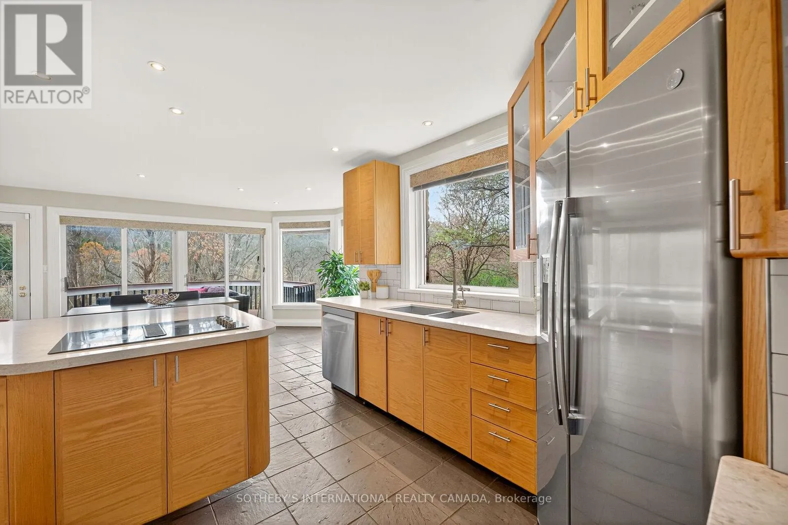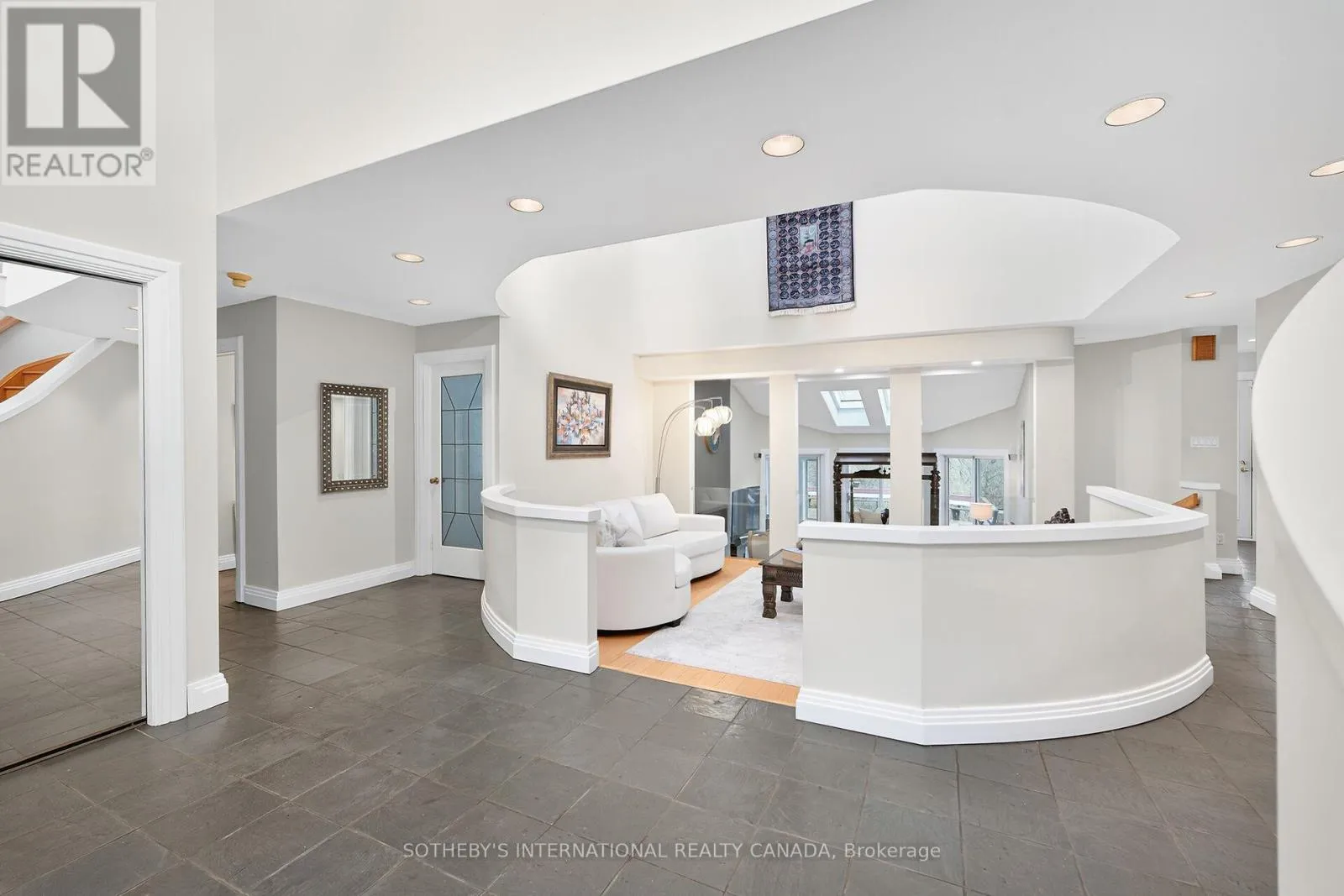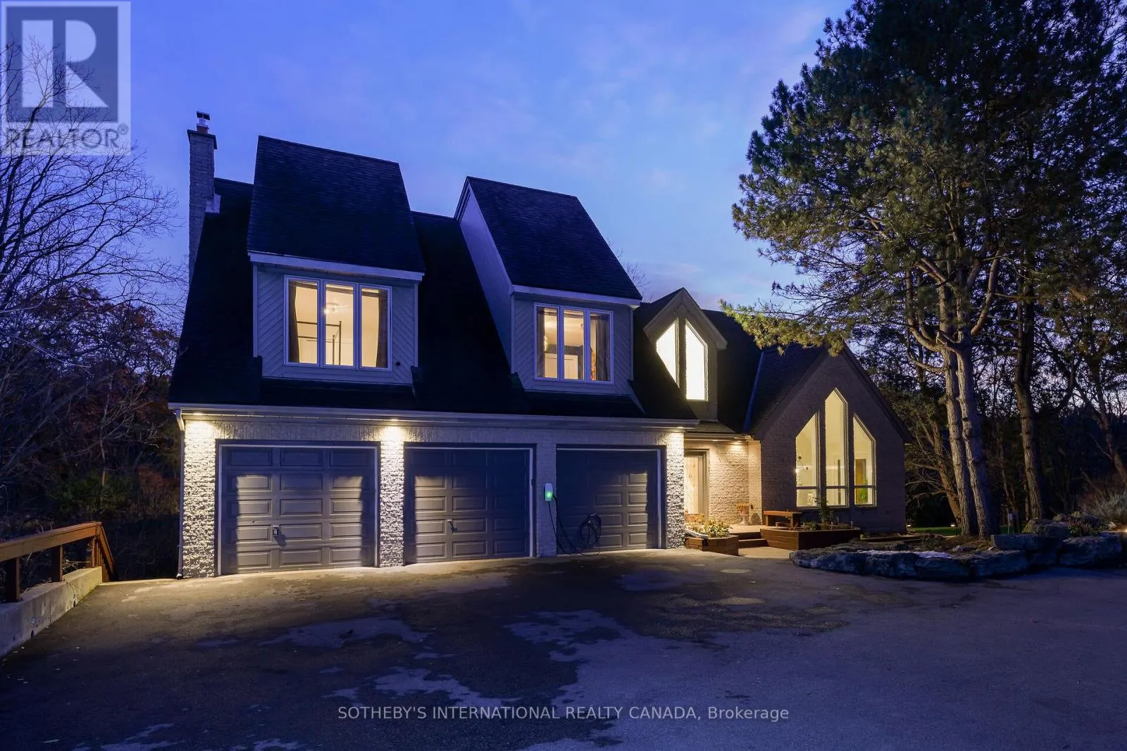 Cross Streets: Old Ancaster/Lower Lions. ** Directions: Wilson St. E to Old Dundas Road. Breathtaking Ravine Views Meet Striking Architectural Design Set on over two acres of secluded woodland, this extraordinary custom-built estate blends dramatic architecture with natural serenity. From the moment you enter, soaring 23-ft ceilings and numerous skylights flood the home with sunlight, highlighting sweeping open-concept spaces and elegant curved upper hallways. Picturesque windows capture stunning ravine and forest views, creating a peaceful backdrop throughout. The sunlit main level flows seamlessly into the spectacular indoor heated pool and hot tub-an all-season private oasis ideal for relaxation or entertaining. With more than 7,700 sq. ft. of finished living space, the home offers 5+1 bedrooms. 5 baths and inspired design at every turn. The Scandinavian-style kitchen pairs clean modern lines with tranquil treetop vistas, while a spacious office provides a refined work-from-home retreat. The upper levels continue the architectural drama, culminating in a unique third-floor loft that rises into the canopy-perfect as a studio, reading haven, or memorable bedroom surrounded by elevated woodland and ravine scenery. The lower level enhances the home's resort-like feel with direct pool access, a wet bar, a sixth bedroom, a full bath, and a walkout to the expansive grounds. Recent updates include refinished second-floor hardwood (2023), a new cistern (2022), and a freshly paved driveway (2022). A three-car garage, abundant parking, and a lot stretching from Old Dundas Road to Lower Lions Club Road complete this exceptional offering. A rare fusion of bold design, breathtaking ravine views, and exceptional privacy-yet only minutes from modern conveniences-this estate is a truly unparalleled retreat. (id:27476)