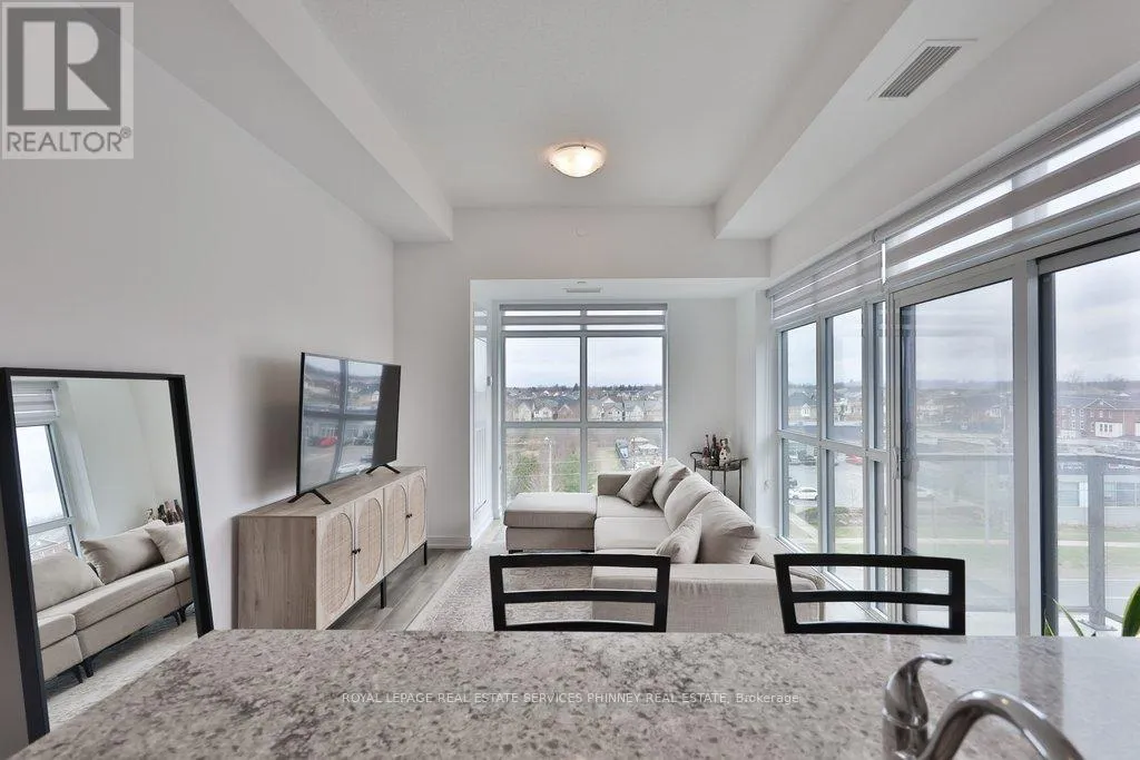 Dundas St E and Mallard Trail Welcome to Unit 506 at 470 Dundas Street East, a stunning 1 Bedroom + Den corner suite offering modern design, premium finishes, and exceptional privacy, in the Trend 3 building.This bright and airy unit features floor-to-ceiling windows that flood the space with natural light, enhancing the open-concept layout ideal for both everyday living and entertaining. As a corner unit, enjoy the added benefit of having neighbors on only oneside, providing a quieter and more private living experience.The contemporary kitchen is beautifully upgraded with quartz countertops, sleek cabinetry, and stainless steel appliances,seamlessly flowing into the spacious living and dining areas. High-quality vinyl flooring runs throughout, adding both durability and style.Step out onto the large private balcony, perfect for morning coffee or unwinding at the end of the day.The versatile den offers an excellent space for a home office, guest area, or additional storage. The unit also includes the convenience of in-suite laundry.This property comes complete with an owned locker and a secure underground parking space, featuring advanced building security for added peace of mind.Located in a growing and vibrant community, this condo is just minutes from downtown Waterdown, Hamilton, and Burlington,offering easy access to shopping, dining, transit, and everyday amenities. Ideal for first-time buyers, professionals, or investors seeking a stylish, low-maintenance home with premium features.Don't miss this exceptional opportunity to own a beautifully upgraded suite at 470 Dundas Street East, UNIT #506. (id:27476)