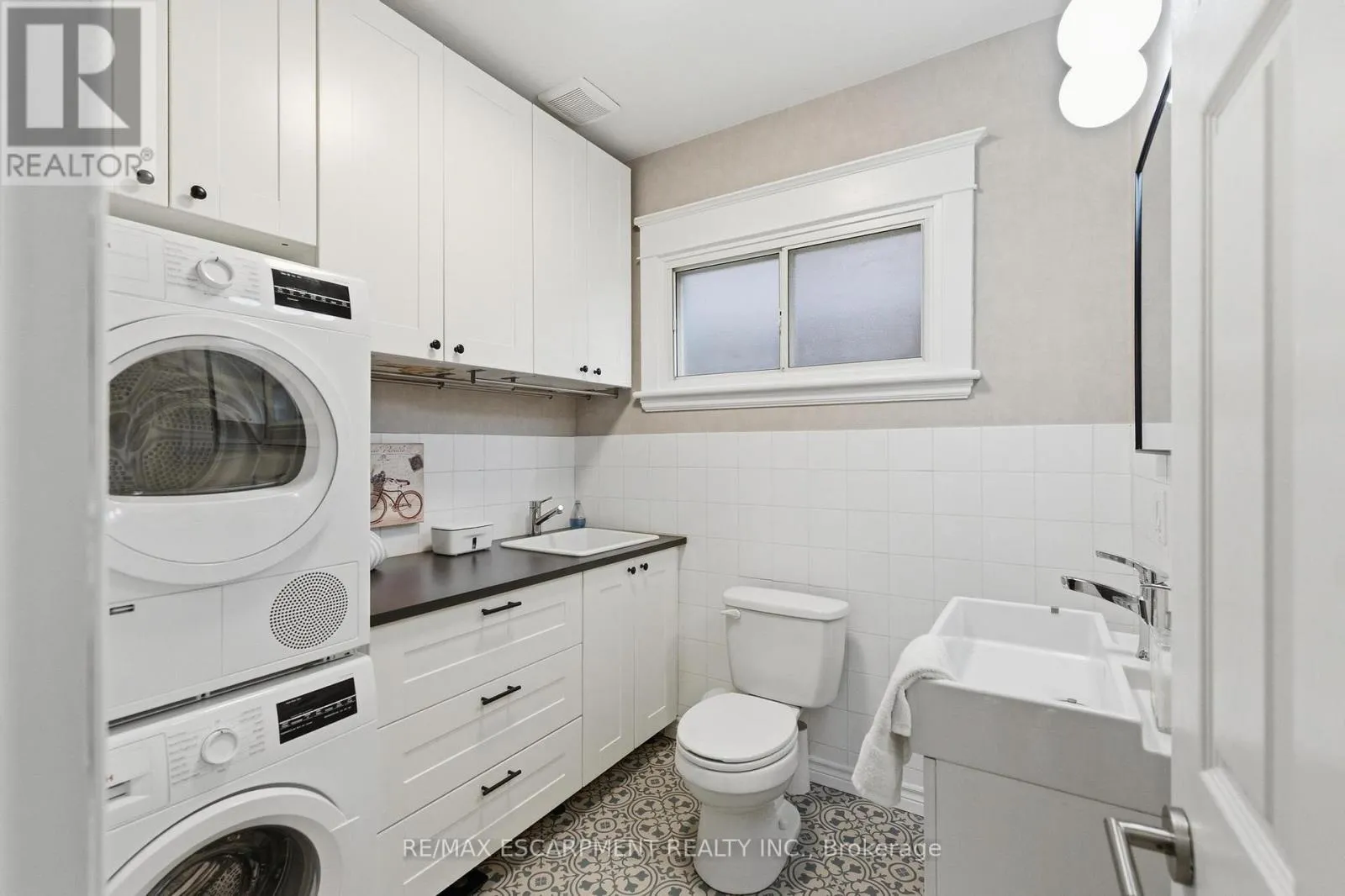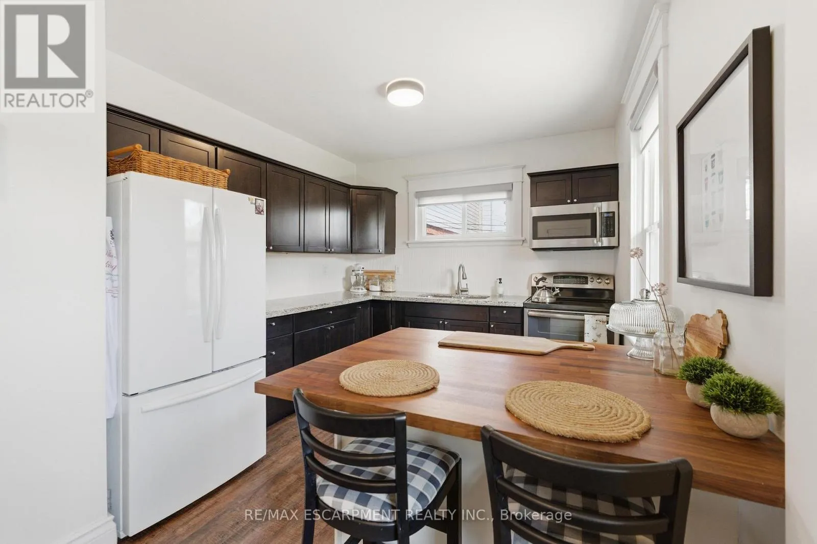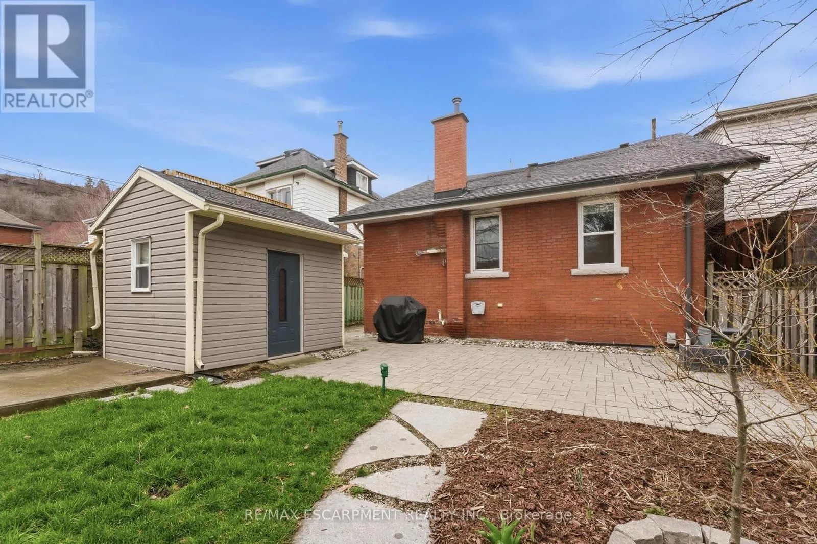 Cross Streets: Lawrence Road. ** Directions: Lawrence Rd to Kensington Ave S. Step into this beautifully updated character home, blending timeless charm with modern finishes, just steps to Gage Park and the shops, cafes, and restaurants of Ottawa Street. Enjoy escarpment views from your front porch. Original details include inlaid hardwood floors, mouldings, stained glass, and a decorative fireplace, complemented by a coffered dining room and cozy den with built-ins. The eat-in kitchen with a custom coffee bar overlooks a low-maintenance yard with perennial gardens and interlocking patio. Upstairs offers 3 bedrooms and a renovated 4-piece bath. Separate side entrance to a fully finished basement suite with kitchen, laundry, living space, and 4-piece bath (id:27476)