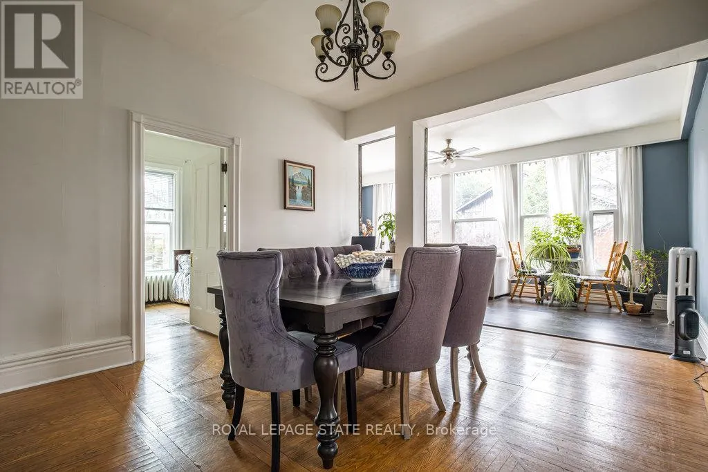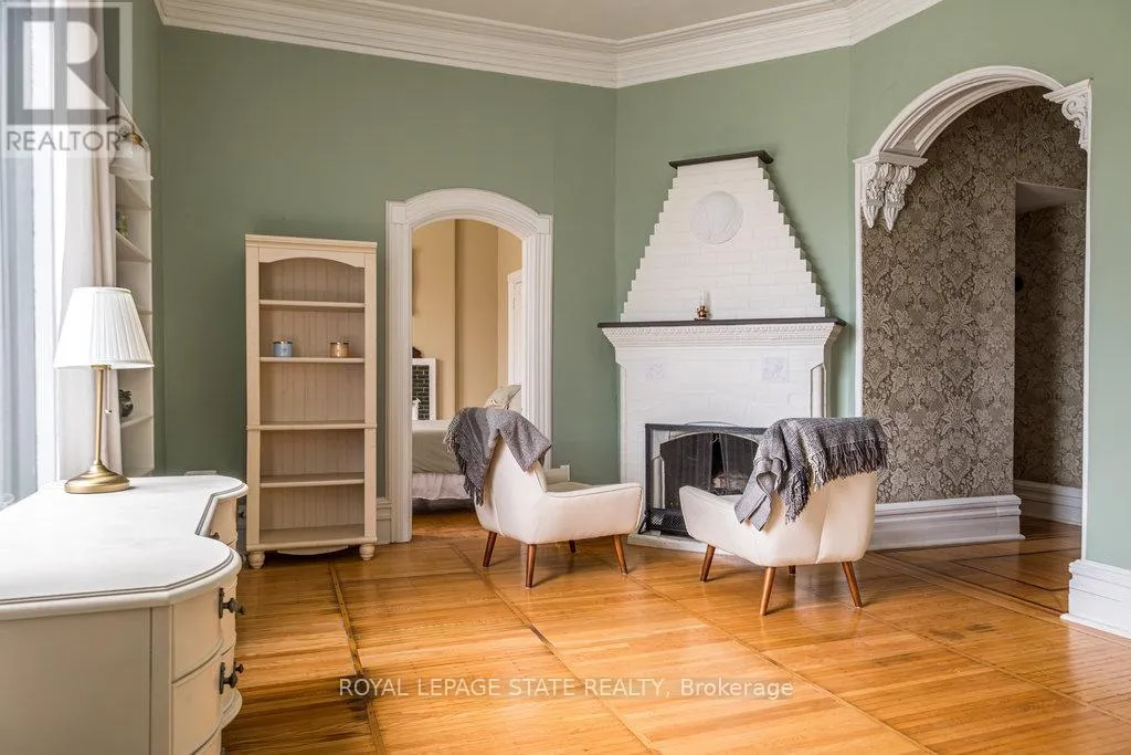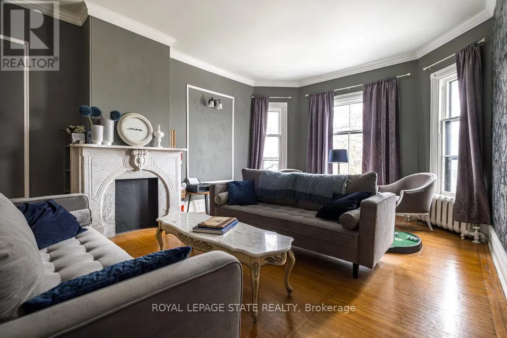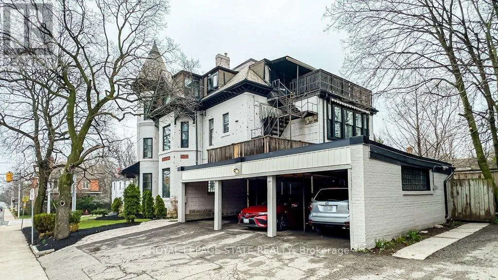 Cross Streets: Queen Street South and Aberdeen Avenue. ** Directions: Southeast corner of Queen Street South and Aberdeen Avenue. An extraordinary opportunity to own one of Hamilton's most iconic residences. Known as the "Queen St Castle," this circa 1881 Victorian masterpiece commands a prominent corner in the prestigious Durand neighbourhood, at the base of the escarpment. With its signature turret and timeless architectural detail, this historically significant home is recognized among the city's most admired properties. Rich in character and carefully preserved, the home offers remarkable flexibility. Currently grandfathered as a legal non-conforming triplex in 2014, it presents a rare chance to create a truly exceptional single-family estate, maintain a strong income-producing property, or live in one unit while generating revenue from the others. Inside, original charm blends with scale and potential-featuring soaring ceilings, intricate period details, and six fireplaces, including a wood-burning fireplace on the main level. Each space reflects the craftsmanship and elegance of a bygone era, ready to be elevated further. Outside, the property continues to impress with a fully fenced yard offering privacy and space to entertain, along with a rare triple-car covered carport and an additional driveway off Aberdeen for parking for up to seven vehicles. Set in one of Hamilton's most sought-after neighbourhoods, you are just steps to Locke Street's boutiques and dining, and within walking distance to Augusta, James, and Hess Village. Nature meets city living with immediate access to the escarpment and Bruce Trail, while nearby hospitals, McMaster University, Mohawk College, and GO stations ensure unmatched convenience. Recent updates include a new boiler 2026), carport roof (2023), chimney cap (2024), soffit and fascia (2020 & 2024), one flat roof (2025) a new porch (steps and railings, and interior paint (2024). A rare offering of architectural significance, income potential, and lifestyle that must be seen to be fully appreciated! (id:27476)
