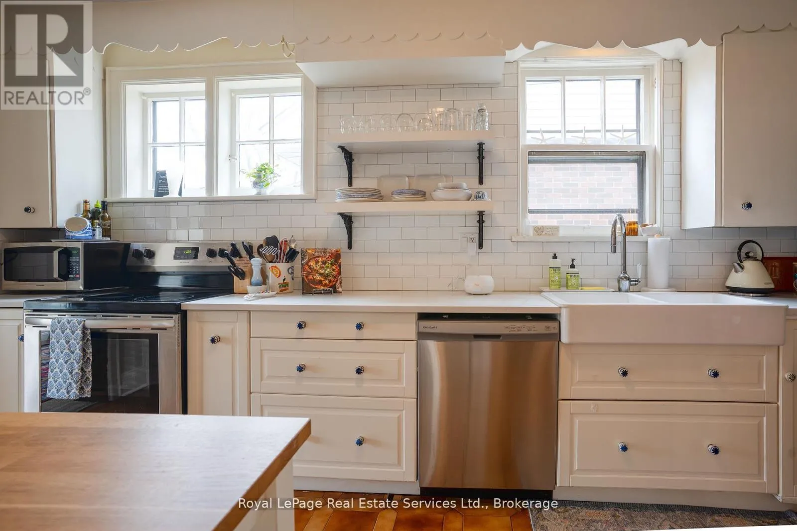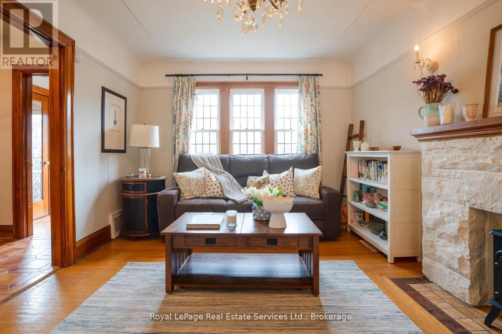 Cross Streets: Central Avenue. ** Directions: King St to Edgemont St S. Beautiful, spacious, 1783 square foot character-filled home on one of the area's most sought-after streets in highly desirable Delta neighbourhood, within walking distance to Gage Park, schools, shops, and restaurants. Separate front vestibule with spacious closet leads to lovely front hall, with beautiful wood staircase and original stained glass, leading into separate living and dining room and spacious, light-filled, cathedral ceiling family room and charming, updated kitchen including quartz countertops and stainless steel appliances. Three generously sized bedrooms with spacious closets on second floor along with full bathroom and linen closet. Separate entrance leads to unfinished basement presenting great potential for in-law suite or income opportunity. The unfinished basement includes laundry, two piece rough in and is ready for your finishing touches. The home is filled with charm, original features and tasteful updates and is ready for new family to make it their own. (id:27476)