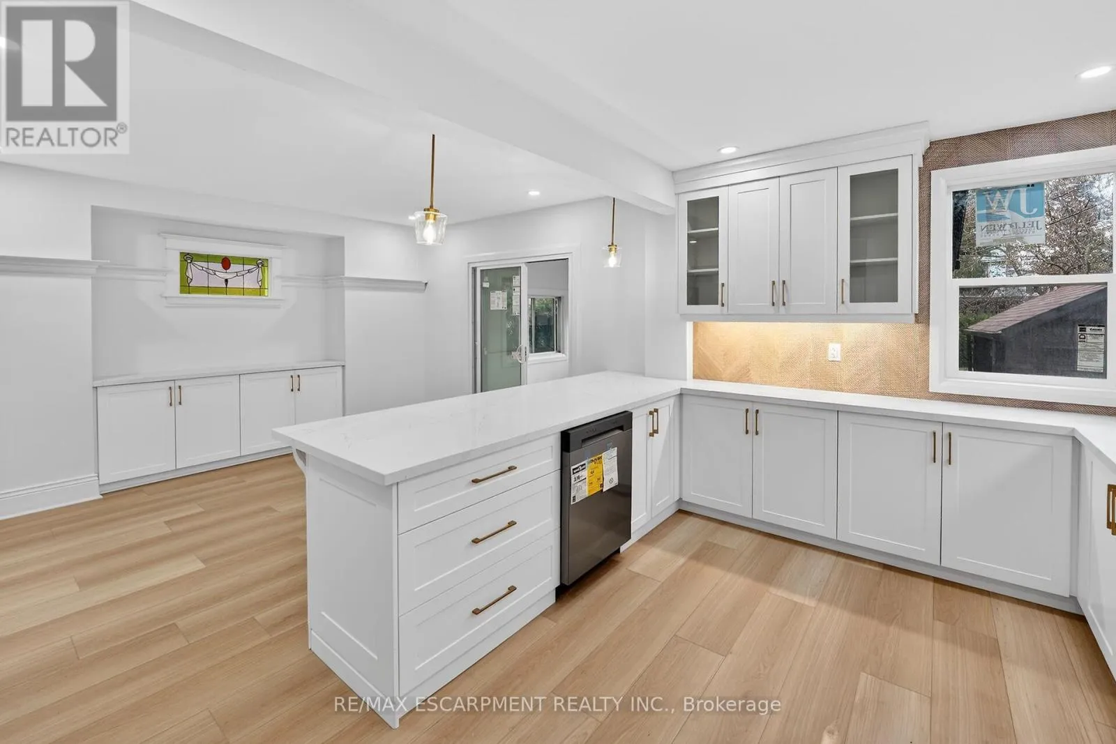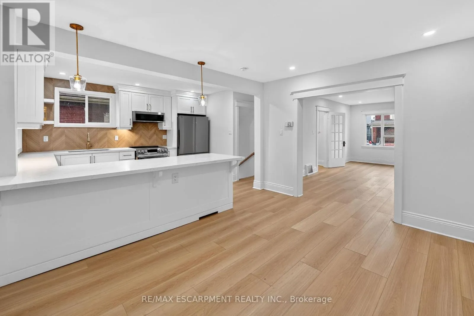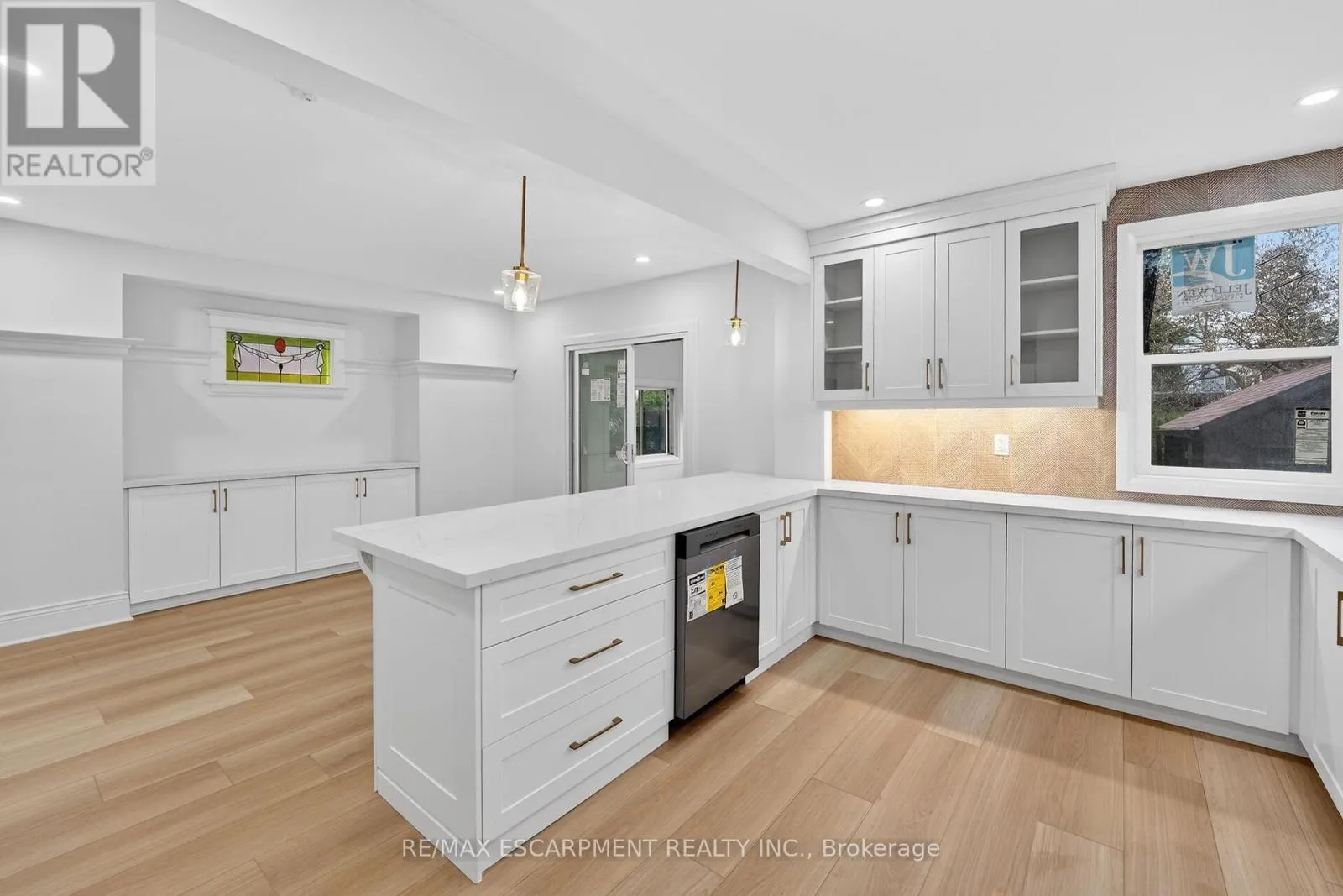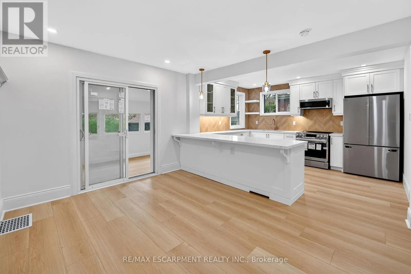 Cross Streets: Between King St E and Main St E. ** Directions: Between Maple Av and Central Av. Welcome to 101 Houghton Avenue South! Located in a sought-after, family-friendly neighbourhood, this beautifully maintained home is just stepsfrom A.M. Cunningham Elementary School and a short stroll to Gage Park and the shops, restaurants, and boutiques along Ottawa Street North.Convenient access to transit, the mountain, and the QEW. Extensively renovated with quality craftsmanship, this move-in ready home offersnearly 2,000 sq ft of finished living space. The main level features a new front porch, enclosed entry with leaded glass windows, spacious foyer,and a bright open living room with wide-plank flooring, pot lighting, large picture window, and shiplap feature wall with linear fireplace. Thedining room includes built-in cabinetry, stained glass window, and patio doors to a fully finished four-season sunroom. The stunning openconcept kitchen features modern cabinetry, quartz counters, ceramic backsplash, peninsula with seating, and stainless steel appliances. Upstairsoffers two spacious bedrooms and a 4-piece bath with convenient laundry. The finished lower level includes a rec room, bedroom, and 3-piecebath-ideal for guests or extended family. Private side drive leads to a detached garage with hydro and auto opener. The rear yard is private andsurrounded by mature greenery. Updates include: flooring, trim, pot lights, fresh paint, electrical, plumbing, vinyl siding (house & garage),appliances, furnace, central air, 100-amp breakers, and professionally waterproofed basement with sump. Stylish, updated, and perfectly located -move in and enjoy. (id:27476)