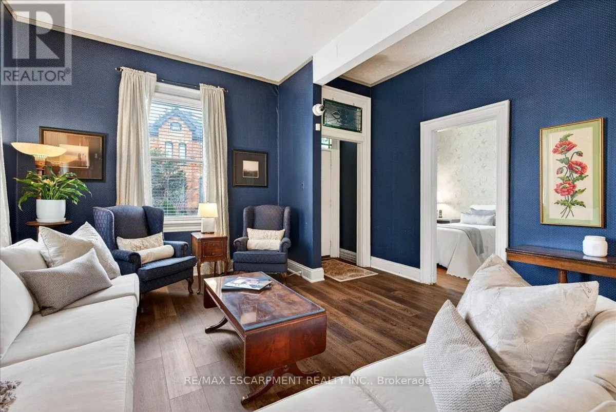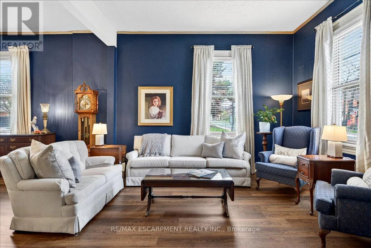 Cross Streets: Queen/Bold. ** Directions: Queen and Bold. Welcome to this charming all-brick bungalow in the heart of Durand! Proudly owned by the same family for nearly 50 years, this lovingly maintained home offers warmth, character, and thoughtful updates throughout. Featuring 2 bedrooms and a large main floor with vaulted ceilings. Recent updates within the last 10 years include the roof, eaves, fascia, pot lights, mudroom addition, and electrical. Furnace and A/C were replaced in 2019 (seller to pay out rental contract on closing). The beautifully landscaped gardens and private rear yard provide a peaceful outdoor retreat. Street parking permit applications are available. Motivated seller-don't miss this opportunity to own a special home in one of Hamilton's most sought-after neighbourhoods! (id:27476)
