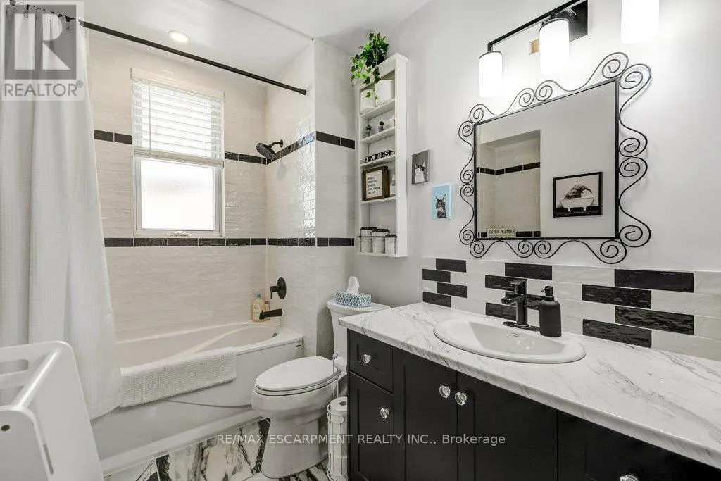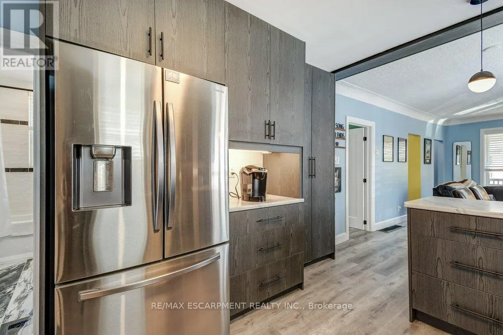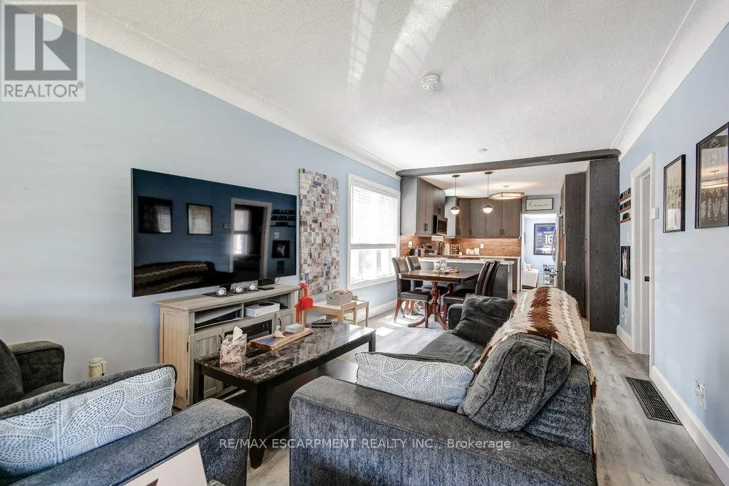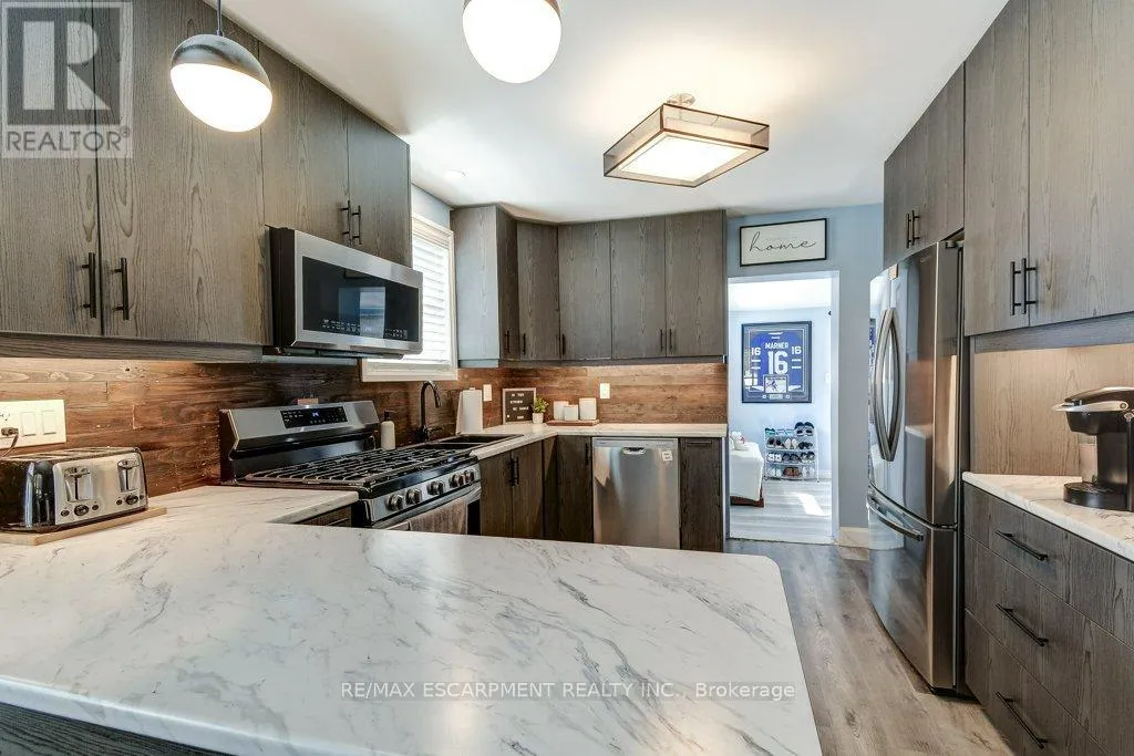 Cross Streets: Concession Street. ** Directions: Concession Street to East 15th. Excellent choice for first time home buyers and downsizers! This 1 1/2 storey home feels cute and cozy but somehow also spacious and open all at the same time. The welcoming front porch will become your favourite place to relax on a summer afternoon while enjoying the beautiful weather and community atmosphere. Featuring an open-concept living room, dining room and kitchen. The kitchen is modern with a window over a double sink, coffee nook, ample cupboard and counter space plus an ice-making fridge, gas stove, dishwasher and built-in microwave. The convenient main floor bedroom is accented with an exposed brick wall. Main level 4 piece renovated bath. The bonus back room has a sliding glass door to a beautiful deck (built in 2022) and backyard for summer bbq's and fun family time. The back room is a versatile space that can be used as a family room or home office with tons of natural light. Upstairs, you will find an impressive finished loft currently used as a bedroom and children's playroom. Most of the renovations were completed between 2021 - 2023: kitchen, bathroom, finished loft, appliances, furnace, air conditioner and roof. This home is conveniently located near several amenities within walking distance: popular Concession Street, Sam Lawrence Park, Inch Park Arena and Outdoor Pool and the beautiful escarpment with a spectacular view of the city. Exceptional location for public transportation. For medical professionals: convenient proximity to all of Hamilton's hospitals, with only a few minutes to travel to Juravinski Hospital/Cancer Centre, General Hospital, St.Joseph's Hospital. (id:27476)