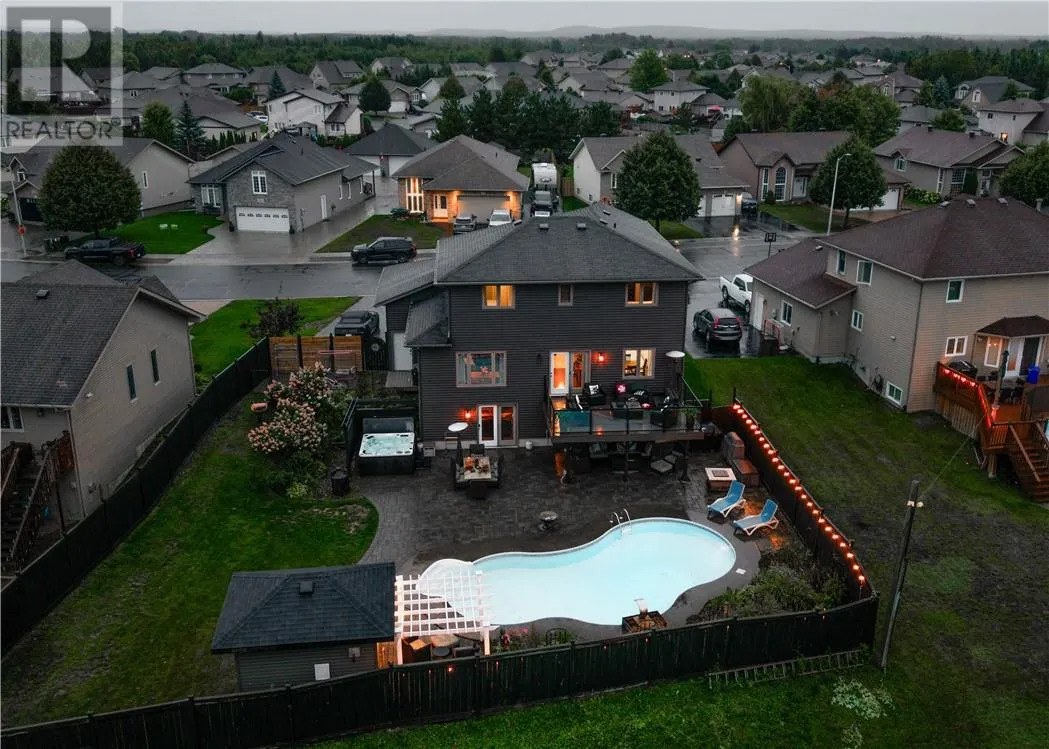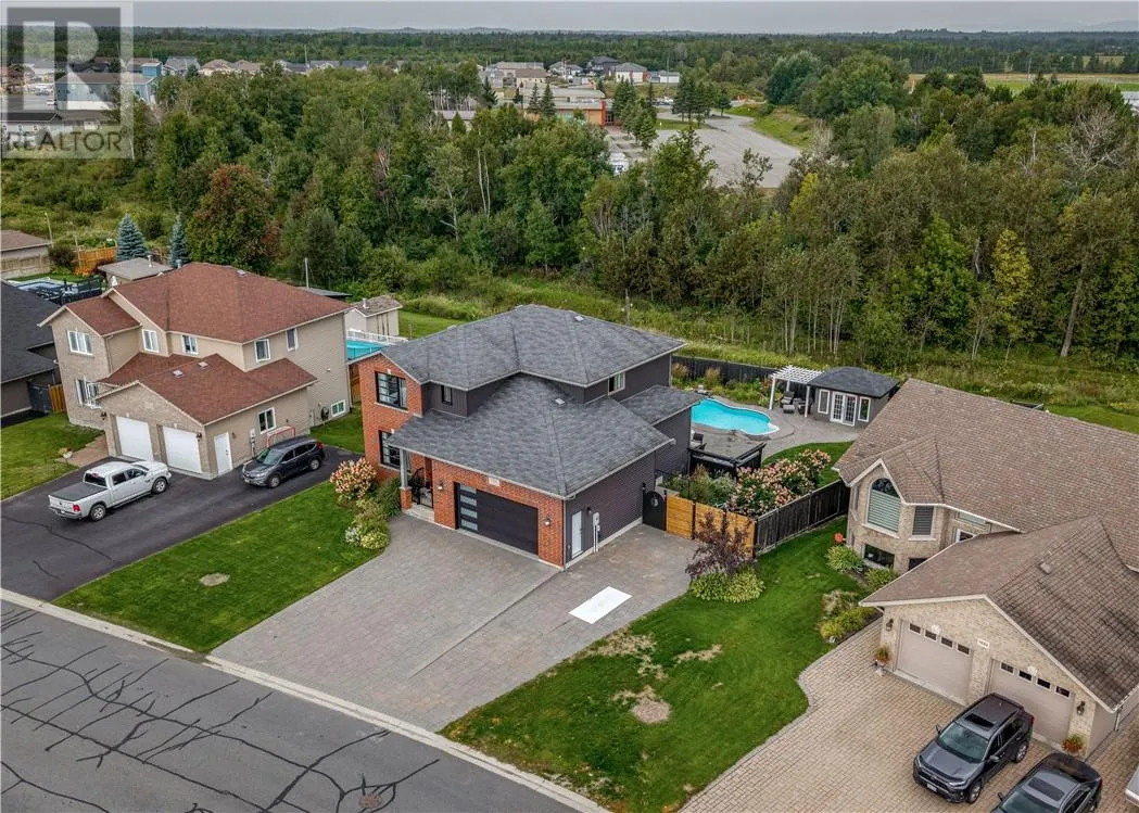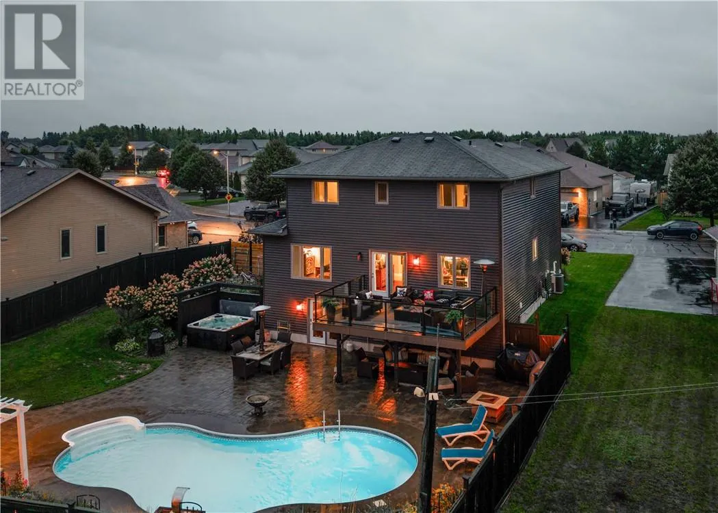 Welcome to 1528 Jeanne DâArc in Hanmer, a stunning family home that backs onto greenspace. This home blends comfort, style, and functionality in one of the valleyâs most sought-after and family-friendly neighborhoods. This spacious residence offers an inviting open-concept main floor with tall 9 ft ceilings, creating a bright and airy atmosphere thatâs perfect for everyday living and entertaining alike. The thoughtful design provides three separate living/rec rooms, giving your family endless options for relaxing, gathering, or creating dedicated spaces for hobbies and entertainment. The modern layout flows seamlessly from the living room into the dining area and gourmet-style kitchen, showcasing impeccable finishes throughout. Upstairs, youâll find 4 generously sized bedrooms, including a luxurious primary suite with a large ensuite bath and walk-in closet. The finished walkout basement expands your living space with a fifth bedroom, a versatile den/gym, and one of the homeâs multiple rec areasâperfect for guests, a home office, or fitness space. With 3 full bathrooms and 1 half bath, thereâs ample comfort and convenience for the whole family. Step outside to your very own private retreat: a heated inground pool, relaxing hot tub, and fully fenced backyard backing onto undeveloped land. The interlocked driveway offers ample parking, ensuring both beauty and practicality. Whether youâre entertaining, relaxing, or raising a family, this home truly checks all the boxes. Donât miss your chance to own this rare gem in Hanmer! (id:27476)