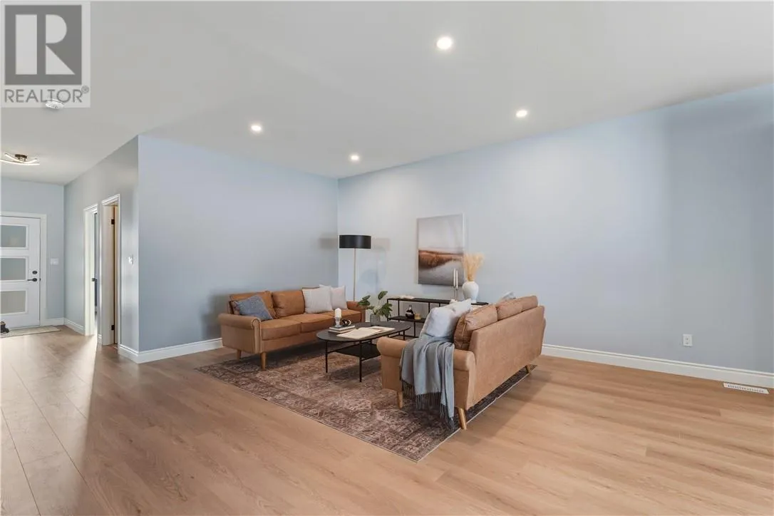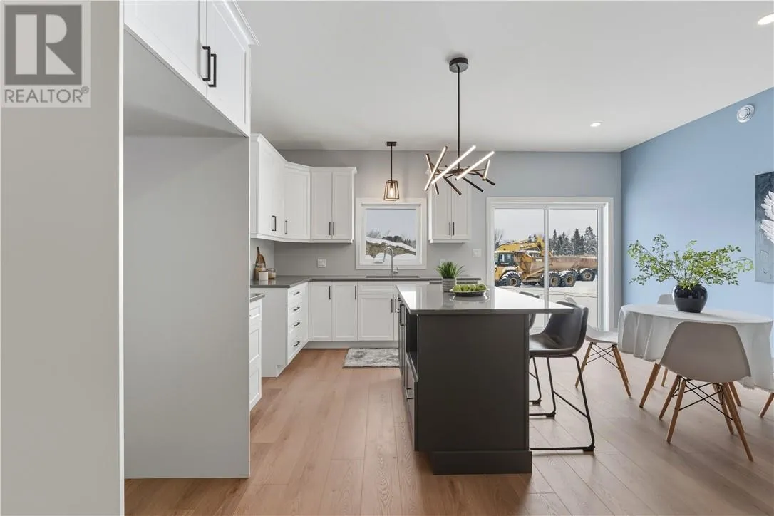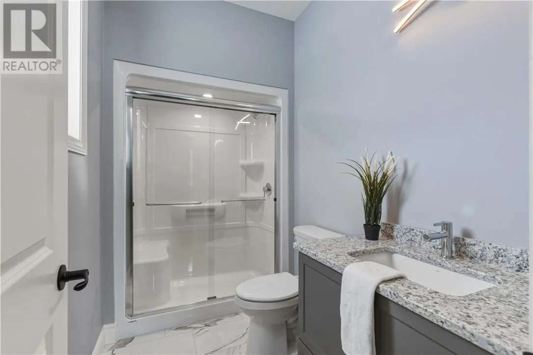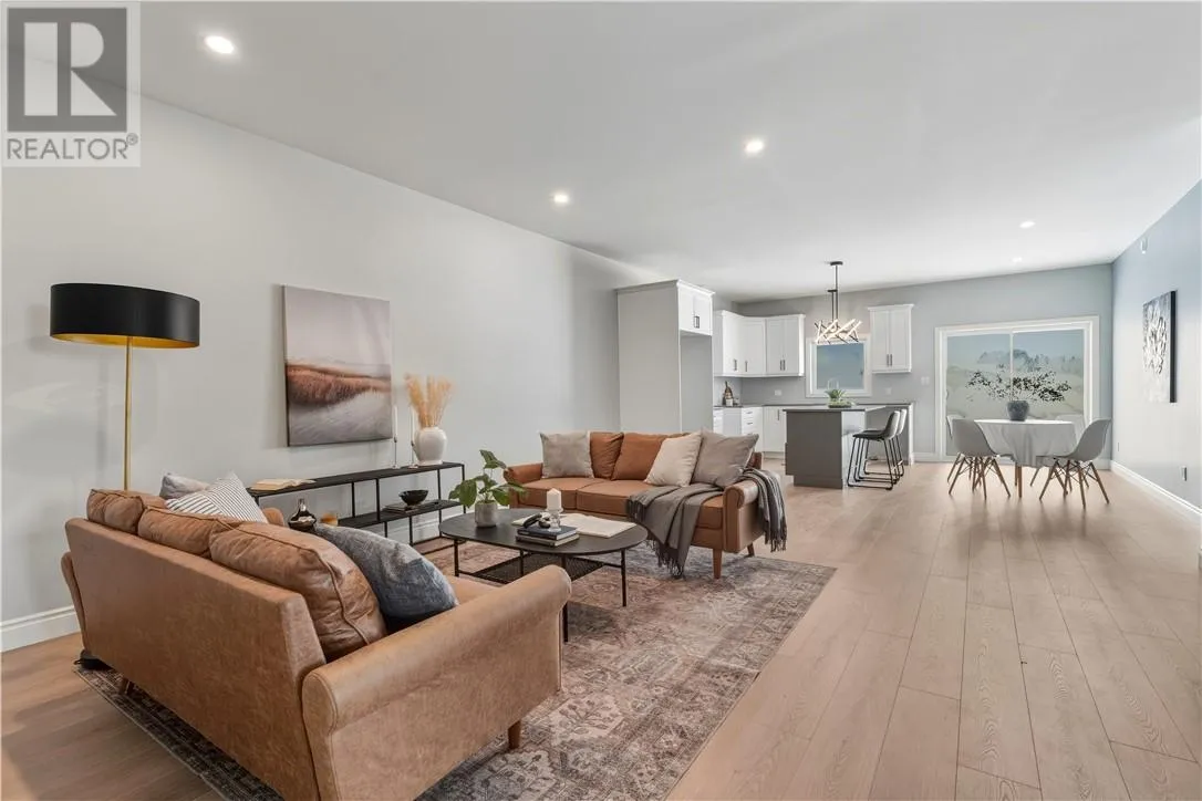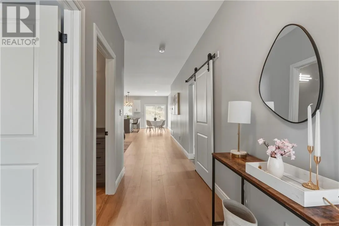 Introducing a newly constructed home by Belmar Builders in the sought-after New Dominion Park community. This beautifully crafted grade-entry residence offers more than 1,300 square feet of finished living space on the main floor, designed with an open layout, 9-foot ceilings, and a bright, contemporary feel. At the center of the home is a stylish kitchen featuring classic white shaker cabinets, quartz countertops, and durable finishes that are perfect for both daily living and hosting guests. The main level offers two generously sized bedrooms, including a spacious primary retreat with a walk-in closet and private full ensuite. Both bathrooms are upgraded with quartz surfaces, and the entire home is carpet-free, showcasing quality laminate and ceramic tile flooring throughout. Additional highlights include convenient main-floor laundry, ample storage space, and a 12â x 25â attached insulated garage. Constructed on a solid poured concrete foundation, the home is equipped with high-efficiency natural gas forced-air heating and central air conditioning for year-round comfort. It also comes backed by a 7-year Tarion New Home Warranty, providing added security and confidence. An excellent chance to own a brand-new home in a thriving, up-and-coming neighbourhood. (id:27476)